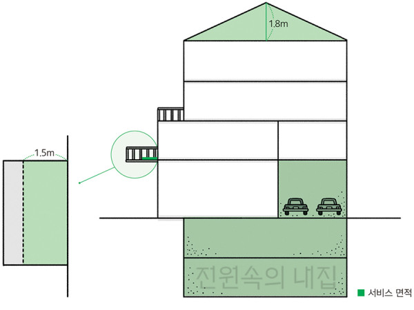 주택 건축에서 연면적은 용적률과 직결되는 중요한 사항입니다. 용적률이란 대지면적에 대한 연면적의 비율[(연면적/대지면적)×100]로, 해당 대지에 지을 수 있는 주택의 규모를 결정하게 됩니다. 같은 크기의 땅이라도 그 종류에 따라 법적 용적률이 정해져 있어 지을 수 있는 건축물의 면적이 달라지기 때문입니다. 내가 지을 집의 용적률을 알기 위해서는 먼저 연면적을 알아야 합니다. 여기서 많이들 헷갈리는 부분이 바로 ‘주택의 어느 공간까지 연면적에 포함되는가?’하는 것인데요.정리 조고은 연면적은 ‘건물 전체 층(지하와 지상의 모든 층) 바닥면적의 합계’로, 바닥면적은 건축물의 각 층 또는 그 일부로서 벽, 기둥 등으로 이루어진 구획의 중심선으로 둘러싸인 부분의 수평투영면적을 말합니다. 원칙적으로 연면적에는 지하층까지 모든 층의 바닥면적을 포함하지만, 용적률을 산정할 때 사용하는 연면적에는 지하층과 부속용도의 지상 주차장 면적을 제외합니다. 하나의 대지에 건축물이 둘 이상 있을 때는 각 건물의 연면적을 합하여 계산합니다. 이밖에도 베란다, 포치 등 바닥면적으로 규정하기에 범위가 애매한 공간이 많은데, 이럴 때 건축법에서 정하고 있는 내용은 다음과 같습니다. ☞ 벽, 기둥의 구획이 없는 건축물은 그 지붕 끝 부분으로부터 수평거리 1m를 후퇴한 선으로 둘러싸인 수평투영면적을 바닥면적으로 한다. ☞ 주택의 발코니나 이와 비슷한 공간(테라스, 외부계단 등)의 바닥은 난간 등의 설치 여부와 관계없이 ‘외벽의 중심선으로부터 해당 공간의 끝 부분까지의 면적’에서 ‘접하고 있는 가장 긴 외벽에 접한 길이에 1.5m를 곱한 값’을 뺀 면적 만큼을 바닥면적에 포함한다. ☞ 필로티(벽 면적의 2분의 1 이상이 그 층의 바닥면에서 위층 바닥 아래 면까지 공간으로 된 것) 부분은 공중의 통행이나 차량의 통행, 주차에 전용되는 경우에만 바닥면적에서 제외한다. 단독주택에서 필로티는 대부분 주차장으로 사용하는데, 주차에만 전용되는 경우가 아니면 지붕과 기둥이 있는 구획으로 보고 연면적에 포함한다. ☞ 외단열 공법으로 지은 집은 단열재가 설치된 외벽 중 ‘내측 내력벽의 중심선’을 기준으로 산정한 면적을 바닥면적으로 하여 연면적을 계산한다. ☞ 승강기탑, 계단탑, 장식탑, 다락, 내·외부의 굴뚝, 설비덕트, 더스트슈트 등과 옥상, 옥외, 지하에 설치하는 물탱크, 기름탱크, 냉각탑, 정화조, 도시가스 정압기 등을 설치하기 위한 구조물은 바닥면적에서 제외한다. ☞ 사용승인을 받은 후 15년 이상이 되어 리모델링이 필요한 건축물(건축법 시행령 제6조 제1항 제6호)을 리모델링할 때 미관 향상, 열 손실 방지 등을 위해 외벽에 마감재 등을 추가로 시공하는 부분은 바닥면적에서 제외한다. 외부 창고는 준공 후에 임의로 만들어 법적 반영이 되지 않는 경우가 많지만, 원칙적으로는 연면적에 포함되어야 하는 공간입니다. 천장이 오픈된 거실이 있는 집의 경우, 2층 바닥면적에 오픈된 공간의 면적이 포함되지 않으므로 연면적에 포함되지 않습니다. 또, 옥상은 연면적에 들어가지 않지만, 만약 필로티처럼 지붕이 있는 상황이라면 그에 따른 구체적인 산정이 필요합니다.이처럼 건축물의 형태나 현장 상황에 따라, 또는 해당 지자체의 해석에 따라 연면적에 포함되는 면적과 계산 방법은 각양각색으로 달라질 수 있습니다. 따라서 정확한 용적률 산정을 위해서는 전문가의 도움을 받는 것이 좋습니다. 참고_ 건축법 시행령 제119조(면적 등의 산정 방법)※ 월간 <전원속의 내집> www.uujj.co.kr 본 콘텐츠의 저작권은 (주)주택문화사에 있으며, 이를 무단 이용하는 경우 저작권법 등에 따라 법적책임을 질 수 있습니다.