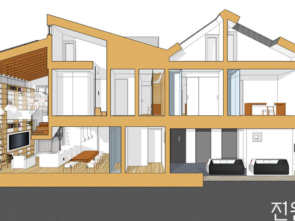 설계는 건축주의 현재 라이프스타일을 고려하고 미래를 예상해 평면과 입면, 동선에 담아내는 과정이다. 여기에는 대지조건과 법규, 건축주의 예산 등도 함께 고려되어야 하기 때문에 건축 전문가인 설계자의 역할이 중요하다. 홈플랜건축사사무소 이동진·김소연 건축가를 통해 복잡다단한 설계의 숨은 의도를 찾아본다. 구성 정사은● 건축주 A씨의 요구사항 우리 집의 키포인트는 ‘사색의 공간’입니다. 두 아이가 뛰어놀다 쉬어도 좋고, 책을 봐도 좋을 공간을 만들어주고 싶어 집짓기를 결심했습니다. 다락이 있어 아이가 공간을 수직과 수평의 다양한 시선으로 경험했으면 좋겠고, 친구들이 많이 놀러 와 즐겁게 뛰어놀 수 있는 곳이 많았으면 좋겠습니다. 어른을 위한 거실은 아파트처럼 개방되어 있어 공간이 널찍하고 풍성했으면 합니다. 또, 아파트에서는 가질 수 없는 정원이 집의 전면에 넓게 펼쳐져 있는 배치이면 어떨까요? ● 건축가의 답변 건축주의 요구사항은 건물을 디자인할 때 가장 큰 영향을 미치는 요소이지요. 아이들을 위해 2개의 다락을 만들어주려면 2층은 필연적으로 아이들이 사용할 수밖에 없게 됩니다. 1층은 응당 건축주 부부가 사용하는 평면으로 그려지겠지요. 1층에 부모세대, 2층에 자녀세대가 자리할 때 가장 큰 문제는 세대 간 단절입니다. 계단이나 복층과 같이 트이고 연결된 건축적 장치들을 적절한 위치에 적당한 규모로 넣어준다면 소통과 화합이 시시때때로 이루어지는 가정이 될 것입니다. 단순히 어린이의 놀이터 개념으로 계단과 다락을 접근하지 마시고, 공간 간의 연결이 가족의 끈끈한 유대감과 직결된다고 생각할 필요가 있답니다. HOUSE PLAN 대지위치 : 경기도 용인시 청덕동 대지면적 : 231.4㎡(70평) 건물용도 : 단독주택 건물규모 : 지상 2층 건축면적 : 67.56㎡(20.44평) 연면적 : 117.24㎡(35.46평) 건폐율 : 29.20% 용적률 : 50.67% 구조 : 일반목구조 창호재 : 독일식 시스템창호 단열재 : 그라스울 외벽마감재 : 적삼목, 스터코, 징크 내벽마감재 : 벽 - 석고보드 위 벽지, 바닥 - 지정마루 지붕재 : 리얼징크 ● 최종 디자인 이 주택은 어른을 위한 1층과 아이들을 위한 2층, 그리고 이 두 공간을 연결하는 고리로서 널찍한 계단실의 미니 서재와 작은 다락을 제안했다. 탁 트인 거실과 함께 자연스레 아이와 어른의 동선이 얽히며 소통이 이루어지는 주택이다. 01 복층으로 놀이와 수납을 동시에 해결하다 다락과 복층은 각자의 장단점을 가지고 있다. 이 집은 다락 대신에 2층 아이들 방을 복층으로 구성해 다락을 겸한 공간을 만들었다. 복층 하부는 자연스레 넉넉한 수납공간이 되었고, 아이방은 복층과 함께 트인 공간감도 확보했다. 02 복층과 간이 서재를 연속적으로 배치하다 아이방 중 하나는 복층 부분이 간이 서재와 연결되는 구조이다. 일반적인 주택과는 다른 공간감을 가질 수 있도록 계획된 공간이다. 03 건물 외부에 가벽을 만들어 빛의 깊이를 조절 복층의 가장 큰 문제는 빛을 마음대로 조절하기 힘들다는 점이다. 높아진 층고만큼 창의 개수가 늘어나기 마련이고, 그만큼 건물 내부로 들어오는 빛의 양이 많아지기 때문이다. 이 집은 복층이기에 더욱 조절하기 힘든 빛의 양을 입면의 벽체 두께에 변화를 주어 해결해보고자 했다. 벽면을 사선으로 구성해 디자인적인 재미를 줌과 동시에, 창틀 상단의 두꺼운 벽이 자연스레 처마의 역할을 해 여름철 실내로 유입되는 빛의 양을 줄일 수 있다. 이로 인한 입면의 다채로운 디자인은 덤인 셈이다. 우리나라 전통건축에서 ‘처마’는 여름철 햇볕을 가려 실내 온도가 높아지는 것을 막아주고, 겨울철에는 적절하게 유입되도록 하는 선조들의 건축적 지혜였다. 현대의 어닝도 이와 유사한 방법으로 햇볕의 유입량을 적절히 조절해주는 역할을 한다. 자료협조_ 홈플랜건축사사무소 ‘집은 다양한 건축주의 이야기를 담는 장소’라는 생각을 시작으로 건축주의 이야기에 귀기울이고, 그들이 원하는 바를 최대한 담아내기 위해 노력한다. 국민대 목조건축전문과정, 우드유니버시티 WBI코스를 수료했으며, 우리나라 실정에 맞는 목조건축을 구현하고자 한다. 031-707-5296 www.homeplan.co.kr※ 월간 <전원속의 내집> www.uujj.co.kr 본 콘텐츠의 저작권은 (주)주택문화사에 있으며, 이를 무단 이용하는 경우 저작권법 등에 따라 법적책임을 질 수 있습니다.
