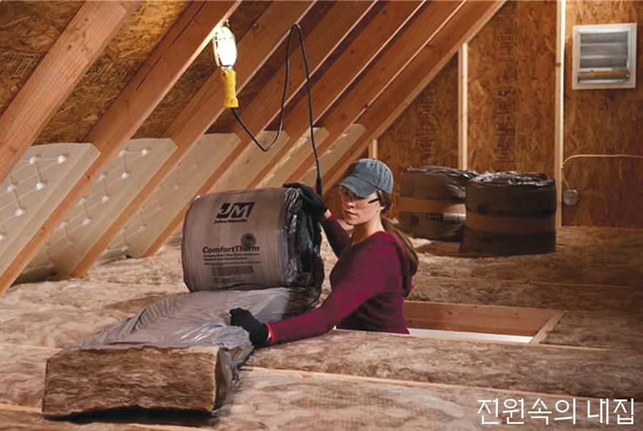 목조주택 찰떡궁합 단열재 불에 타지 않는 유리섬유(Glasswool)