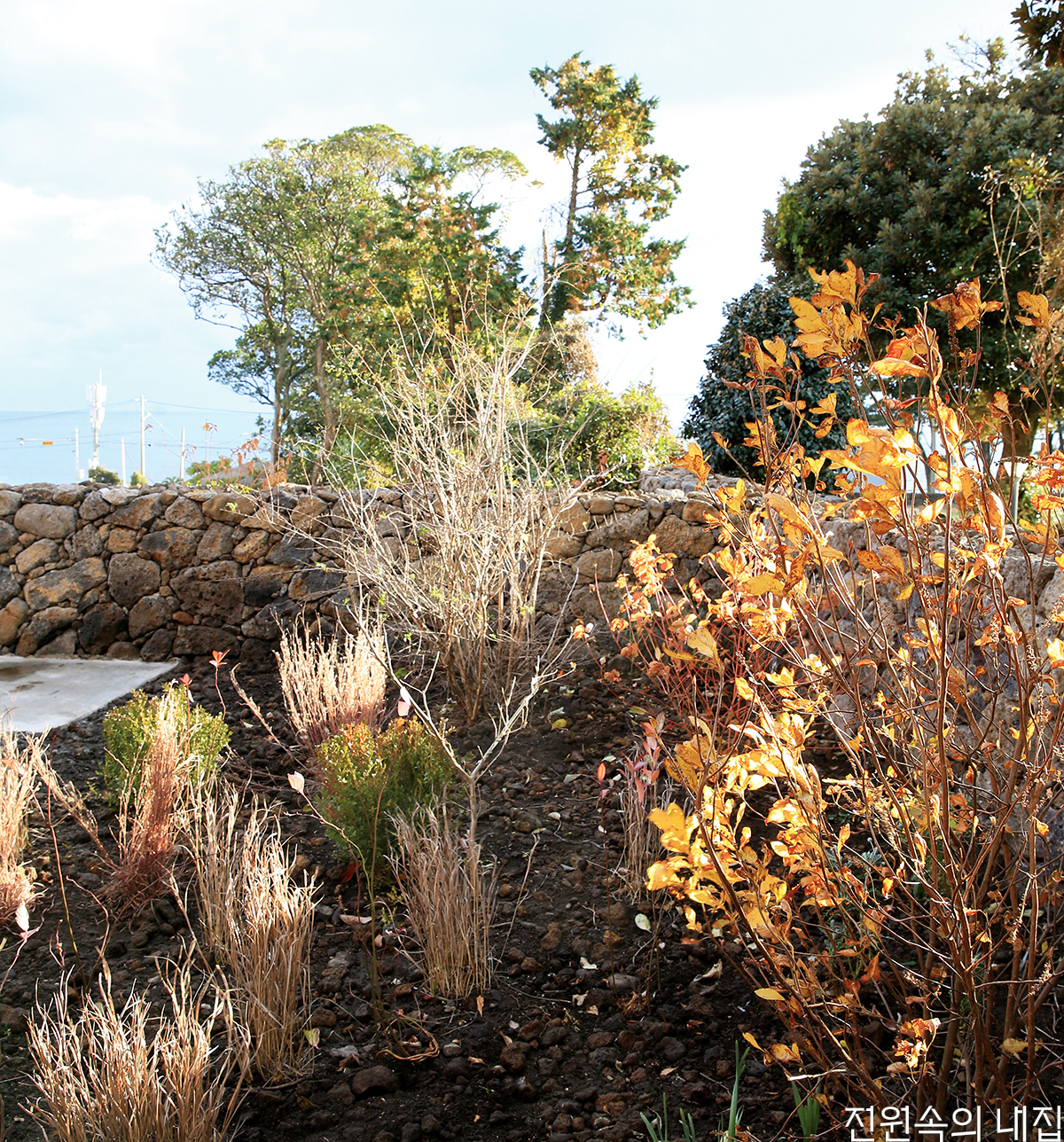 제주의 거센 바람을 견디면서 제주의 자연과 어우러지는 정원. 현지의 식생과 자연 환경을 따르면서 제주의 특성을 자연스럽게 담아낸 사계절 정원의 모습을 소개한다.