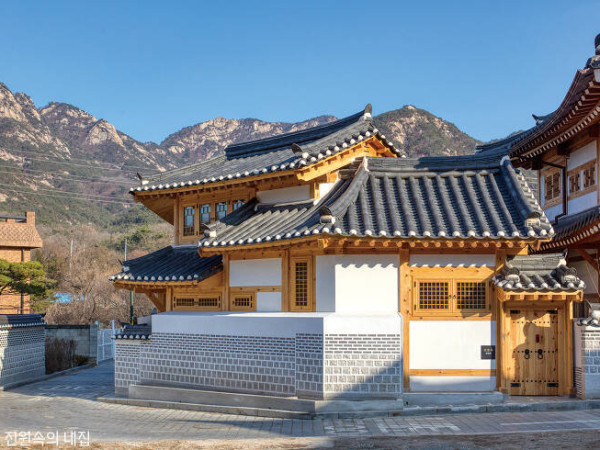 대목수가 짓고 사는 집대목수인 남편과 한옥을 사랑하는 아내. 언젠가는 ‘우리만의 한옥을 꼭 지어보자’라고 약속했던 오랜 소망이, 드디어 현실이 되어 눈앞에 펼쳐졌다.대목수의 오랜 꿈이 이뤄진 ㄷ자 집건축주 이명원 씨는 경복궁, 창덕궁 등 궁궐 한옥을 짓는 대목수이다. 그동안 많은 한옥을 건축하고, 다수의 문화재를 보수·수리하며 한옥을 곁에 두었던 그이기에 한옥에 살고 싶단 마음을 가지게 된 건 어쩌면 당연지사.늘 한옥에 관심이 있다 보니 SH공사에서 추진한 한옥마을 조성 역시 눈여겨보게 되었고, 당시 살던 아파트를 처분해 현재의 필지를 매입하였다. 그리고 오래전 했던 아내와의 약속을 지키고자 잘 알고 지내던 건축가, 건축사사무소 무이원의 박진경 소장을 찾았다.땅의 형상을 따라 한옥을 배치하게 되면서 직각구조가 아닌 135°의 둔각을 가진 한옥이 되었다. 가시설공사 후 흙을 걷어내던 중 진흙이 일부 나와 이를 다 걷어내는 어려움도 있었지만, 좋은 흙으로 교체하는 흙치환 작업을 진행해 해결하고, 약 8개월간의 공사를 마무리하였다. 창덕궁 내 정자 ‘보춘정(報春亭)’은 부부가 좋아하는 곳으로, 그래서 집 이름도 ‘보춘재’라 정했다. ©Hooxme 이상훈 POINT 1 대지 형태에 따른 135°의 한옥구조“겉보기에 대궐처럼 웅장한 한옥이 아닌 필요 요소만 담은 단정한 한옥을 원했어요. 지하가 있는 2층 한옥으로 설계해 함께 살 장모님의 공간과 부부의 생활공간을 분리하고, 때로는 온 가족이 모일 수 있는 장소를 두어 마당 있는 한옥을 온전히 누릴 수 있길 바랐죠.”대지는 가각전제로 인해 오각형의 모양을 한, 북서향의 모퉁이 땅이었다. 집을 앉히기 쉽지 않은 작은 터 위에 지구단위계획지침과 건축주의 요구사항까지 반영하기 위해선 중정형의 한옥이 유리한 상황. 설계를 맡은 박 소장은 “북촌의 도시한옥 필지와 유사한 크기인 약 48평의 면적 안에 마당을 두고자 ‘ㄷ’자 배치를 선택했다”며 “중정으로 빛을 최대한 들일 수 있도록 남측은 1층, 북서측 도로변은 2층으로 계획하게 되었다”고 설계 의도를 설명했다. 그렇게 건축가와 건축주가 머리를 맞대고 봄에 첫 삽을 뜬 공사는 두 계절을 보낸 겨울이 되어서야 마무리할 수 있었다.‘ㄷ’자 구조라 삼면 창을 통해 각기 다른 풍경이 펼쳐진다. 창 밖을 보는 소소한 휴식은 언제나 마음을 따스하게 채워준다. 1층 가족실. 한옥 분위기를 유지할 수 있도록 미닫이문을 단 수납장을 만들어 TV 등을 가려주었다. ©Hooxme 이상훈 비슷한 한옥들 사이에서도 유독 눈에 띄는 집. 작은 대문을 통해 안으로 들어가면 같은 집이 맞나 싶을 만큼, 외부와는 또 다른 분위기가 전달된다. 최근 지어진 마을 내 여느 한옥과 마찬가지로, 이 집 또한 지하 1층, 지상 2층으로 이뤄졌다. 부부가 머물 지하는 철근콘크리트구조에 습기를 막을 수 있는 이중벽으로 계획하고, 지상부는 전통 한식 목구조 중 화려하지 않고 단아한 납도리구조로 구성했다.두 층의 한옥에 둘러싸인 아늑한 마당을 중심으로, 1층에는 장모님의 방과 가족실, 간단한 식사와 다도를 할 수 있는 주방 및 식당이 배치되었다. 각 실마다 마당을 향해 창을 열어 어느 공간에서나 빛이 잘 들도록 하였고, 도로와 인접해있는 창호 하부에는 반침을 두어 부족한 수납공간을 해결했다.외부 + B1F 주거공간1층 내부에서 바라본 마당 쪽 모습. 마당과 같은 동선상에 주방 및 다이닝룸을 둠으로써, 여러 사람들과 어울리며 힐링하고자 했던 부부의 바람이 잘 반영되었다.B1F - 84.45m / 1F - 78.61m2외관 끝자락에 놓인 대문을 지나면 정갈한 마당이 보이고, 아름다운 나무 창살로 둘러싸인 모습은 외부와 또 다른 느낌을 선사한다. 지하를 쾌적한 공간으로 만들기 위하여 2개의 썬큰을 계획하였다.도로측 외벽을 담장의 역할과 병행하게 하는 화방벽으로 계획해 내부에서는 수납공간으로 사용할 수 있게 하였다. 화방벽 상부에는 전통기와를 올리지 않고 한식 미장으로 마감하여 전통 한옥과 현대의 미가 조화롭게 스민다.부부만의 독립적인 공간과 손님방으로 구성한 지하 2층. 일부 벽체는 콘크리트면을 드러내어 지상부 한옥과 차별화된 분위기를 연출했다. 썬큰 덕분에 각 실에서 자연환기가 가능하고, 빛이 들어 밝은 공간이 되었다.HOUSE PLAN대지위치▶ 서울시 은평구|대지면적▶ 160.1㎡(48.43평)건물규모▶ 지하 1층, 지상 2층거주인원▶ 3명(부부 + 장모님)건축면적▶ 72.03m2(21.78평)|연면적▶ 196.72㎡(59.50평)건폐율▶ 45%|용적률▶ 70.1%주차대수▶ 2대(마을주차장 사용)|최고높이▶ 7.31m구조▶ 기초 – 철근콘크리트 매트기초 / 지하 – 철근콘크리트, 지상 – 한식목구조단열재▶ 지하 – 수성연질폼 140 mm 발포 / 지상 – 수성연질폼 90mm 발포외부마감재▶ 벽, 담장재 – 스터코플렉스, 장대석 + 사고석 + 전돌 + 스터코플렉스 / 지붕 – 한식토기와창호재▶ 지하 – LG하우시스 70mm PVC / 지상 – 한식 제작 창호, 첨단한옥창호에너지원▶ 도시가스|조경석▶ 화산석전기·기계·설비▶ 광명토탈엔지니어링|구조설계(내진)▶ 본구조설계사무소내부마감재▶ 벽 – 종이벽지 / 바닥 – 구정강마루욕실 및 주방 타일