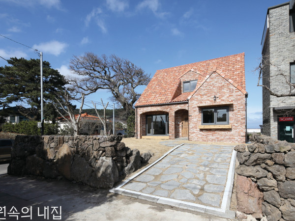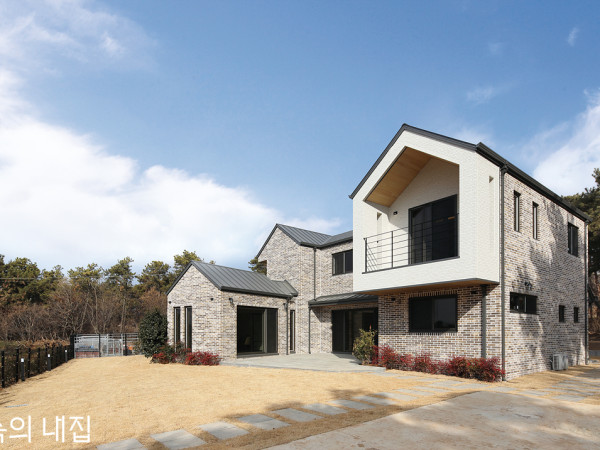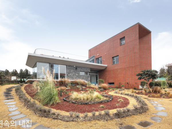 제주 귤밭 속에 지어진 갤러리 같은 집. 서로 다른 색의 벽돌이 오묘하게 섞여 풍경 속에 물들어 간다.정년퇴직한 부모님의 제주살이가 결정되자 둘째 딸네 부부가 동행하기로 했다. 예전부터 제주에 대한 로망을 품어 온 데다, 육지에서 하던 직업 활동을 제주에서도 이어갈 수도 있었기에 마다할 이유가 없었다. 그렇게 부모님과 부부, 두 아들 총 6명, 3代를 위한 집짓기에 돌입했다.①현관 ②주방 및 식당 ③거실 ④다용도실 ⑤화장실 ⑥게스트룸 ⑦침실 ⑧드레스룸 ⑨데크 ⑩취미실 ⑪놀이방 직영으로 시공하리라 마음먹었기에 가족은 설계가 무엇보다 중요하다는 데 동의했다. 제주 출신이고, 제주에서 다양한 프로젝트를 진행하는 이엔건축사사무소 김현숙 소장을 만나면서 꼼꼼한 설계를 완성해 나갔다. 김 소장은 “건축주는 따뜻하고 모던한 집을 원했다”며 “벽돌과 목재 등 익숙한 재료에서 오는 따뜻한 느낌과 군더더기 없이 모던한 디자인으로 방향을 잡았죠”라고 설명했다. 편리함과 아름다움 사이, 기능과 형태 사이, 쓰임과 연출 사이 등을 고민하며 함께 대화를 많이 나눈 끝에 집짓기는 무사히 마무리 되었다.거센 북풍에 대비하면서도 갤러리 같은 주택을 원한 건축주 취향에 부합한 입면. 랜덤하게 배치한 벽돌 타일이 드라마틱하다. 호기심을 자아내는 출입구와 달리 안쪽으로 들어서면 정원과 귤밭을 향해 두 팔을 벌린 모양새다.HOUSE PLAN대지위치▶ 제주특별자치도 서귀포시대지면적▶ 900㎡(272.25평) |건물규모▶ 지상 2층거주인원▶ 6명(부모님 + 부부 + 자녀 2)건축면적▶ 122.24㎡(36.97평) |연면적▶ 219.54㎡(66.41평)건폐율▶ 13.58% |용적률▶ 24.39%주차대수▶ 2대 |최고높이▶ 9m구조▶ 기초 - 철근콘크리트매트기초 / 지상 - 철근콘크리트단열재▶ THK100 비드법보온판2종2호, THK60 열반사단열재외부마감재▶ 외벽 - 제일벽돌 벽돌타일 / 지붕 - 알루미늄 징크담장재▶ 현무암 |창호재▶ 이건창호조경석▶ 현무암판석 |전기·기계·설비▶ ㈜한일구조설계▶ 중앙구조기술사사무소설계▶ ㈜이엔건축사사무소 02-703-1838 www.endesign.co.kr시공▶ 건축주 직영현관에서 바로 2층으로 올라갈 수 있도록 양방향으로 계획한 계단. 걸터앉아 신발을 신기에도 용이하다.내부에서 바라본 현관 진입 공간의 모습. 남쪽 마당과 귤밭을 품은 2층 규모의 주택은 꺾임이 군데군데 있어 진입로에서 보면 궁금증을 자아낸다. 마침 바람의 영향을 최소화하기 위해 현관문을 제외하고 진입면의 개구부를 절제한 것 역시 일반적인 전원주택의 이미지와는 차별화되길 바란 건축주의 요청에 부합했다. 큰 덩어리에서 살짝 덜어낸 듯 슬릿하게 각이 진 진입부는 마치 빨려 들어갈 것만 같은 느낌이다.크게 보면 ‘ㄱ’자 배치지만 단순하지만은 않은 형태가 하나의 덩어리처럼 보이는 건 온전히 재료 덕분이다. 투톤의 회색 벽돌 타일이 매지 없이 외벽에 부착되어 자연스러운 문양을 드러내는데, 마치 하나의 점에서 시작된 은은한 그러데이션 같다. 김 소장의 표현을 빌리면 “타공이 있는 현무암처럼 느껴져 제주의 자연 속에 하나의 풍경”으로도 보인다.밝고 환한 공간을 원한 부모님을 위하여 층고와 창호에 각별히 신경 썼다. 실내의 몰딩, 걸레받이 등 이음새와 설비 라인에 대한 복잡한 선도 최소화했다.내부는 공용공간과 부모님 공간을 둔 1층과, 부부와 아이들 방으로 채운 2층으로 나누어진다. 밝고 시원시원한 공간을 원한 부모님을 위하여 남측 귤밭을 향해 활짝 열린 주방 겸 거실과 입면을 계획하고, 바닥에는 타일을 적용했다. 반면, 부부는 아늑한 것을 좋아해 복도 중심으로 각 실이 퍼지도록 2층을 구획하고, 바닥에는 따뜻하면서도 진한 색의 원목마루를 깔았다. 대신, 함께 모이는 공용공간은 군더더기 없이 꾸며 현관까지 환하게 빛이 들어온다.통합형 거실 및 주방은 군더더기 없는 블랙 앤 화이트 인테리어로 마감했다. 대지 안쪽으로 길게 진입로를 내고 양쪽으로 낮게 돌담을 쌓았다. 제주에 와서 금세 친구들을 사귄 형제의 안전한 놀이터가 되어주기도 한다. 각 침실은 요즘 스타일에 맞게 잠만 자는 용도로 면적을 할애했다. 드레스룸, 게스트룸, 취미실 등을 다 밖으로 빼내어 한꺼번에 몰아두는 것보다 쓰임새는 더 높아졌다. 건물 외부에서 시작된 사선의 외곽라인은 실내까지 이어졌지만, 아이들 놀이방이나 계단실 등을 조닝해 불편함을 덜었다.INTERIOR SOURCE내부마감재▶ 벽 - 던에드워드 친환경 도장(거실 및 복도), LG하우시스 실크벽지(침실) / 바닥 - 윤현상재 수입타일, 구정마루 강마루욕실 및 주방 타일▶ 윤현상재 수입타일수전 등 욕실기기▶ 아메리칸스탠다드 샤워기, 대림바스, 이케아주방 가구 및 붙박이장▶ 영림임업계단재▶ 멀바우 |현관문▶ 살라만더 현관문방문▶ 현장 제작 |중문 및 방문▶ 영림도어붙박이장▶ 자작나무 합판 현장 제작데크재▶ 19mm 방부목 오일스테인각 침실은 드레스룸과 별도로 분리해 단정하게 꾸몄다. 계단참에 설치한 창에는 동쪽으로 펼쳐진 이웃의 과수원이 마지 액자 속 그림처럼 담긴다. ①현관 ②주방 및 식당 ③거실 ④다용도실 ⑤화장실 ⑥게스트룸 ⑦침실 ⑧