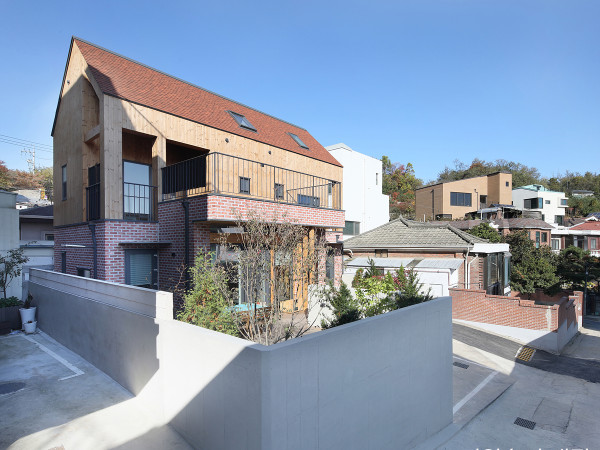 40년 가까이 살아온 주택을 마음에 묻고 새로 지은 집. 면적은 조금 줄었지만, 공간과 삶은 더 풍부해졌다.1 - 콘크리트 담장, 벽돌 1층, 목재 2층 마감이 마치 무지개떡을 연상케하는 외관현관을 지나 2층 올라가는 계단실 앞에서 바라 본 다이닝룸과 거실BEFORE - 신축 전 기존 주택. 살면서 조금씩 손보고, 워낙에 관리를 깨끗이 해서 외관만 보고 잠깐 머무는 이웃들은 왜 집을 허물고 새로 짓냐 묻기도. 남쪽에 이미 높은 다세대건물이 들어서 있어 원래 배치를 살려 동향으로 계획되었다.파견 근무 차 오랜 기간 유럽에 머물렀던 박종하, 양윤정 씨 부부. 귀국 후 거주할 공간을 다시 마련해야 할 상황이 찾아왔다. 계속 한국에 정착한다면 아파트에 사는 것도 좋지만, 이후 또 주재 발령이 나면 집을 처분하는 것이 골치일 터. 그때 떠오른 것이 지금은 부모님만 살고 계신, 윤정 씨가 100일 때부터 결혼 전까지 살던 단독주택이었다. 다락과 반지하가 딸린, 70년대 후반에 지어진 전형적인 불란서 주택. 1층 부모님 공간, 증축할 2층에 부부 공간으로 분리된 그림을 머릿속으로 그려보았다. 외할머니를 모시고 살았던 어머니는 처음엔 자식 내외가 불편할까 주저했지만, 사위가 먼저 해외로 나가면 혼자 있게 될 딸 생각에 마음을 고쳤다. 그렇게 증축을 통해 한 집 두 가구의 독립적인 동거가 시작되는 줄 알았다.PLAN①주차장 ②대문 ③현관 ④침실 ⑤거실 ⑥주방 ⑦다용도실 ⑧화장실 ⑨테라스 ⑩서재 ⑪취미실 ⑫데크HOUSE PLAN대지위치 ▶ 서울시 서대문구 대지면적 ▶ 169.0㎡(51.12평) |건물규모 ▶ 지상 3층 |거주인원 ▶ 4명(부모님 + 부부)건축면적 ▶ 67.52㎡(20.42평) |연면적 ▶ 130.77㎡(39.55평) 건폐율 ▶ 39.95% |용적률 ▶ 77.38% 주차대수 ▶ 1대 |최고높이 ▶ 9.71m 구조 ▶ 경량목구조 + 중목구조 단열재 ▶ 외벽 - 수성연질폼, 그라스울(R23) / 지붕 – 수성연질폼 / 기초 하부 – 압출법단열재 외부마감재 ▶ 벽 - THK21 루나우드 탄화목(삼익산업) + 벽돌타일(노벨스톤) / 지붕 – 아스팔트싱글(오웬스코닝) 창호재 ▶ INOUTIC PVC 시스템창호 + THK43 로이삼중유리, SWING PVC 미국식창호 + THK35 로이삼중유리, VELUX창 THK24 복층유리 전기·기계 설계 ▶ 거산ENG 김기표 |설비 ▶ 유영설비기술연구소 김성률 구조설계 ▶ 두항구조안전기술사사무소 설계담당 ▶ 이주화, 김현종 설계 및 감리 ▶ ㈜에이디모베 건축사사무소 이재혁 02-511-5854 https://admobe.myportfolio.com 시공 ▶ TCM global 김평기, 이우열 https://tcmglobal.co.kr 총공사비 ▶ 3억1천만원(설계비 제외)양쪽으로 넉넉하게 수납공간을 채운 현관. 문 가까이에 미니 벤치를 두었다.데크와 연결된 정원, 부모님 침실과 연결된 소정원 등 외부 공간이 분리되어 있어 오히려 쓰임새는 다양해졌다.문제는 리모델링을 계획하던 중 부동산 관련 규제가 강화되면서 대출을 받을 수 있는 한도가 대폭 줄어든 것. 은행에 상담해 본 결과 차라리 신축이 대출에 용이하다는 대답이 돌아왔다. 늘 매만지고 닦아서 집이 깨끗하기는 해도 워낙에 오래된 터라 겨울이면 어김없이 찾아오는 외풍과 결로가 안 그래도 마음에 걸렸던 윤정 씨. 정해진 틀에서 바꾸는 것보다 새로 그리면 공간의 만족도도 높을 거라는 전문가들의 조언을 듣고 고민하길 수개월. 남편, 부모님과의 충분한 상의 끝에 신축하기로 결정했다.기둥과 보에는 구조용집성재, 소파 뒤 벽면에는 편백나무, 창 가까이 천장에는 탄화목인 루나우드 등 거실에는 총 세 종류의 목재가 적용되었다.커 보이는 외관과 달리 실제 주택의 건축면적은 20평 남짓이다. 기존 주택보다 8평 정도 줄었다.수납 중심으로 편성한 주방. 왼쪽 다용도실을 통해 바깥으로 이어진다.SECTION①주차장 ②대문 ③현관 ④침실 ⑤거실 ⑥주방 ⑦다용도실 ⑧화장실 ⑨테라스 ⑩서재 ⑪취미실 ⑫데크INTERIOR SOURCE내부마감재 ▶ 벽·천장 – 벽지, 루나우드(삼익산업), 히노끼 리브(케이디우드테크) / 바닥 – THK8 구정마루 욕실 및 주방 타일 ▶ 세라믹타일, 무광 자기질타일, 윤현상재 수전 등 욕실기기 ▶ 아메리칸스탠다드, 대림바스, 이케아 주방 가구 ▶ 우림 앤 뮤즈 조명 ▶ 대광조명 |계단재·난간 ▶ 고무나무현관문 ▶ 성우 스타게이트 |중문·방문 ▶ 영림도어 붙박이장 ▶ 제작 가구(S.P.F 구조목(J-grade) 데크재 ▶ 루나우드, Duradec Ultra Supreme Chip Granite2층 테라스에 서면 인근의 궁동공원부터 멀리 안산까지, 날이 좋으면 북한산도 보인다.기존에 가지고 있던 가구도 다 원목 가구일 정도로 처음부터 목조에 대한 애정을 보였던 네 사람. 따뜻한 정서는 물론이거니와 도심 공사라 기간 단축도 무시 못 할 요소였다. 윤정 씨는 집짓기는 예기치 못하는 상황이 발생할 수 있다는 말을 들어온 터라, 도심에서 목조주택을 지어본 경험이 있고 두 사람이 한국에 없어도 건축주에게 의존하지 않고 판단과 대처를 능숙하게 할 설계자를 찾았다. 크게는 세대별 층 분리, 다락과 데크 등 공간에 관한 것과 단열과 목구조 노출 등 기술에 대한 요청 사항이 있었다. 세세한 나머지는 전문가에게 맡겼다. 공사는 경량목구조와 중목구조의 하이브리드 공법으로 4월 말에서 8월 말까지 진행되었는데, 목조주택으로
