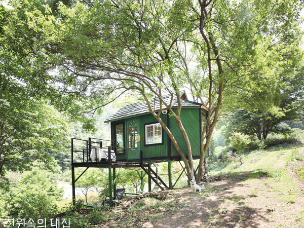 여름이 되면서 트리하우스에서 지내는 시간이 많아졌다. 입구 전등에 작은 새가 집을 지어 네 마리의 새끼가 자라고 있다. 조금 지나면 그들은 둥지를 떠날 것이다. 가슴 떨리는 미지의 세계로. 지금의 나처럼.무려 15년 전의 일이다. 업무 차 전국의 산야를 다녔지만, 사는 곳 지척에 이런 첩첩산중이 있는 줄 몰랐다. 대전에서 차로 30분 거리. 충남 옥천의 굽이진 산세 속에서 우연히 덩굴로 뒤덮인 늪지대를 만났다. 전기도 수도도 들어오지 않는 오지였지만, 김득영 씨는 여생을 보낼 곳으로 이곳을 점찍었다.그는 아내를 데리고 주말이면 어김없이 ‘밭머리 캠핑장’을 찾았다. 산에서 보면 밭의 시작점에 있다고 그가 직접 붙인 이름이다. 군용 텐트를 치고 코펠 밥을 지어 먹으며, 넓은 땅 이곳저곳에 원두막도 짓고 창고도 세웠다. 그 사이 경운기, 트렉터, 미니 굴착기까지 그의 손을 거쳐간 장비도 수두룩하다. 개간한 땅에는 300여종이 넘는 나무를 심고 연못도 만들었다. 농사도 짓지 못할 정도로 20년간 농사도 짓지 못했던 묵은 땅이 그의 땀방울을 영양분 삼아 서서히 변해갔다.어느덧 제대로 된 집을 지을 때가 왔다. 10년 동안의 천막생활로 욕심을 부릴 만도 했건만, 선택은 단호했다. 단층의 소박한 농가. 자는 시간 빼고 대부분을 자연에서 보내는 부부에게 큰 집은 오히려 짐이었다. 전기와 수도, 이제는 인터넷까지 갖춘 땅에 안정된 집을 짓고 나니 그제야 득영 씨는 숨겨둔 카드를 꺼냈다.바로 오래된 로망, 트리하우스였다.신나무 수형에 맞춰 집의 모양을 다듬었다. 남은 자재로 짓다 보니 한쪽 지붕은 너와, 반대쪽은 싱글을 덮었다. 필로티 하부는 온종일 그늘을 선사하는 또 하나의 휴식 공간이다.사계절 꽃이 피고 지는 700평 정원에 둘러싸인 트리하우스는 15년 동안 가꾼 농장을 감상하는 전망대와 같다. 창을 최대한 많이 내어 원두막 같은 집을 짓고자 했다. 따로 단열공사는 하지 않았다. (왼쪽부터) 4륜구동만 들어올 수 있었던 15년 전 땅의 모습. 부부는 이곳에 군용 막사를 치고 주말마다 자발적 노동캠핑을 했다. / 굴착기는 소형일수록 전복될 수 있어 조심해야 한다. 거의 전문가 수준이라 자부하던 득영 씨도 두 번이나 넘어졌다고. / 미국에서는 나무에 볼트를 박아 지지하는 TAB(Tree Attachment Bolt) 공법이 유행이다. 볼트를 나무가 딱 물고 있어 생태에 큰 지장은 없지만, 나무가 자라면 집도 올라갈 우려가 있다. 득영 씨는 필로티 형식의 철골조 플랫폼 방식을 택했다.우리나라 사람들은 트리하우스에 대해 호불호가 크다. 나무에 해를 입힌다고 생각하는 이도 많다. 득영 씨 역시 우리나라에는 트리하우스를 지을 만한 큰 나무가 없고, 관련된 기술도 전무한 실정이라 여겨 스스로 방법을 고안해냈다. 바로 독립적인 플랫폼을 세워 집을 올리는 것. 철골조 용접과 전기만 기술자를 부르고, 나머지 작업은 아내와 둘이 했다. 장장 1년이 걸렸다.나무에 직접 부담을 주지 않고, 나무에 기대어 공생하는 방식으로 지은 트리하우스. 좋아하는 것들로 가득 채운 나만의 세상이다.직접 수확해 말린 곶감. 시골 농장으로 얻는 수익은 없다. 자급자족하고 지인들과 나눠 먹는 삶이다. 오히려 퇴비 값 등 돈이 들면 몰라도.필요한 것이 있으면 주변에 있는 자재로 뚝딱 만들어보는 걸 즐긴다. 모자와 열쇠는 나뭇가지에 툭 걸어두면 그만이다.트리하우스는 지형 여건, 날씨, 나무가 자라는 속도까지 짓기 전 고려할 사항이 많다. 같은 꿈을 가진 동지가 있다면, 발 벗고 조언하고 싶다. 열심히 산 당신, 자신만의 공간을 가질 충분한 자격이 있다. TIP - 김득영 씨가 알려주는트리하우스에 대한 궁금증 셋어떤 나무를 택할까?천근성인 아카시아나 낙엽송 등은 뿌리가 땅 속에 깊이 박히지 않아 태풍이나 폭우에 잘 쓰러질 수 있다. 소나무 같은 침엽수도 폭설에 가지가 부러지거나 쓰러질 수 있어 역시 피해야 할 수종이다. 밤나무나 감나무는 밤송이나 홍시가 떨어져 집을 엉망으로 만든다. 수액이나 꽃가루가 심한 나무, 특이한 냄새가 나는 나무도 유의해야 한다.관상수나 가로수로 선호되는 느티나무나 팽나무 등은 수형이 예쁘고 빨리 자랄 뿐 아니라, 나무 그늘이 좋다. 벚나무나 이팝나무 등은 봄철 흐드러진 꽃이 특별한 기분을 선사할 것이다. 단, 속성수는 나무의 성장 속도를 잘 예측해 트리하우스를 설치해야 한다.트리하우스는 건축법상 어떻게 분류되나?트리하우스는 건축법상 어떤 기준이 없다. 6평 미만이다 보니 농막이나 창고 등 가설건축물로 신고하는 경우가 많다. 지자체마다 다르겠지만, 우리 지역은 6평 미만 농막은 신고도 필요 없게 되어 있다. 다만, 자체적인 구조 설계는 꼼꼼하게 해야 한다.땅은 있는데, 마땅한 나무가 없다면?집을 세울 지지대를 먼저 만들고 어느 정도 굵은 느티나무 두 그루(20만~30만원 선)를 양쪽에 심는다. 두세 해 지나면서 나무가 크면 멋진 트리하우스로 변모할 것이다. 첫해는 나무가 몸살을 하더라도 3년이 되면 제법 풍성하게 잎으로 덮을 수 있을 것이다.남서향으로 앉힌 본채는 오후 볕이 한가득 들어올 텐데, 10년 전 심어둔 느티나무 덕을 톡톡히 본다. 나무가 너무 