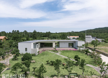 너른 데크와 플랫한 지붕, 독특한 실 구성을 가진 단층집은 제주 풍광에 다소곳이 안긴다. 남다른 형태와 동선이 생활마저 새롭게 이끄는 곳이다.낮은 돌담의 진입로와 너른 잔디 마당 뒤로 세 채의 개별동이 섰다. 각 채들은 고유한 기능을 담고 하나의 지붕으로 이어져 있다.제주도 동쪽, 선흘리 마을은 자연에 푹 파묻힌 중산간 지역이다. 오름 중 유일하게 유네스코 세계자연유산에 등재된 거문오름을 아래 두고 작은 오름들이 주위에 둘러 있다. 은퇴 후 플랜이 확고했던 건축주는 새로운 삶의 터전으로 오래전 이곳을 점찍었다. 5,000㎡가 넘는 전(田)을 구입해 1년여에 걸친 성토 끝에 완만한 땅을 만들었다. 대단위 토목 공사과 여러 인허가들로 지칠 만도 했지만, 그럴수록 건축에 대한 열의는 더욱 강해졌다.직접 가꾼 식재료로 매 끼니를 만들고, 이웃이나 집을 찾는 손님에게 정성된 식사를 대접하는 일상. 그가 새로 짓는 집에서 보내고자 하는, 소소하지만 중요한 삶이었다. 그래서 애초에 원한 공간은 ‘최소의 거주’였고, 집의 모든 중심은 주방과 식당에 두고자 했다. 1층 전체는 주방으로 채우고 위로는 작은 침실이 있는 2층집을 꿈꿨으나, 건축가의 생각은 달랐다.가운데 동은 주방과 다이닝룸이, 좌우로는 주거공간이 이어진 제주쉴로의 외관HOUSE PLAN대지위치 ▶ 제주특별자치도 제주시 조천읍 선교로 159-22대지면적 ▶ 1,650㎡(500평) | 건물규모 ▶ 지상 1층건축면적 ▶ 211.1㎡(63.96평) | 연면적 ▶ 196.37㎡(59.5평)건폐율 ▶ 12.79% | 용적률 ▶ 11.90%주차대수 ▶ 2대 | 최고높이 ▶ 3.6m구조 ▶ 기초 - 철근콘크리트 매트기초 / 지상 – 중목구조단열재 ▶ 기초 바닥 - 비드법단열재 2종1호 100mm / 벽체 – 그라스울(존스맨빌) R11·R19·R30, 비드법단열재 2종1호 70mm / 난방 바닥 - EPS보드 60mm외부마감재 ▶ 테라코코리아 플렉시텍스(그래뉼) S/FLEX307, S/FLEX360지붕재 ▶ 니치하갈바륨(일본단열강판) | 담장재 ▶ 자연석 현무암 겹담쌓기창호재 ▶ 일본 YKKAP APW-430(더블로이유리 41mm, 에너지효율 1등급)철물하드웨어 ▶ 일본 중목구조 LVL목재 / TEC-1, P3철물공법에너지원 ▶ LPG조경 ▶ 제주 하와이 조경전기·기계, 설비 ▶ ㈜우보이엔지 | 구조설계(내진) ▶ ㈜단구조설계 및 감리 ▶ ㈜에이알에이건축사사무소 02-711-0210 www.ar-a.krINTERIOR SOURCE내부마감재 ▶ 벽 - 테라코 스터코 빈티지 / 천장 - 삼화페인트 백색 / 바닥 – 한솔 강마루 헤링본욕실 및 주방 타일 ▶ 국산, 이태리산(제주 한라타일)수전 등 욕실기기 ▶ 대림바스주방 가구 및 붙박이장 ▶ 멀바우 집성목 현장 제작조명 ▶ 건축주 직구현관문 ▶ 일본 YKK AP 베네토중문 ▶ 재현하늘창 알루미늄 3연동 | 방문 ▶ 재현하늘창 ABS 도어각 동을 이어주는 지붕은 한여름 햇빛을 가리고 비가 오는 날에도 야외를 한껏 쓸 수 있게 해 주는 고마운 처마를 만들어 낸다.유려한 곡선의 지붕선PLAN①현관 ②주방 ③거실 ④욕실 ⑤테라스 ⑥침실 ⑦세탁실 ⑧공용식당 ⑨보조주방 ⑩구들방 ⑪작업실 ⑫드레스룸 ⑬파우더룸㈜에이알에이건축사사무소 측은 굳이 2층집으로 지어 마을에서 돋보이기 보다 단층의 낮은 집이 제주 구릉지에 잘 어울린다고 여겼다. 진심 어린 설득에 건축주는 마음을 바꿨고, 자연에 순응하는 집의 초안이 그려졌다.건축가는 최소한의 기능적인 실을 먼저 나누고 이를 동선, 기능, 채광과 환기, 프라이버시 유무 등 여러 요소에 맞추어 조닝을 반복했다. 건축주가 원한 바 대로, 주방과 식당을 메인에 두고 나머지 실들을 기능에 맞춰 흩트리다 보니 세 개의 개별동이 생겼다. 가운데 주방+다이닝 공간을, 동쪽에 작업실이 딸린 본채와 남쪽에 게스트만을 위한 별채를 세우니, 마치 세 개의 섬이 하나의 지붕 아래 이어진 듯하다. 한옥의 지붕선과 제주의 전통주택에서 영감을 얻었다는 처마, 그리고 각 동을 잇는 넉넉한 데크 역시 제주의 변덕스런 날씨에도 야외 생활을 가능케 하는 공신이 되었다.DIAGRAM본채의 취미실 겸 침실. 창문을 통해 보이는 전경을 프레임에 담고자 했다.모든 가구는 공간에 맞춰 현장에서 제작되었다. 좌식 소파 역시 건축주의 아이디어다.게스트룸의 공용 공간 모습. 전면창을 통해 정원 풍경이 한눈에 들어온다.지역 특수성 때문에 애초 철근콘크리트로 설계된 집은 중목구조로 변경되었다. 혹시 모를 하자에 대비해 평지붕은 약간의 경사를 두고 방수 및 부자재 연결에 많은 공을 들였다. 시공 당시 지붕의 각 지점 경사도를 3% 이상으로 모델링하고, 부재의 완벽한 치수를 뽑아내는 등 건축가의 부단한 수고가 더해졌다. 각 동의 출입구는 사용성을 확장시키는 동선으로 배치하고, 각각의 독립성을 보장하는 데 주력했다.다이닝동 내부는 메인 주방과 식당, 보조주방으로 구성하고 키 큰 책장 앞으로 좌식 평상을 만들었다. 방문객은 자연스럽게 입식과 좌식을 넘나들며 열린 공간을 공유한다. 본채와 별채에는 주변 풍광을 창에 어떻게 담아내느냐에 주력하고, 가구들은 대부분 주문 제작해 소재와 톤을 맞췄다.건축주는 얼마 전부터 제주 여행객과 집을 공유하고 있다. 돌담을 쌓고 꽃을 가꾸고, 방문객들을 위해 아침상을 차리는, 그가 정말 원했던