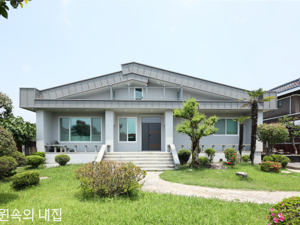 건축주가 원했던 세 가지는 친환경, 모던 스타일, 내진. 여기에 여유까지 얹어 완성한 ‘스틸하우스’라는 답.동측에서 서측으로 떨어지는 경사가 경쾌한 인상을 주는 주택의 매스“사실 이번 집이 두 번째 도전입니다.”정원에서 일을 마치고 돌아온 건축주 이재민, 조선자 씨 부부는 집 소개를 첫 집 이야기로 시작했다.부부의 오랜 꿈이기도 했던 전원생활. ‘더 늦기 전에 시작하라’는 선배들의 조언으로 용기를 얻어 지금 집에서 멀지 않은 거리에 황토벽돌로 첫 집을 지었다. 하지만, 집짓기는 호락호락하지 않았다. 기존 업체의 주먹구구식 진행에 답답했고, 애써 낸 결과물도 만족스럽지 못했다. 부부는 꿈을 포기하기 아쉬워, 결국 두 번째 집에 도전했다.실내는 그레이와 화이트 톤으로 마감해 바깥 풍경의 푸름을 더욱 살려준다. HOUSE PLAN대지위치 ▶ 경상북도 영천시 대지면적 ▶ 926㎡(280평) │ 건물규모 ▶ 지상 2층(본동), 지상 1층(부속동) 건축면적 ▶ 155.19㎡(42.02평) │ 연면적 ▶ 175.45㎡(53.16평) 건폐율 ▶ 16.67% │ 용적률 ▶ 18.95% 최고높이 ▶ 7.57m 구조 ▶ 기초 - 철근콘크리트 매트기초 / 지상 – 벽체 : 스틸하우스 공법 140SL10 냉간성형 아연도금강판 스틸스터드, 지붕 : 90TC10 스틸스터드 단열재 ▶ 벽체 - 준불연 EPS 100mm(외단열), 그라스울 R19(중단열) / 지붕 - 그라스울 R30 + 50mm 네오폴 외부마감재 ▶ 스터코, 포스맥, 청고벽돌, 천연방부목 창호재 ▶ 엔썸 T/S, T/T 47mm 3중유리 시스템창호(에너지효율 1등급) 에너지원 ▶ 기름보일러 │ 조경 ▶ 아리랑조경 성동표 010-4282-3394 전기·기계·설비 ▶ ㈜그린홈예진 구조 설계 ▶ 프레임캐드 안덕근 010-8564-2685 설계 ▶ 지핸즈 건축사사무소 김종균 010-3510-9053 시공 ▶ ㈜그린홈예진 055-758-4956 www.yejinhouse.comINTERIOR SOURCE내부마감재 ▶ 벽 - LG하우시스 실크벽지 / 바닥 - 동화자연마루 나투스진 욕실 및 주방 타일 ▶ 호림 타일 │ 수전 등 욕실기기 ▶ 아메리칸스탠다드 주방 가구·붙박이장 ▶ 주문 제작 │ 조명 ▶ LED 계단재·난간 ▶ 멀바우 + 평철 난간 │ 현관문 ▶ 코렐 시스템도어 중문 ▶ 영림 3연동 도어 │ 방문 ▶ 영림 ABS 도어 데크재 ▶ 30mm 고흥석 버너구이 SECTION①현관 ②거실 ③식당 ④주방 ⑤안방 ⑥방 ⑦욕실 ⑧다용도실 ⑨보일러실 ⑩드레스룸 ⑪홀PLAN2F - 21.15㎡ (본동)1F - 112.20㎡ (본동) + 42.10㎡ (부속동)전면의 깔끔한 선과는 달리 다채로운 지붕 모습을 보여주는 후면은 산세와 그 모습이 닮았다.한편, 실수를 반복할 수 없어 집에 관해 다시금 공부하던 중 발생한 경주·포항 지진은 이런 고민 속에서 방향을 정하는 포인트가 됐다. 입지도 입지지만, 안전을 위해서 ‘시스템을 갖춘 시공사’를 통해 ‘합리적인 디자인과 공법’으로 짓자는 것. 선배 건축주들의 사후 평가까지 고려하며 도달한 결론은 ‘그린홈예진’의 스틸하우스였다. 체계적인 시공과 친환경성, 무엇보다도 우수한 내진 성능이 부부의 마음을 사로잡았다. 결정 후 집을 짓기 시작해 일 년여 지난 올해 봄. 부부는 드디어 새집을 만났다.하나처럼 보이지만, 부속동은 본동에서 독립되어 있는 공간이다.석재 데크는 관리가 편리하면서 모던한 주택 디자인과도 잘 어울린다.주택은 팔공산의 정상으로 향하는 골짜기에 전면 능선을 바라보며 앉혀졌다. 대구 거처와도 가깝고 풍수적으로도 좋은 입지였다. 하지만, 산악지대인 만큼 토목과 조경에서는 적잖은 노력이 필요했다.위에서 내려다본 주택 모습마당 앞을 흐르는 시내와 집 뒤의 산세는 그 자체로 한폭의 그림이 된다.외관은 모던한 형태를 갖췄다. 본동과 부속동을 일직선으로 배열하고, 동측부터 서측으로 완만하게 내려오는 경사를 잡았다. 본동과 부속동은 1.5m 정도 떨어진 별개의 건물이지만, 소재를 통일시키고 지붕선을 연결해 멀리서 보면 하나의 건물처럼외관은 모던한 형태를 갖췄다. 본동과 부속동을 일직선으로 배열하고, 동측부터 서측으로 완만하게 내려오는 경사를 잡았다. 본동과 부속동은 1.5m 정도 떨어진 별개의 건물이지만, 소재를 통일시키고 지붕선을 연결해 멀리서 보면 하나의 건물처럼 느껴진다. 벽체와 일체화된 지붕은 한층 세련된 분위기를 내는데, 이와 함께 매스를 비워내면서 만들어진 전면의 지붕선은 외관의 포인트면서 한낮의 직사광선을 막는 깊은 처마의 역할도 한다.거실 조명은 천장면을 따라 매립해 군더더기 없는 깔끔함을 추구했다. 게스트룸 용도로 사용하는 부속동에도 주방과 욕실을 놓아 손님의 편의를 도모했다.(좌) 그레이톤 주방 가구로 차분한 분위기를 유지하는 가운데 다용도실에 파란 문을 적용해 포인트를 줬다.(우)실내는 화이트와 그레이 톤으로 마감해 전반적으로 환하면서도 차분한 분위기를 낸다. 안으로 들어서면 거실을 거쳐 서측으로 식당 겸 주방이 위치하고, 동측에 손녀를 위한 작은 방과 메인 침실이 자리한다. 현관 바로 앞 계단을 통해 오르는 2층에는 방 한 칸을 두었고, 테라스와 작은 옥상을 연결해두었다.안방은 가구를 최소화했지만, 가로로 긴 창으로 들어오는 풍경으로 단조로움을 피한다.2층 방으로 향하는 계단혹시 지어둔 집 이름이 있냐는 질문에 부부는 부속