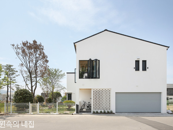 단독주택이 즐비한 양산 물금신도시 택지지구에 모두의 부러움을 사는 놀이터 옆 집. 프라이버시와 소음 문제를 영리하게 풀어낸 방법이 궁금하다.은근하게 마당을 감싸며 외부와 관계를 맺는 주택의 매스. 내오염성이 좋은 독일산 실리콘계 로투산 페인트로 미장 마감해 형태를 부각했다. 주방에서 바라본 모습. 층고를 틔운 2층 바닥 장선, 계단실 벽체, 멀리 거실의 천장부 등 실내 곳곳에 드러나는 중목구조 부재가 이 집의 정체성과 본질을 상기시킨다. 낙동강과 양산천 사이, 배산임수 명당의 대규모 택지지구 양산 물금신도시. 부산과의 접근성이 좋고 대부분 평지 입지라 주택에 대한 공급과 수요가 활발한 곳 중 하나다.건축주 부부는 초등학교 5학년인 아들과 어린이집에 다니는 딸에게 집에서도 다양한 공간을 경험하게 해주고 싶어 집짓기 준비에 착수했다. 마감해 놓으면 콘크리트조인지 목조인지 모르는 집이 아니라 일부라도 뼈대(본질)가 드러나는 집이면 좋을 것 같아 중목구조를 택했다. 공부를 하다 보니 적어도 골조만큼은 현장 상황이나 작업자 역량, 그날의 컨디션에 따라 품질이 달라지지 않는다는 점 역시 마음에 들었다.1년 전, 친한 선배가 경남 김해에 집을 지으며 소개해 준 블루하우스코리아는 마침 양산에만 중목구조 주택 여덟 채를 시공했던 터. 부부는 매일 현장에 출근하듯 지켜볼 형편은 아니었기에 일임할 시공사가 필요했다. 하도급을 주지 않고 현장 소장이 상주해 연간 지을 수 있는 주택에 한계가 있다는 말에 신뢰를 갖고 본격적인 설계에 들어갔다.SECTION①현관 ②포치 ③창고 ④복도 ⑤세면실 ⑥화장실 ⑦샤워실 ⑧거실 ⑨주방 ⑩보조주방 ⑪팬트리 ⑫방 ⑬드레스룸 ⑭세탁실 ⑮발코니 ⑯다락 ⑰주차장 ⑱마당 ⑲중정 ⑳보일러실천장에 부재를 노출한 거실. 한식 마루 패턴의 질감 있는 원목마루가 따뜻한 느낌을 더한다. 넉넉한 현관에는 낮은 벤치가 포함된 신발장을 두었다. 왼쪽 문을 열면 워크 인 클로짓(Walk in Closet)이 있어 수납공간이 충분하다. HOUSE PLAN대지위치 ▶ 경상남도 양산시 대지면적 ▶ 317.0㎡(95.89평) | 건물규모 ▶ 지상 2층 + 다락 건축면적 ▶ 150.40㎡(45.49평) | 연면적 ▶ 284.34㎡(86.01평) 건폐율 ▶ 47.44% | 용적률 ▶ 75.09% 주차대수 ▶ 2대 | 최고높이 ▶ 9.1m구조 ▶ 기초 - 철근콘크리트 매트기초 / 지상 – 중목구조(철물공법) 단열재 ▶ 외벽 - 비드법보온판 2종2호 70mm + 에코배트 R19 / 지붕 - 우레탄단열패널 10mm + 에코배트 R32외부마감재 ▶ 외벽 - STO 외단열시스템, 벽돌 영롱쌓기 / 지붕 – 갈바륨단열패널(니치하) 창호재 ▶ 레하우 86mm PVC 삼중창호(에너지효율 1등급) 철물하드웨어 ▶타츠미 TEC-1 P3 열회수환기장치 ▶ Vents(벽부형) | 외부 전동 차양 ▶ 바레마 EVB 에너지원 ▶ 도시가스 조경 ▶ ㈜송덕조경 건축·구조설계 ▶ 블루건축사사무소 010-3847-7008 www.bluearch.co.kr시공 ▶ 블루하우스코리아㈜ 031-8017-5002 https://cafe.naver.com/bluehousekorea총공사비 ▶ 5억3천만원(설계 및 주방 가구 제외) 현관으로 들어서면 전면에는 중정이 있어 시각적으로 열린 느낌이다. 계단실 벽면 역시 일부를 노출해 답답함을 덜었다. 중정과 연결된 주방. 일부분은 층고를 틔워 2층과 연결된다. 프라이버시와 커뮤니티를 동시에 지키는 방법대지는 남쪽과 북쪽 2면에 도로를 접해있고 동쪽으로는 공원 겸 놀이터가 위치한다. 3면이 트여 있어 시야에 가림이 없고 자연적 감시 효과로 인해 방범이 좋다는 장점이 있지만, 반대로 생각하면 프라이버시와 소음에 취약할 수도 있는 곳이다.같은 이유로 처음에는 건축주도 이 땅의 구입을 주저했지만, 설계를 진행하면서 충분히 보완할 수 있다는 걸 알게 되었다. 양쪽 도로와 면한 곳은 각각 현관부와 중정을 두어 외부 시선을 차단하고, 마당은 아예 놀이터와 연계하되, 중치 높이의 나무를 심어 경계를 뚜렷하게 맺었다. 2층 침실 앞에는 선룸 발코니를 레이어 삼아 사생활을 보호하면서 동시에 공원 뷰를 누리는 공간으로 쓰고자 했다.도로에서 본 주택 진입부. 벽돌을 엇갈리게 쌓아 현관의 직접적인 노출을 피했다. POINTPOINT 1 - 오차 없는 기초는 중목구조의 기본 중목구조는 기초 레벨이 5mm 이상 차이가 나면 프리컷 목재와 철물의 결합 자체가 불가능하기 때문에 터파기할 때부터 타설 중간중간에도 오차 없이 레벨을 맞춰야 한다.POINT 2 - 내진구조의 철물공법 진도 7 이상을 견디는 내진구조를 위해 일본 프리컷 회사와 국내 구조사무실과 협업해 최종 구조 도면을 작성했다. 단순 조립이 아닌 철물까지 결합한 더욱 견고한 구조다.POINT 3 - 외부 전동 차양과 벽부형 환기장치 여름철 직사광선으로 인한 냉방 부하를 낮추고 방범에도 효과적인 외부 전동 차양을 달았다. 또한, 덕트 공간을 많이 차지하지 않는 벽부형 환기장치를 통해 실내 공기질에도 신경 썼다.플랜테리어를 시도한 2층 선룸 발코니. 노출 구조보에 와이어를 걸어 행잉 플랜트를 설치하기에도 용이하다. 삼면에 설치한 폴딩도어 덕분에 탁 트인 공원 뷰를 감상하기 좋은 공간이다. 집 구조 가운데 위치하는 계단은 창문을 만들 수 없어 자칫 답답할 수 있었다. 그러나 회전식 배치와 계단