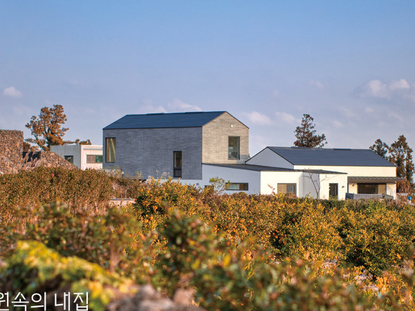 바빴던 그간을 정리하고 제주로 내려온 부부. 이곳에 집을 지은 후 생긴 작은 기대들이 별일 없는 일상까지 즐겁게 한다.“전원을 즐길 수 있는 건강하고 소박한 집이었으면 좋겠습니다.”그동안 서울에서 숨 가쁘게 살아온 부부는 고되었던 지난 삶을 모두 내려놓고 제주행을 결심했다. 정원도 가꾸고 주변 오름도 오르는 건강한 노후를 꿈꾸며, 그들에게 딱 맞는 집을 만나고자 다양한 건축 서적을 챙겨보는 노력도 게을리 하지 않았다. 집 짓는 게 쉽지 않다는 얘길 듣고 이미 완공된 주택을 살까 발품도 많이 팔아보았지만, 정작 마음에 드는 집을 찾기가 더 어려웠다. 결국 그냥 ‘집을 짓자’란 결심이 선 것도 그때쯤이었다.SECTION ⑤손님방 ⑧거실 및 식당 ⑨테라스 ⑩드레스룸 ⑪안방 ⑮서재 집은 너른 과수원을 200여 평으로 분할한 대지 위에 자리하고 있다.건물을 대지 전면으로 배치하고, 건물과 일체화된 담을 쌓아 대문간을 만들었다. 그 결과 내밀하면서도 활발하게 쓰이는 ‘가운데 마당(중정)’을 둘 수 있게 되었다. 먼저 부부는 터를 골랐다. 두 사람이 고민 끝에 구매한 땅은 북쪽으로는 한라산이, 남쪽으로는 서귀포 바다가 멀리 보이는 한적한 대지였다. 3,000여 평의 큰 귤 밭을 12개의 필지로 나눠, 이미 몇 채의 집이 듬성듬성 들어선 작은 마을 같은 곳. 이곳에 자리할 집의 설계는 제주에서 여러 차례 건축 경험이 있는 에이루트 강정윤, 이창규 소장이 맡았다.“이웃한 집들을 보니 대부분 분할된 택지 가운데 건물을 배치하고 담장을 둘렀더라고요. 외부에서 가족들의 공간이 훤히 들여다보여서인지 집마다 커튼을 치고 마당을 즐기지 않는 듯 했죠. 안타깝게도 200평의 땅을 사서 1/5 정도의 공간만 누리는 느낌이었어요.”중정은 언제나 드나들며 만나는 편안한 마당이다. 제주 곶자왈을 형상화한 조경으로 꾸며 집 안에서도 제주를 느낄 수 있다.HOUSE PLAN대지위치 ▶ 제주특별자치도 서귀포시대지면적 ▶ 660㎡(199.65평) | 건물규모 ▶ 지상 2층건축면적 ▶ 130.71㎡(39.54평) | 연면적 ▶ 145.49㎡(44.01평)건폐율 ▶ 19.80% | 용적률 ▶ 22.04%주차대수 ▶ 1대 | 최고높이 ▶ 6.45m구조 ▶ 기초 – 철근콘크리트 매트기초 / 지상 – 철근콘크리트 + 경량목구조단열재 ▶ 비드법단열재 2종3호 100mm 외단열, 크나우드 그라스울 에코베트 가등급외부마감재 ▶ 스토(STO) 마감, 모노롱 타일, 제주석, 갈바륨 징크 및 일부 알루미늄 징크 지붕담장재 ▶ 콘크리트 및 제주석창호재 ▶ LG하우시스 PVC 시스템창호 및 이건 알루미늄 창호, 로이 복층 유리철물하드웨어 ▶ 심슨스트롱 타이, 허리케인 타이총공사비 ▶ 3억3천만원(설계, 감리비 및 조경 제외)시공 ▶ 건축주 직영설계 ▶ 에이루트(A root architecture) 강정윤, 이창규 064-721-1210 www.arootarchitecture.com2층 테라스 하부 공간을 활용한 근사한 대문간. 앞쪽으로는 아기자기한 화단을 조성하여 화사한 골목 분위기를 더하고자 노력했다. 최소한 땅 위에 그저 우두커니 서 있는 집은 되지 않게 하자는 데 뜻을 모아 건축가는 중정을 둔, 모든 실에서 마당을 접할 수 있는 집을 구상했다. 그리곤 건물 자체가 담장이 되는 방법을 선택함으로써 들고 날 때 언제나 마주하고 대문을 열면 골목과 이어지는 길의 연장선이 되는 마당, 내부 실과 각기 다른 성격으로 접하는 마당이 자연스레 대지 가운데 놓이도록 했다.안방 쪽 안마당은 담장을 사이에 두고 골목과 만난다.뒷마당은 둔덕을 그대로 살려 원래 땅이 가지고 있는 안정감을 유지해주었다.“건물로 담을 만들어 대문간을 두니 골목에서 한 번 멈춰 설 수 있는 근사한 대문과 처마가 생겼어요. 덕분에 비를 맞지 않고 현관까지 갈 수 있는 대우받는 공간도 가지게 되었죠.”배치가 풀리니 다른 평면들은 자연스레 부부의 삶을 담을 수 있게 되었다. 두 사람이 생활할 안방과 독립한 자녀들이 놀러와 머물 수 있는 손님방을 1층에 만들고, 2층에 서재 겸 다실을 두었다. 특히 1층에는 거실과 주방을 함께 배치해 부부 둘만 있어도 적적하지 않게 배려하고, 2층의 서재는 높은 마루와 그와 이어진 테라스를 만들어 2층임에도 마치 1층 같이 느껴지는 공간을 완성했다. 더불어 목구조가 가진 따뜻함에 한식창호를 더하니, 익숙하고 마음 편한 집이 갖춰졌다.부부가 적적하지 않도록 주로 생활하는 식당과 거실을 함께 두었다.공간을 서쪽으로 배치한 덕분에 따뜻한 오후의 빛이 깊게 들어 온다.“조경은 기존에 있던 서쪽의 둔덕을 그대로 살릴 것을 부부에게 제안했어요. 원래 땅이 가진 분위기가 새로 들어선 집에 안정과 무게를 줄 것이라는 판단했죠.”안방의 작은 마당과 대문 앞 화단에는 돌담을 적절하게 올리고 대나무와 남천 등으로 아늑하게 연출하되, 골목의 풍경을 고려했다. 그리고 중정은 부부의 의견에 따라 소철을 더해 제주 곶자왈과 같은 풍경을 만드는 데 힘썼다.PLAN ①대문간 ②가운데 마당(중정) ③현관 ④창고 ⑤손님방 ⑥주방 ⑦보조주방 ⑧거실 및 식당 ⑨테라스 ⑩드레스룸 ⑪안방 ⑫화장실 ⑬뒷마당 ⑭안마당 ⑮서재 안방은 아늑하게 구성하고 가운데로 열리는 큰 창을 놓아 마당과 가까운 집을 만들었다. 골목 쪽으로는 담