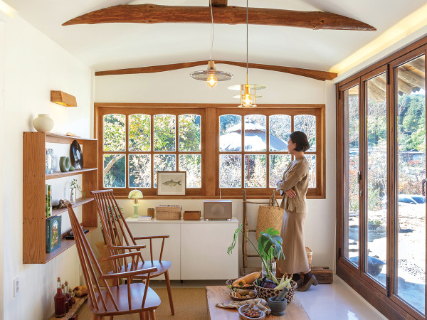고이 간직한 250년 세월이 손녀의 손길에 반짝이며 되살아난다. 농부가 되어 소박한 삶을 나누고자 고향으로 돌아온 송지혜 씨의 이야기.스위스, 프랑스, 멕시코, 태국, 베트남 등 10년 가까이 세계 각국의 호텔에서 일했다. 4년여 전, 한국으로 돌아와 호텔리어의 삶을 이어나가면서도 송지혜 씨는 늘 새로운 꿈을 꿨다. 2개 국어로 행사를 진행하는 국제 MC를 준비해 본격적으로 일을 시작하게 된 것도, 집안 대대로 내려온 고택을 고쳐 농업회사법인 ‘르꼬따쥬(Le Cottage)’를 만든 것도 누군가에겐 그저 무모한 도전일지 모른다. 하지만 그녀에겐 설렘이었고, 삶의 또 다른 발견이었다.“지난봄, 새로운 일 몇 가지를 한꺼번에 시작하게 됐어요. 국제 MC로서는 콘퍼런스나 방송 제작 발표회 등을 진행하고, 르꼬따쥬 대표로서는 250년 넘은 이 한옥과 자연 속에서 소박한 삶의 방식을 공유해요. 극명하게 다른 두 개의 삶을 오가며 살고 있죠. 그래서 요즘 사는 재미는 있어요(웃음).”폴딩도어를 활짝 열어두면 주변 풍경이 안으로 한가득 담긴다. 현관문과 폴딩도어는 모두 직접 디자인을 구상해 원목으로 제작한 것. 조명까지 하나하나 세심하게 고르고 신경 썼다. 안쪽 공간에 어릴 때 치던 피아노를 가져다 두고, 화분과 아버지의 LP판을 올려 장식했다.가족이 함께 차린 농업회사 르꼬따쥬를 이끄는 송지혜 대표(오른쪽)와 동생 송은혜 이사(왼쪽)‘ㄱ’자 구조의 한옥 본채는 할머니, 할아버지께서 살고 계신 집으로, 아직 옛 모습 그대로다. 르꼬따쥬를 꾸린 곳은 마구간으로 쓰였다던 별채. 뒷마당으로 확장한 건물까지 합쳐야 11평 남짓 되는 작은 공간이다. 맏딸인 지혜 씨를 필두로 결혼한 두 동생 내외까지 다섯 식구가 모여 법인회사를 설립하고, 지난 5월부터 8월까지 푹푹 찌는 더위를 이겨내며 직접 발품을 팔아 직영으로 공사했다. 기둥 하나하나, 격자무늬 원목 창문까지 손수 다듬었고, 정원에 잔디를 깔고 꽃을 심고 수돗가와 모래놀이터, 모닥불 화로도 만들었다. 가끔 힘에 부칠 때면, 감히 값어치를 따질 수 없는 유산을 운 좋게 누린단 생각을 하며 느슨해진 마음을 다잡았다. 바로 옆 대지에는 목조주택 골조가 한창 올라가고 있었는데, 완공되면 할머니, 할아버지와 함께 지혜 씨가 들어가 살면서 본채도 조금씩 손볼 계획이다.안으로 들어가면 옛 구조를 살린 공간과 빈티지 가구, 소품이 자연스럽게 어우러진다. 나지막한 테이블은 할머니의 떡판으로 만든 것이다. 오후 3시, 햇살이 쏟아져 들어오는 시간. 스페인에서 건너온 빈티지 램프는 그녀가 아끼는 물건 중 하나.정성스럽게 매만진 르꼬따쥬에는 가족의 역사가 곳곳에 자리 잡았다. 시집온 지 60년이 넘으신 할머니의 떡판은 티테이블이 되었고, 그 역사를 가늠하기조차 어려운 맷돌은 화분 받침이 되어 정겹게 자리한다. 아버지와 외삼촌이 수집한 LP판들도 선반 위 멋스럽게 진열해 그 시절 감성을 고스란히 전하고 있었다.“라이프스타일 팜(Lifestyle Farm)이라고 하면, 도대체 뭐 하는 곳이냐고들 물어보세요. 사실 한마디로 정의하긴 어려운 공간이죠. 아이들이 씨앗을 심어 열매가 달리기까지 모든 과정을 경험할 수 있는 체험 농장이기도 하고, 화분과 식물, 다양한 리빙 아이템을 판매하는 편집숍이자 각종 모임이 열리는 문화 살롱이기도 하니까요.”선반에 진열된 각종 소품과 화분, 음반들르꼬따쥬를 지키는 ‘꼬따(Cotta)’와 지혜 씨. 유기견 센터로 보내질 뻔한 꼬따는 지난여름, 인연을 맺게 되었다.이 안에서의 콘텐츠는 사람들과 함께 만들어나가고 싶다는 지혜 씨. 10월 말 르꼬따쥬를 임시 오픈하고 가든마켓과 플라워 클래스를 성공적으로 마친 참이다. 정식 오픈은 돌아오는 봄에 할 예정. 날씨가 따뜻해지면 정원도 더 풍성하게 가꾸고, 주변 부지에 본격적으로 농장을 조성하려고 한다. 온실도 지어 직접 키운 식물을 판매하고, 마당에는 선베드와 테이블 등을 놓아 차나 샴페인을 즐길 수 있게 할 생각이다. 작은 결혼식이나 파티 공간 등 더 다양한 방식으로 자연을 누리고 쉼을 얻을 수 있는 공간을 선물하고 싶다.뒷마당에서 바라본 외관. 한쪽 벽에 각종 정원용품과 오래된 나무문을 기대어 두었다. / 손님을 반기는 입간판의 작은 화분과 수도꼭지 디테일이 앙증맞다. 자매는 어릴 적 기억이 담긴 할머니 집 마당에서 자연과 여유를 마음껏 누린다.볕 좋은 가을날, 지혜 씨는 장독에 포도주를 담갔다. 이런 아날로그적인 일상이 너무 좋다며, 맨손으로 벌레를 잡아 문밖에 놓아주는 털털한 그녀. 오늘도 이 오래된 한옥에는 손녀의 맑은 음성이 잔잔히 흩어지고, 찬바람과 함께 포도주도 시간도 향긋하게 익어간다. 따뜻한 이들의 소중한 순간이 하나둘 더해지길 기다리면서.취재협조_르꼬따쥬 | 강원도 강릉시 한밭골길 50-11, 인스타그램 : lecottage_lifestylefarm취재_조고은 | 사진_홍덕선ⓒ 월간 전원속의 내집/ Vol.238 www.uujj.co.kr