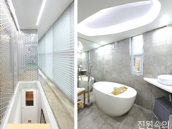 아무리 환한 조명도 자연광에 비할 수 없고, 강제 환기장치도 자연 환기 와는 결이 다르다. 소위 ‘드라이 에어리어(Dry Area)’라고도 하는 썬큰을 그냥 비워두지 않고 다양하게 활용한 사례를 모았다.지하실 한가운데에 썬큰 공간을 두어 작은 정원을 꾸몄다. 건축주의 목공예 작품이 곳곳에 놓여 전시 공간의 역할도 겸한다.유하우스모든 실에 빛이 환히 들도록 목련 꽃잎을 형상화한 주택. 지하로 내려가는 통로를 내면서 계단식 조경과 함께 자연스레 썬큰을 내었다.GIP도심 속 주택이라면 지하에 썬큰 마당을 만들고 지상엔 생울타리로 둘러 프라이버시를 보호하는 방법도 있다.세담건축사사무소아치창과 인더스트리얼 스타일 인테리어로 꾸민 지하층은 썬큰 덕분에 음습하지 않고 따뜻한 공간으로 완성되었다.스페이스목금토건축사사무소 ©이남선TIP | 지하 썬큰 공간, 이것만은 알고 준비하세요▶ 지하층은 연면적에는 들어가지만 용적률에는 포함되지 않는다. 건폐율 때문에 사용하지 못하는 대지 내에 지하를 만들고 썬큰을 낼 수 있지만, 그만큼 지상 마당 면적이 줄어드는 것도 감수해야 한다.▶ 지하층은 터파기나 골조공사 등 지상층보다 공사비용이 약 30% 더 소요된다. 대지가 암반 지역은 아닌지, 물이 많지는 않은지 등 사전 조사 후 득과 실을 비교해 진행해야 한다.▶ 지하층 거실 바닥면적이 50m2 이상이라면 직통 계단 외에 피난층 또는 지상으로 통하는 비상 탈출구 및 환기통을 설치해야 한다. 직통 계단이 2개 이상이라면 하지 않아도 된다.건물 중심부의 보이드는 중정이면서 지하에서는 썬큰 역할을 한다. 마당과 건물을 연결하는 브리지가 이 공간을 더욱 특별하게 만들어준다.스튜디오 꾸씨노 ©이재성당구실, 홈바, A/V룸으로 쓰는 남편의 지하 취미 공간. 어두운 조명이 제법 어울리는 곳이지만, 썬큰은 환기를 위해서도 필요하다.리슈건축 ©임재철사우나 시설과 욕실과 면해 마련한 썬큰에 미니 정원과 함께 입욕 시설을 두었다. 마 치 리조트에 온 듯한 기분을 선사한다.SG건설구성_조성일 | 사진_주택문화사DBⓒ 월간 전원속의 내집/ Vol.235 www.uujj.co.kr