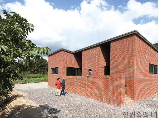 평소와 같이 눈을 떴음에도 왠지 특별한 하루가 시작될 것 같은 기분. 지난여름 시골에서 시작된 삶은 그저 딸이 지어준 집에 있는 것만으로도 부부를 미소 짓게 한다.전원생활은 아버지의 오랜 꿈이었다. 더 늦기 전 그 바람을 이루고 싶다며 부모님은 은퇴가 다가올 무렵부터 집 지을 땅을 찾아 전국을 다니셨다. 그렇게 꼬박 2년의 시간이 흘렀다. 연고도 없던 충청북도 괴산에서 지금의 땅과 마주하기까지.자연을 가까이 둔 공기 좋은 마을, 그야말로 사람 사는 곳 같았다고 한다. 당시 인삼밭으로 쓰고 있어 재배까지 또 한 번의 긴 기다림이 필요했지만, 원하는 것을 만나게 될 순간을 떠올리며 부모님은 그조차 설레하셨다.대지 경사로 출입구에 계단이 생겼는데, 보통 계단 높이보다 낮게 해 오르내리기 편리하도록 했다. / 깔끔하게 단장된 거실 복도 공간 주변 산과 어우러진 주택의 외관. 대지 특성상 집은 남서향으로 앉혔다. 샌드위치 패널 사이에 경량철골기둥을 세워 공기층을 형성하고, 각 접합부위를 밀실하게 처리하여 단열 효과를 높였다. 몇 번의 계절이 바뀌고 따스한 봄바람이 불던 무렵, 첫 삽을 떴다. 딸이 짓는 집인 만큼 믿음과 걱정이 동시에 교차했지만, 막상 공사가 시작되고 나선 모든 게 기우였음을 금세 깨달았다고. 딸은 부모님이 원하는 바를 집 곳곳에 담았고, 어느 것 하나 허투루 하지 않은 두 분의 새 보금자리를 차곡차곡 완성해갔다.HOUSE PLAN대지위치 : 충청북도 괴산군 대지면적 : 714m2(215.98평)|건축규모 : 지상 1층 건축면적 : 121.64m2(36.79평)|연면적 : 121.64m2(36.79평) 건폐율 : 17.03%|용적률 : 17.03%주차대수 : 1대|최고높이 : 4.9m 구조 : 기초 – 철근콘크리트 줄기초 / 지상 – 경량철골조 단열재 : 비드법단열재|외부마감재 : 벽 – 적벽돌 위 발수코팅 / 지붕 – 컬러강판 내부마감재 : 벽 – 던에드워드 도장 / 바닥 – 동화자연마루 강마우(신성데코) 창호재 : LG하우시스 시스템창호, PVC 이중창|에너지원 : 기름보일러 욕실 및 주방타일 : 대일도기|수전 및 욕실기기 : 아메리칸스탠다드, TOTO(욕조) 주방가구 및 붙박이장 : 제작 가구(협정 Y.M)|조명 : 니오조명 현관문·중문 : 엘도어|방문 : 예림도어 시공 : 바나나안바나나, ㈜어울림건설산업 설계 : 바나나안바나나 배주희, 명노훈 070-7621-3475 www.graybanana.co.kra) 붙박이장을 제작해 넓게 구성한 현관. 현관문 맞은편에는 시골 생활로 인해 생긴 여러 가지 물품을 보관할 수 있는 창고를 두어 편의를 도모했다. b) 깔끔한 다이닝룸과 주방. 보통 주택 내부에 있는 창문이나 천장 몰딩, 걸레받이 등이 도드라지지 않게 정리만 되어도 큰 비용을 들이지 않고 인테리어 효과를 거둘 수 있다. 붉은 벽돌의 담백한 단층집. 외형적으로 화려하기보단 부모님에게 딱 맞는, 내실 있는 공간 구성에 특별히 신경 썼다. 그동안 불편함을 감수하며 살아온 획일화된 아파트 평면에서 벗어나 요리를 즐기는 어머니를 위해 주방과 다이닝 공간을 가능한 한 넓게 구성하고, 대신 거실과 침실 등은 갖춰야 할 요소만을 채워 공간에 대한 욕심을 비워냈다.c) 드레스룸과 욕실을 갖춘 안방. 남향이라 언제나 따뜻한 볕이 든다. 창마다 방범방충망으로 보안에도 신경 썼다. d) 안방과 같은 동선상에 놓인 욕실. 욕조 옆에는 안전바를 설치하여 연로한 부모님이 미끄러지거나 넘어질 위험에 대비했다.e) 어머니의 모든 로망이 이뤄지는 주방은 이 집에서 가장 큰 면적을 차지한다. 주방 안쪽 다용도실 뒷문으로 나가면 수돗가, 가마솥, 텃밭과 연결된다.작은 치수 하나까지 고민해 각 실을 나누고 배치한 덕분에 불필요한 면적으로 혹여 생길 관리의 어려움은 미리 방지할 수 있었다. 주방이 어머니의 공간이라면 아버지가 가장 좋아하는 장소는 거실. 널찍한 창으로 둘러싸인 거실은 변하는 계절을 그대로 받아들인다. 그래서인지 볕이며 빗줄기며, 땅거미 지는 하늘의 색감도 늘 집 안으로 살며시 녹아든다.모든 창문과 방문의 높이를 통일하고, 문이 없는 개구부는 인방 높이를 동일하게 하여 수평을 맞추었다. / 밖에서 들어와 바로 손을 닦을 수 있도록 세면대는 욕실 밖으로 내었다. 거실은 외부와 연계된 큰 창으로 작지만, 개방감이 든다. 실링팬은 높은 천장고로 인해 열효율이 떨어지는 것을 방지한다.ZOOM IN _ 냉난방비 절감의 일등공신,LG하우시스 지인 ‘유로시스템9’ 창호부모님집 창호는 가장 고민이 되었던 부분. 이 집은 PVC소재의 LG하우시스의 유로시스템 창호를 선택해 냉난방비 절감은 물론, 작동 편의성을 높였다. 시스템창호는 단창으로 창틀 폭을 최소화해 슬림하고 세련된 디자인을 구현할 수 있고, 원하는 사용 방식에 따라 미서기(Lift&Slide)와 여닫이(Tilt&Turn) 개폐 시스템을 선택할 수 있다. 유리는 초고단열 슈퍼로이유리가 적용되었다.COST INFO* 모든 비용은 공사가 시작된 2018년 4월 기준PROCESS‘땅의 모양에 맞춰 집을 어떻게 앉혀야 할까’가 설계상 풀어야 할 이 집의 가장 큰 숙제였고, 구조는 비용 한계로 인해 경량철골조로 선택했다.1.공사 전 대지 / 좋은 경치를 가졌지만, 좁고 긴 대지의 모양이 고민이었다.2.바닥 / 터파기 후 버림 콘크리트, 줄기초 작업 등 바닥