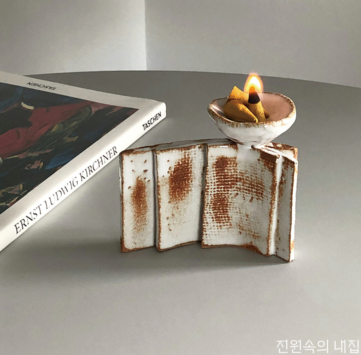 동그란 모양의 향초나 콘 모양의 인센스를 두게끔 디자인된 제품. 자체만으로도 포인트가 되어 선반 위 장식을 위한 오브제로 써도 좋다. 10x8.5(cm) ERDE