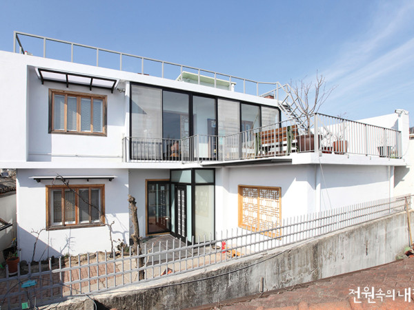 그동안 여러 차례 모습을 바꿔왔던 건물이 새로운 주인을 만나 제대로 된 맞춤옷으로 갈아입었다. 햇살을 한껏 받은 마당에서 한참을 바라보고 있자니, 집을 고치며 느꼈을 가족의 즐거움과 감탄이 고스란히 전해지는 듯하다.취재 김연정 사진 변종석▲ 긴 시간 다양한 용도로 사용되었던 건물이 리모델링을 통해 한 가족의 따뜻한 보금자리로 거듭났다.▲ 현대와 과거의 요소들이 조화롭게 어우러진 2층의 다목적 공간House Plan대지위치 : 서울시 종로구대지면적 : 148.80㎡(45.01평)건물규모 : 지상 2층 + 옥탑층건축면적 : 85.67㎡(25.91평)연면적 : 146.51㎡(44.31평)건폐율 : 57.57% / 용적률 : 98.46%최고높이 : 8.3m공법 : 기초 - 줄기초(기존), 지상 - 조적조(기존)구조재 : 벽 - 적벽돌(기존), 지붕 - 슬래브(기존)지붕마감재 : 자기질타일단열재 : 내단열 - 골드폼 / 압출법단열재 1종1호 30㎜, 50㎜외벽마감재 : 미장 위 외부용 수성 페인트창호재 : 동양창호 PVC설계 : 이관직(비에스디자인건축)시공 : 이경용(LMT Architects) 개조비용 : 약 1억4천만원REMODELING PROCESS01오래된 집을 리모델링하다 보니, 철거와 보강공사를 함께 진행해야 했다.021층을 H빔 구조로 보강해주었다.032층으로 올라가는 내부계단을 계획하기 위해 슬래브를 일부 제거했다.04기존 현관 부분. 이 목재는 2층 벽을 장식하는 데 재사용되었다.051층 자녀방은 기존 공간이 2명의 방으로 쓰이기엔 작아 벽체 철거 후 신설, 확장했다.061층 욕실 벽을 만들고 주방 시공을 진행했다.07옥탑으로 올라가는 외부계단. 2층 조망을 가리지 않으면서 효율적으로 배치하고자 했다.082층 외관의 미장공사가 완료되었고, 전면에 유리가 설치되었다.09바닥에는 온수파이프를 설치하여 난방을 돕는다.10현관 방향을 바꾸게 되면서 생긴 틈에 조적 및 미장을 완료했다.111, 2층 계단 및 주방 벽 등을 타일로 마감했다. 12우물천장 및 벽 석고보드 마감이 끝났다. 기존 문틀을 분해하여 인테리어 요소로 활용했다.“주택은 건축주와 사용자가 다른 건물이 아니라 같은 공간이다. 집의 설계 과정은 건축주와 반복되는 의견 조율의 과정이 필요하다. 설계 단계뿐만 아니라 공사 중에도 번복과 절충이 언제든 일어날 수 있다. 더군다나 기존 건물을 리모델링하는 경우는 그 과정이 더욱 복잡해진다. 대지 조건이나 구조 등의 물리적인 한계도 결정을 어렵게 한다. 그렇지만 목표는 하나다. 경제적이며, 살기에 편하고, 보기 아름다운 집. 그런 집이 좋은 집일 것이다.” - 이관직 건축가리모델링 전 기존의 건물은 주택을 개조하여 용도에 맞춰 사용 중이었고, 이전에도 여러 번의 변경을 거친 흔적이 남아 있었다. 이 건물을 매입한 건축주는 또 한 차례 리모델링을 계획하고 건축가를 찾았다. 가족의 요구사항은 1층을 가족의 공간으로 사용하고 2층은 비교적 여러 사람이 모임을 할 수 있는 공간으로, 테라스나 옥상에는 텃밭을 둘 수 있게 해달라는 정도였다. 한옥 목수가 손을 보았던 덕에 기존 집은 한옥이 아니었음에도 불구하고 창호를 비롯한 곳곳에 전통적인 소목의 솜씨가 묻어났다. 건축주는 이러한 장인의 솜씨를 최대한 남겨두거나 재활용해주길 원했다. 이 같은 요구는 설계와 공사를 진행하는 동안 여러 어려움과 마주치게 했지만, 결과적으로 좋은 공간을 만드는 훌륭한 요소들이 되어주었다. 기존의 집은 겉보기에도 오래되어 보이고 여기 저기 손댄 곳이 많았다. 기초적인 설계를 진행한 후 조심스럽게 철거를 시작해 보니 몇 곳은 구조적인 보완도 필요한 상태였다. 결국 부분적으로 조금씩 설계를 수정했고, 구조가 취약한 곳은 철골로 받쳐 기초를 형성한 다음 안정성을 보강하였다. 내부 계단을 위해 2층 슬래브의 일부는 절단할 수밖에 없었는데, 이는 처음 예상했던 것보다 훨씬 대수술이었다. 가장 큰 난관은 기존 건물에 덧붙여 사용하던, 마당 한가운데 위치한 외부 철재 계단의 처리였다. 건축주는 2층을 1층과 별도의 용도로 사용할 수 있다는 생각에 그대로 두길 원했지만, 주거 중심의 생활을 위해서라도 계단만큼은 내부로 옮기는 것을 제안할 수밖에 없었다. 마당의 이용이나 주택의 사용, 건물의 형태 등을 고려했을 때 외부 계단을 철거하는 것이 옳은 결정이라는 생각에서다. ▲ 마당에서 바라본 외관. 기존 현관의 방향을 옮겨 남측에서 진입할 수 있도록 했다.◀ 마을 전경이 내려다보이는 2층 발코니 ▶ 안방과 거실을 이어주는 복도. 창밖으로 보이는 마당이 인상적이다. ◀ 현관과 마주한 주방의 경계를 나눠주기 위해 장식 효과가 있는 가벽을 세웠다. ▶ 가족만의 아담한 식사 공간과 2층으로 올라가는 계단실이 한눈에 들어온다.Interior Source내벽 마감재 : 벽지 - MUJI, DID / 페인트 - 친환경 수성락카바닥재 : 신명마루 강마루욕실 및 주방 타일 : 논현동 C&M space수전 등 욕실기기 : 세면대 및 수전 – 아메리칸스탠다드, 양변기 - 계림주방 가구 : 한샘조명 : 을지로 DS Lighting계단재 : 계단판, 손스침 – 미송집성 / 게비온월 상판 - 아카시아 집성현관문 : 알프라임도어방문 : 예다지도어아트월 : 기존 한옥창호 붙박이장 : 주문제작데크재 : 타일 - 논현동 C&M space현관의 경우, 남측 안방과 북