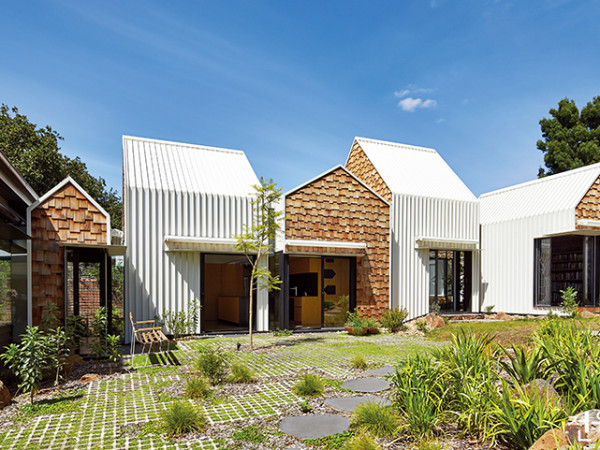 집을 짓기 전, 부부와 그들의 쌍둥이 두 아들에게 집에 대해 물었다. 돌아온 대답은 이웃과 예술, 자연이 함께 할 수 있는 곳. 이 모두를 수용할 수 있는 그들만의 작은 마을이 건축가의 손을 통해 완성되었다.취재 김연정 사진 Peter BennettsHouse Plan 대지위치 : Alphington VIC, Australia대지면적 : 500㎡(151.25평)연면적 : 225㎡(68.06평)건축기사 : Maurice Farrugia and Associates정원디자인 : Bush Projects and Andrew Maynard Architects조경설계 : Lucida Landscapes스테인드글라스 : Leigh Schellekens 시공 : Overend Constructions 설계 : Andrew Maynard Architects(Mark Austin, Andrew Maynard) www.maynardarchitects.com호주 멜버른(Melbourne) 북동부의 교외지역인 알핑턴(Alphington)에 위치한 타워하우스는 증·개축을 통해 완성된 집이다. 이곳에는 여덟 살 쌍둥이 아들을 둔 부부가 산다. 기존의 주택은 가족의 생활 범위를 모두 수용할 만큼 넓지 못했기 때문에 증축이 필요한 상황이었다. 일반적으로 증축이라면 층을 늘려 면적을 넓히는 것이 보통이지만, 건축가는 건물 수를 늘리는 방법을 택했다. 작은 박공 형태의 블록 여러 채가 일렬로 세워지면서, 집은 하나의 작은 마을을 이루었다.대지는 멀리 공장 굴뚝이 보이는, 강과 공원이 인접한 곳이었다. 새로 지어진 몇몇 주택을 제외하고는 주변 모두 소박하거나 작은 판잣집, 벽돌집이 대부분인 마을이다. 그래서 무엇보다 이곳과 잘 어우러진 집을 짓고자 했다. 두 아이의 방과 욕실, 거실 등은 기존 공간을 활용하여 온기를 불어넣기로 했고, 스튜디오와 침실, 욕실, 주방, 식당 등은 증축할 공간에 앉혔다. 이 모두는 신뢰와 열정이 더해진 가족과의 대화를 통한 결과이기도 하다.기존 집은 붉은 벽돌로 지어진 단층 건물이었다. 증축한 건물에도 이러한 특징을 적용하고, 대신 목재와 철판 등을 지붕과 건물 외벽에 사용하여 변화를 꾀했다. 이 집만의 또 하나의 특징은 지붕이다. 이제는 구글 어스(Google Earth)를 통해 지붕이 언제나 누구든 볼 수 있는 건물의 대표적 얼굴이 됨을 염두에 두고, 하늘에서 내려다보았을 때도 집이 아름다워 보일 수 있게끔 설계에 각별히 신경 썼다.▲ 기존의 집과 새로 증축한 건물이 조화를 이룬다.▲ 이웃과 함께하는 열린 주택은 가족이 의도한 이 집의 특징이다.기존 주택의 내부는 전면적인 개보수를 거쳐, 침실과 욕실 그리고 거실이 놓였다. 슬라이딩 패널로 가벽을 세워 각 공간을 필요에 따라 분리할 수 있도록 했다. 기존 건물과 증축 건물 사이를 연결하는 복도도 별도의 건물 안에 따로 자리한다. 그 너머 네 채의 추가 건물이 정원 가장자리를 따라 줄지어 배치되었고, 주방과 식당, 침실과 서재 등이 이어진다. 복도를 따라가면 먼저 목재 패널로 마감된 가구가 돋보이는 주방과 식당을 마주하게 된다. 사실 이곳에는 특별한 공간이 숨어 있다. 집 모양으로 된 구멍을 사다리처럼 밟고 위로 올라가면, 작은 다락과 만난다. 집의 중심에 자리한 은신처라 불리 우는 이곳은 남편을 위한 공간으로, 인조 잔디를 깔아주어 날씨가 좋은 날이면 일광욕도 즐길 수 있도록 배려했다.침실 너머로는 아내의 공간이 자리한다. 짙은 색상의 목재로 마감된 작은 서재로, 정원과 마주하는 계단식 좌석을 비롯해 책장과 책상 등이 일체형으로 내부공간을 이루고 있다. ▲ 주방의 모습. 집 모양의 구멍을 밟고 오르면 인조잔디가 깔린 남편의 아지트를 만나게 된다.▲ 정원과 맞닿은 계단식 좌석, 일체형으로 제작된 책상 및 책장으로 꾸며진 아담한 서재SECTION▲ 거실은 가족에게 맞춰 다채로운 분위기로 새롭게 개조되었다. 주택은 이웃에게 열려있다. 앞마당에는 진입로를 내는 대신, 공동텃밭을 조성하여 이웃이 언제라도 찾아와 함께 심은 채소를 수확하고 이야기를 나눌 수 있도록 배려하였다. 사생활을 위해 이웃과 등지고 점점 더 높아져만 가는 울타리에 대한 불만이 있었던 가족에겐 더없이 마음에 드는 공간이다.거리와 마주하고 있는 유일한 2층 건물은 8살 쌍둥이를 위해 디자인되었다. 아래층은 공부방이고 위층은 쉬거나 책을 읽을 수 있는 장소가 된다. 거리 풍경이나 뒤뜰을 내려다보이고, 특이하게도 이곳은 그물이 바닥을 대신한다. 설계 초기 건축가는 이 집의 주체가 될 두 아이에게 종이와 연필을 건넸다. 어른들이 생각하지 못했던 중요한 것들이 아이들만의 발상으로 표현되었다. 이후 두 아이의 상상력이 더해진 스케치는 건축가를 통해 다듬어진 공간으로 만들어졌다. 마지막으로 이 집의 핵심은 ‘지속 가능한 건축’이다. 충분한 채광이 가능하도록 남쪽 경계를 따라 새로운 형태를 제안했다. 개구부와 창을 통해 태양열을 최대한 받아들이고 환기에 의한 공기 흐름으로 고려함으로써, 냉난방 제품의 사용은 최소화했다. 또한 하얀색 지붕은 방열판의 기능을 해 내부로의 열전달을 줄였다. 이밖에 모든 창은 이중창으로, 벽에는 모두 고성능 단열재를 설치했다. ▲ 아이들의 상상력이 더해져 디자인된, 쌍둥이를 위한 재미난 공간. 이 집에서 유일한 2층 건물이다. ▲ 대부분의 실들이 정원을 향해 열려 있어 시원한 개방감이 느껴진다.▲ 화이트 타일로 깔끔하게 마감된 욕실PLANAndrew Maynard Architects 