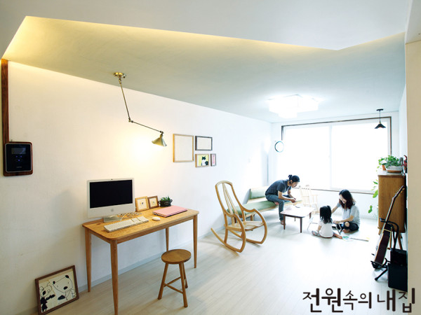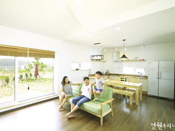 입주한 지 3주밖에 안 된 집에 초대를 받았다. 독자 이강휘 씨가 설계부터 준공까지 1년에 걸쳐 지은 집. 큰 집에 대한 욕심을 버리고, 설계ㆍ시공자들과 즐겁게 소통하며 지은 고고하우스는 이제 그의 가족뿐 아니라 주변 사람 모두에게 행복 바이러스를 전파하고 있다. 행복한 집짓기의 경험을 독자들과 나누고 싶었다는 그를 통해, 오랜만에 집의 진정성을 마주했다. 취재 이세정 사진 변종석 ▲ 한창 뛰어놀 나이의 4살 아이와 함께 한 부부. 주택으로 이사하고 나선 꼭 필요한 것들만으로 심플하게 살고자 마음 먹었다. HOUSE PLAN 대지위치 : 충청북도 충주시 대지면적 : 360㎡(108.9평) 건물규모 : 지상 2층 건축면적 : 71.67㎡(20.68평) 연면적 : 96.78㎡(29.88평) 건폐율 : 19.91% 용적률 : 26.88% 주차대수 : 1대 최고높이 : 7.85m 공법 : 기초- 철근콘크리트, 지상- 경량목구조 구조재 : 벽 - 2×6 목구조, 지붕 - 2×10 목구조, PLS 지붕재 : 컬러강판 단열재 : 벽 - 그라스울 R19, 지붕 - 그라스울 R30 외벽마감재 : 스터코플렉스, 고벽돌, 루나우드 창호재 : 융기 베카드리움 내벽마감재 : 벽지 바닥재 : KCC 강마루 설계 : 종합건축사사무소 도펠하우스 황영환 02-3144-8166 www.doppelhaus.co.kr설계담당 : 황경호 시공 : 건축주 직영 총 공사비 : 1억3천만원 ▲ 거실과 주방 매스는 정남향으로 약간 비틀어 뒷마당을 안는 형국이다. 최근 지방 소도시 아파트 값이 상승세를 타고 있다. 이런 흐름은 오히려 아파트 대신 도심형 전원주택을 택하려는 젊은 층의 수요를 부추기고 있다. 아파트 분양가면 땅을 사고 집을 짓는 비용을 감당할 수 있으니, 아이가 있는 가족에겐 주택의 꿈을 현실화할 수 있는 시장 분위기가 형성된 것이다. 본지의 독자 이강휘 씨도 같은 생각을 했다. “가족 모두가 캠핑 같은 야외 활동을 너무 좋아해요. 또, 아이가 점점 커 가면서 하루빨리 아파트 생활을 벗어나고 싶었어요. 집을 짓는다는 것이 처음에는 먼 이야기 같고 두렵기도 했는데, 막상 도전해 보니 터널을 하나씩 통과하는 성취감이 또 있더라고요.” ▲ 주변에 하나둘씩 집이 들어서고 있는 충주 전원주택지. 그 안에 강휘 씨 집은 군더더기 없는 젊은 감각으로 시선을 모으고 있다. ◀ 1층은 현관부를 중심으로 우측은 안방, 좌측은 주방과 거실의 오픈 공간으로 배치했다. ▶ 건축주가 직접 디자인해 만든 싱크대에 테이블 의자 세트 INTERIOR SOURCES 벽지: LG하우시스 Z:IN 몰딩: 영림몰딩 주방 벽면 마감재: LG하우시스 벽지, 동서산업 타일 욕실 타일: 세종요업, 이화타일 수전 등 욕실기기: 대림통상, VOVO 조명: 필립스, 조명나라, 비츠조명 바닥재: KCC강마루 주방기기: 건축주 직접 제작 현관문: 코렐 원목플레이트 도어 방문: 영림 ABS도어 데크재: 방부목 계단재: 애쉬 집성목충주 시내에서 차로 5분 거리, 도심 풍경이 산과 녹지로 바뀌는 경계에 이강휘 씨의 집이 있다. 80세대가 넘는 대규모 주택 단지는 남은 토목 공사로 분주한데, 그의 집은 벌써 준공에 입주까지 마치고 나 홀로 유유자적하다. 강휘 씨는 땅을 먼저 마련하고 나서, 설계에만 꼬박 6개월의 시간을 쏟았다. 인터넷에서 수집한 정보들을 취합·선별하고, 직접 캐드를 만지며 집을 그려 나갔다. 아내와 의견을 조율하며 틈틈이 수정한 도면은 건축가를 만나 구체화되었다. 설계를 맡은 황영환 건축가는 손에 잡히지 않는 이미지들에 대해 각각의 장단점들을 설명하고, 강휘 씨 가족이 정말 원하는 집에 가까이 갈 수 있도록 조언을 아끼지 않았다. “젊은 사람은 비싼 옷을 입어서 멋진 것이 아니라, 젊음 그 자체의 풋풋함이 좋은 것이죠. 강휘 씨네 집 역시 잔 장식들을 배제하고, 생김새 자체로 멋지고 개성 있는 집을 짓고 싶었어요. 집의 우선적 가치는 ‘집이 얼마나 아름다운가 보다는 그 안에서 얼마나 아름답게 살아갈 수 있는가’라는 진정성이라고 생각했거든요.” 건축가의 말대로 집은 30대 초반 부부의 스몰하우스를 콘셉트로 설계되었다. 109평 부지에 건물은 29평 연면적으로 세우고, 마당은 쓸모없는 땅이 없도록 공간마다 주제를 담았다. 집은 도로 전면을 향해 긴 축으로 이어지는데 군더더기 없는 매스는 덩어리의 비례와 배열만으로 안정적인 느낌을 선사한다. 특히 거실과 주방부 매스를 정남향으로 약간 틀어 뒷마당을 감싸 안는 형태를 취했다. 덕분에 더욱 아늑하게 조성된 뒷마당은 필로티와 그늘이 있는 데크를 두고, 측면에 아이를 위한 모래놀이터를 마련했다. 집은 친환경성과 단열성을 고려해 경량목구조 방식으로 시공되었다. 외부는 벽돌과 스터코플렉스를 조합해 마감하고, 필로티 하부는 루나우드로 시공해 목재의 따뜻한 이미지를 더했다. 전체적인 건축의 외부 이미지는 실내에 그대로 들여왔다. 시각적인 흐름이 끊어지지 않도록 1층부터 2층까지 자연스러운 선이 이어지고, 거실과 주방을 오픈시켜 열린 동선으로 만들었다. 창은 각각의 공간에서 내다보이는 뷰를 신중히 생각해 배치하고, 크기나 개폐 방식 역시 공간 특성에 따라 달리 했다. 설계 단계에서 많은 고민이 있었기에 실제 공사는 큰 무리 없이 진행되었다. ◀ 10월에 태어날 딸아이를 위해 사랑스러운 색으로 마감한 방 ▶ 2층