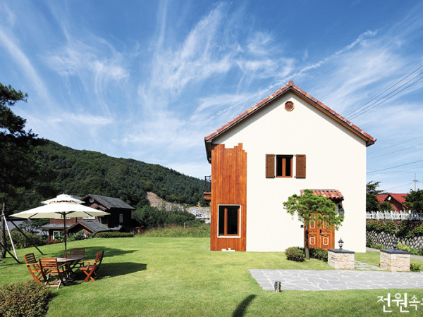 발코니 창을 열어 몸을 내밀면 앞집 마당은 내 집 정원이 된다. 창이 만들어낸 프레임으로 그림 같은 풍경을 볼 수 있는 이 집은 양평 시인의 마을이란 이름과 어우러져 그 특별함이 배가된다. 취재 정사은 사진 변종석▲ 붉은 기와와 덧창, 조각 같은 발코니로 외관이 아기자기하다. 남쪽으로 넓게 트인 언덕 위에 지어진 이 집은 마당의 잔디와 어우러져 동화 같은 분위기를 풍기는 2층 목조주택이다. “예전 부모님 집은 강가에 있었어요. 창을 열면 산과 강이 어우러지는 경치가 펼쳐졌죠. 근데 봄여름만 되면 이름 모를 날벌레가 수없이 날아들어오더라고요. 그래서 강을 끼고 있지 않되 그에 버금가는 풍경을 가진 땅을 찾아 꼬박 1년을 돌아다녔어요.”전국의 아름다운 명소란 명소는 모두 찾아다닐 정도로 여행을 즐기는 가족은 전원주택 많기로 유명한 양평, 그중에서도 손꼽히는 명당을 골랐다. ‘시인의 마을’이라는 애칭답게 산등성이와 골짜기마다 시적 풍경이 병풍처럼 펼쳐지는 곳이다. “해질 무렵, 발코니에 나오면 눈에 들어오는 산골짜기 풍경이 일품이에요. 자동차가 S자 곡선을 굽이굽이 내려오는 행렬조차 이곳에서 보면 그림이더라고요.”부모님이 이런 좋은 조건을 안팎으로 누릴 수 있도록 아들 임인환 씨는 건축에 더욱 집중했다. 그는 프랑스를 비롯해, 영국과 독일 등 유럽 여러 나라에서의 오랜 생활로 그곳의 문화, 특히 주거와 전원 문화에서 배어나오는 여유와 넉넉함 그리고 오래된 것을 가꾸며 소중히 여기는 분위기를 보고 배웠다. 그가 가져오고 싶은 것은 외형뿐 아니라 나무와 점토, 석재와 같이 자연 친화적인 재료를 이용해 조각하고 다듬으며 사용하기 편리하게 만든 그곳의 ‘문화’와 ‘정신’이었다.HOUSE PLAN 대지위치 : 경기도 양평군 서종면 수능리대지면적 : 429.75㎡(130평)건물규모 : 2층건축면적 : 66.11㎡(20평)연면적 : 132.33㎡(40평) 1층 66.11㎡(20평), 2층 66.11㎡(20평)주차대수 : 2대 최고높이 : 8m공법 : 기초 - 줄기초, 매트기초 지상 - 경량목구조구조재 : 벽 - SPF 구조목( J grade 등급) 지붕 - Hem-Fir 구조목지붕재 : 테릴 점토기와단열재 : 크나우프 에코배트외벽마감재 : 스터코 플렉스 창호재 : 이태리 알파칸 창호내벽재 : 캐나다산 OSB 합판, 보랄 석고보드 바닥재 : 원목마루설계 및 시공 : 헤렌하우스 건축디자인 010-9585-0308 ▲ 잔디마당과 어우러져 한 폭의 그림같은 풍경을 연출하는 주택▲ 2층은 부부만을 위한 공간으로 방과 욕실, 드레스룸, 세탁실을 완비하고 앤틱 가구를 이용해 고풍스럽게 디자인했다. ▲ 1층 거실에는 단열과 기밀이 좋은 시스템 삼중창호를 시공했다.▲ ‘ㄱ’자 구조의 주방과 식당부. 식탁을 둔 부분은 필요하다면 방으로 변경할 수 있다. 사실 많은 건축주가 어려워하는 부분이 ‘조합(Combination)’이다. 벽지와 바닥재의 컬러 매치부터 가구 간 조화, 조명의 크기와 조도, 방문의 종류와 색깔 등 집짓기 현장에는 피해갈 수 없는 고민들이 가득하다. 이 집에서는 건축주의 감각이 빚어낸 조화와 균형을 곳곳에서 발견할 수 있다. 그는 규모에 욕심을 버려 면적을 줄였고, 기능을 분리해 1층은 거실과 주방이 있는 공용공간, 2층은 부부만을 위한 스위트룸으로 디자인했다. 1층은 아파트의 편리함을 담은 공용공간이다. 거실은 남쪽으로 창을 내되 마당과 소통하며 가족의 이야기를 잘 담을 수 있도록 코너창을 냈다. 창호는 에너지 효율이 높은 PVC프레임 3중창을 썼는데, 안팎으로 나무결 무늬가 새겨진 디자인이 집의 분위기와 잘 어우러진다. 은은한 옐로우 톤 벽지와 산뜻한 조명, 우아하지만 과하지 않은 샹들리에까지 모든 가구와 소품은 건축주가 발품을 팔아 수도권 전역을 돌아다니며 직접 고른 것들이다. ▲ 가구와 바닥재 모두 최고급 앤틱과 원목을 사용했으며 조명과 커튼도 건축주가 오랜기간 발품을 팔아 고른 것들로 꾸며졌다. 2층은 대개 1층의 분위기가 그대로 이어지리라 예상하지만, 이 집은 계단에 발을 디디는 순간부터 반전이 시작된다. 130년 역사를 지닌 미국의 LJ Smith社 제품으로 시공한 계단부터 격이 다르다. 2층은 따뜻한 분위기의 벽지와 몰딩으로 스위트룸 같은 분위기로 연출했다. 방과 욕실, 발코니 각 공간은 우아하게 마감된 복도로 연결되고, 각 공간의 마감재와 조명, 단차를 달리해 공간을 넘나드는 즐거움을 더한다. 곳곳에 설치된 디자인 조명과 앤틱 손잡이는 집의 완성도를 한껏 끌어올린다. 발코니 디테일과 단조도 도안을 직접 찾아내 주문제작한 것이고, 가구 또한 이탈리아에서 공수한 앤틱이다.인테리어만 그런 것이 아니라, 공사 전 과정에서 건축주의 꼼꼼함은 두각을 드러냈다. 블로그 ‘동화독일(http://blog.naver.com/potcover)’의 작가로도 활동하며 주거 전반에 대해 짬짬이 학습한 것들이 온전히 그의 자산이 되었다. 목조주택 디자인에서부터 단열과 방수처리, 공기층 등 목조주택의 성능에 관한 사항들을 놓치지 않았고, 이는 현장 빌더들에게 칭찬을 들을 정도였다. 아니나 다를까 미끄러질까 염려되는 곳은 까슬까슬한 화강석이 시공되어 있고, 목재와 석재가 닿는 부분에 연석을 두는 꼼꼼함도 보인다. 물이 닿는 