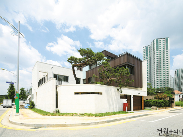 주택들이 촘촘히 들어선 택지지구에서 담장은 빼놓을 수 없는 중요한 건축 요소이자, 주택의 완성도를 결정짓는 마지막 한 수다. 거주자의 프라이버시를 지켜주면서, 지나는 이들에게는 흥미를 유발하는 원동력이 되는 담장. 그로 인해 행복으로 가득 채워지고 있는 주택을 만났다. 취재 임수진 사진 변종석 ▲ 대지가 단지의 초입, 코너에 위치한 탓에 담장을 세워 프라이버시를 보호하는 동시에 마당의 활용도를 극대화 하였다. ▲ 측면에서 바라본 모습. 직선이 강조된 건물의 매스가 돋보인다. ▲ 건물 내 모든 공간의 한 면은 마당을 향해 열려 있다. 주차장 역시 안마당과 뒷마당, 도로를 향해 오픈되는 구조다. 인천 한화지구의 단지 초입, 라임스톤과 금속패널로 깔끔하게 마감된 ㄱ자 집이 들어섰다. 이 집의 이름은 ‘총명한 지혜와 두터운 인망으로 이곳에서의 삶이 행복이어라’는 의미의 ‘세봉’. 대지를 따라 앞마당을 둘러싼 아이보리 톤의 담장이 주택의 견고함을 한층 강조한다. 많은 이들이 오고가는 길목에 자리한 만큼 프라이버시 보호에 대한 답을 찾는 것이 건축가에게는 중요한 숙제였다. 지나치게 오픈된 공간이 야기하는 생활의 불편함에 대한 고민과, 적절한 닫힘과 열림이 조화를 이루도록 해법을 제시해야 했다. 또한 마당에 대한 건축주의 높은 기대치도 염두에 두어야 했다. 가족이 함께 공유하고 즐길 수 있는 지극히 사적인 공간으로서, 타인의 시선을 신경 쓰지 않고 거리낌 없이 생활할 수 있는 마당을 바랐기 때문이다. 결국, 단순히 건물의 이미지보다는 ‘마당을 어떻게 계획할 것인가’가 초기 설계의 가장 중요한 방향이 되었다. HOUSE PLAN 대지위치 : 인천시 남동구 대지면적 : 343.10㎡(103.78평) 건물규모 : 지상 3층 건축면적 : 162.88㎡(49.27평) 연면적 : 289.50㎡(87.57평) 건폐율 : 47.47% 용적률 : 84.37% 주차대수 : 2대 최고높이 : 10.22m 공법 : RC조 구조재 : 철근콘크리트 지붕재 : 금속패널 단열재 : 가등급 비드법 보온판 외벽마감재 : 라임스톤, 금속패널 창호재 : 이건시스템창호 설계 : 유한건축 유하우스 1544-9801 www.u-haus.co.kr 하얀 라임스톤의 매스로부터 길게 이어진 담벼락을 따라가다 보면 선명하게 눈길을 끄는 대문. 문을 열고 안으로 들어서면 제일 처음 가벽을 만나게 되는데, 진입과 동시에 직접적으로 마주하는 장면을 한번 걸러주는 동시에 그림 등을 걸 수 있는 아트월의 역할도 담당한다. 둘러쳐진 담장은 편평한 잔디밭에 멋들어진 수형의 소나무로 수놓아진 마당을 온전히 품고 있다. 아래층의 거실과 주방, 식당을 비롯해 2층에 위치한 각 침실이 모두 마당을 향한다. 이로써 내부의 모든 행위와 움직임은 마당과 연결되어 일어나게 된다. 거실 앞쪽으로는 널찍한 데크를 마련하여 실용적인 휴게공간으로도 활용하고 있다. ◀ 대문에서 바라본 마당. 디딤석을 따라 현관으로 다가가면 아름드리 소나무 두 그루가 그늘을 드리운다. ▶거실 앞 데크에는 야외용 소파 테이블을 두었다. ▲ 거실에서도 마당이 훤히 내다보여 시선의 머무는 범위가 일반 주택들보다 훨씬 넓다. 담장은 구획의 의미인 동시에 확장의 가능성을 제공한다. PLAN – 1F / PLAN – 2F ▲ 주방과 거실 간 통로는 필요에 따라 투명 통유리창으로 구획하여 전체적인 소통의 의미를 이어간다. ◀ 3층으로 연결되는 계단실은 천장을 기하학적으로 디자인하여 전체적인 인테리어의 완성도를 높였다. ▶ 2층 자녀방으로 연결되는 통로에는 벽을 가득 메운 책장을 짜넣었다. 실내에서 바라보는 구획된 마당공간은 예상과 달리 내부에서의 시야를 더욱 확장시키는 결과를 가져온다. 흔히 외부 시선으로부터 자유롭지 못해 창마다 블라인드를 내린 다른 집들과 달리, 이 집 거실과 주방의 전면창은 아무런 제약 없이 벽면을 꽉 채우는 스케일을 자랑한다. 기대 이상의 넉넉함과 안정감은 모두 높은 담장 덕분이다. 실내는 안주인의 감각이 빛을 발한다. 공용공간은 외부의 라임스톤 컬러와 베이스 톤을 맞추고 고전미가 물씬 풍기는 미술작품들과 모던한 가구들로 연출했다. 각 공간이 모두 연결되어 있지만 통유리문으로 구획을 나눈 것 또한 눈여겨 볼 만하다. 2층은 자녀들을 위한 공간과 복도 등 세심하게 신경 쓴 부분들이 엿보인다. 가족실을 비롯한 모든 방향에서 마당이 내려다보이는 것은 물론이고, 마루 바닥재를 사용해 안정감을 더했다. 3층에 마련된 스파룸은 가족들이 가장 사랑하는 공간이다. 건물의 사선제한을 최대한 활용해 계절에 무관하게 온가족이 모여 즐길 수 있는 또 하나의 소통공간을 완성하였다. ◀ 1층에 마련된 손님방. 안주인의 미적 감각이 돋보인다. ▶ 3층에 자리한 가족 스파룸은 세봉만의 색다른 공간이다. SECTION ▲ 2층 가족실. 마당으로 향하는 코너창은 물론, 자칫 어두워질 수 있는 복도 끝에 유리문을 내어 채광을 확보하였다. INTERIOR SOURCES 내벽 마감 : 천연페인트 바닥재 : 구정마루, 복합대리석(델리카토) 욕실 및 주방 타일 : 수입타일 주방 가구 : 리첸 계단재 : 자작나무 포인트 수전 등 욕실기기 : 아메리칸스탠다드 단독주택과 아파트의 가장 큰 차이점 중 하나가 바로 ‘마당’이다. 계절마