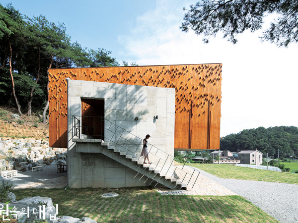 주택에서 올려다 본 하늘은 빛과 어우러져 시시각각 다른 모습으로 비친다. 이곳의 당호는 둥근 하늘이 있는 집이란 뜻의 건원재. 그동안 머릿속에서만 키워온 로망을 실현시켜준 집이다.취재 김연정 사진 변종석▲ 필로티 구조를 통해 1층은 건축주를 위한 장소로, 2층은 주거공간으로 계획하였다.▲ 집의 배경이 되는 소나무의 모습을 형상화한 외관이 멋스럽다.작년 이맘때쯤 전화 한 통이 걸려왔다. 집을 짓고 싶어 연락했다는 중년의 남성이었다. 길지 않은 통화였지만, 수화기 너머 목소리를 통해 집에 대한 열망과 집을 짓고자 하는 열정을 고스란히 느낄 수 있었다. 이후로도 몇 차례 통화는 계속 되었고, 그의 취향에 맞을 법한 건축가를 소개시켜준 후 기자의 임무는 끝이 났다.그렇게 1여년이 지난여름의 끝자락, 건축가로부터 반가운 메일을 받았다. “덕분에 시작한 작업이 준공되었습니다. 당호는 건원재입니다. 동그란 하늘이 있는 집. 구경하세요.”서울에서 차로 두 시간 남짓. 설레는 마음을 안고 충남 공주의 조용한 시골마을에 도착했다. 소나무 숲을 배경으로 앞에는 논밭이 펼쳐진 대지 위, 멀리서도 눈에 띄는 건원재가 자리하고 있었다. ▲ 1층에 세워둔 건축주의 빈티지한 클래식 자동차 / 소나무 숲과 어우러진 주택의 정면 11년 전부터 본지를 정기구독하며 집짓기에 대한 로망을 키워왔다는 건축주는 ‘매일 매일이 새로운 집’이라고 이곳을 소개했다. 그도 그럴 것이 아침에 눈을 떠서 잠자리에 들기까지, 빛에 따라 제각각 다른 모습을 보이는 공간들이 매일 함께 하기 때문이다.“책을 보다 마음에 드는 곳이 있으면 직접 찾아가보는 수고도 마다하지 않았죠. 그중 한 집이 바로 ‘문추헌(본지 2013년 8월호 게재)’이었어요. 이 집을 설계한 건축가가 내 집을 지어준다면, 오랜 꿈을 향해 또 한걸음 다가갈 수 있을 것 같았습니다.”그렇게 그의 바람을 함께 해줄 건축가와의 만남이 이루어졌다. 그리고 얼마 지나지 않아 집짓기는 시작되었다. 건축가가 처음 본, 집이 들어설 대지는 이미 배경의 소나무를 베어내고 경사면은 절성토하여 평지로 조성한 후였다. 대지조건이 명확했기 때문에 설계 또한 어렵지 않게 진행할 수 있었다. ▲ 현관 앞에도 작은 벤치를 두어 자연경관을 감상할 수 있다.▲ 자작나무로 마감한 거실. 큰 창을 통해 풍부한 채광이 들어온다.◀ 거실과 방을 연결하는 현관 내부 ▶ 중정이 바라다 보이는 긴 복도를 사이에 두고 만나게 되는 안방▲ 건축주의 요구사항이기도 했던 다락 공간은 아늑함이 느껴진다.건축가는 작고 오래된 빈티지 자동차에 관심 많은 건축주를 위해 1층 외부공간은 자동차 전시공간이자 그의 취미공간으로 배려하였다. 또한 정해진 예산 내에서 최대한의 효과를 내기 위해 외장재 선택에서부터 시공까지 꼼꼼하게 관여했고, 내부 역시 심플하지만 세심하게 설계했다. 이곳에서 가장 중심이 되는 공간은 바로 중정. 건축가는 건축주 부부를 위해 누구도 갖지 않은 그들만의 ‘하늘’을 선물했다. 동그란 하늘은 거실의 유리창과 중정 바닥의 물에 반사되어 매 순간 다른 모습을 연출하며 집을 완성한다. 입주한 지 3개월째, 남편의 꿈으로 시작된 집짓기가 이제 아내와 함께 또 다른 꿈을 꾸며 살아갈 첫걸음이 되었다. 하루하루 이곳에서 삶이 부부에게는 바로 행복의 시작이다.HOUSE PLAN 대지위치 : 충남 공주시 대지면적 : 1,345㎡(406.86평)건물규모 : 지상 2층건축면적 : 128.45㎡(38.85평)연면적 : 152.80㎡(46.22평)건폐율 : 9.55%용적률 : 11.36%주차대수 : 4대공법 : 기초 - 매트 지상 - 콘크리트라멘 + 경량목구조구조재 : 철근콘크리트지붕재 : 아스팔트싱글외벽마감재 : 루나우드 위 오일스테일내벽마감재 : 자작나무합판, 석고보드 위 실크벽지바닥재 : 강마루설계팀 : 홍성오, 이혜원, 김신혜, 박여진, 김정원시공 : 서진주택건설설계 : 서현(한양대학교) 02-2220-0301 http://saltworkshop.net▲ 안방은 주방을 오가는 아내의 동선을 배려하여 배치되었다.▲ 이 집의 가장 주된 공간인 중정. 시시각각 변하는 자연의 모습을 볼 수 있다.INTERVIEW / 건축가 서현(한양대학교 건축학부 교수)설계의 시작은?작년에 준공한 문추헌을 직접 방문한 건축주가 건물이 마음에 든다며 의뢰를 해온 주택이다. 이미 대지는 절성토가 마무리된 땅이어서 대지조건은 명료했다. 대개의 전원주택은 주택과 함께 창고와 차고가 함께 배치되어야 한다는 점이 처음부터 고려되었다. 그래서 주택, 창고, 차고가 수직으로 쌓인 공간 조직이 마련되었다. 건축주의 요구사항을 어떻게 풀어냈는가?건축주는 아주 작은 차를 4대 갖고 있다. 직접 요구된 사항은 아니지만 중요하게 고려해야 할 변수였다. 이 차들을 차고에 보관하는 것이 아니고 전시된 모습이어야 한다는 것이 설계의 착안점이었다. 다락이 있되 집은 작았으면 좋겠다는 것 외에 특별한 요구사항은 없었다. 그래서 함께 앉아서 이야기를 나누며 건축주를 알아가는 시간이 좀 필요했다. 시공까지의 과정이 궁금하다건축주가 설계에 만족했으므로 별 어려움이 없이 작업이 진행될 수 있었다. 특히 2층 중정에 빛이 들어오는 상태와 바닥에 고려한 