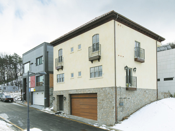 붉은 기와의 경사지붕, 그리고 큼직한 격자무늬 창문이 있는 집은 많은 이들이 어릴 적부터 보아 왔던 동화 속 이상향의 집이다. 취재 이세정 사진 변종석 ▲ 앤틱한 느낌의 고급스러운 풍모를 보이는 주택이 외관이탤리언네이트 건축(Italianate architecture), 네오클래식하우스(Neo-classic house) 등은 미국의 고급 싱글하우스 단지나 교외 저택들이 내세우는 디자인 콘셉트다. 붉은 색 점토기와와 밝은 스타코를 기본으로, 가파르게 경사진 지붕과 러프한 마감을 특징으로 꼽는다. 여기에 최상의 건축 자재와 꼼꼼한 디테일 처리로 건축 장인의 솜씨를 드러낸 연출들로 주목 받는다. 판교주택은 이러한 미국식 지중해풍 주택을 모티브로 입지 상황을 고려해 설계되었다. 경사진 대지 덕분에 현관과 주차장은 북측 도로와 면하고, 2층 거실은 남향의 외부 데크로 바로 이어진다. 진입부는 높은 키의 자연석 마감과 아치형 목재 문으로 보는 이를 압도하는데, 솜씨 좋은 석공이 약 50일을 꼬박 매달린 결과라는 후문이다. 앤틱한 외부 벽등은 무척이나 큰 사이즈지만, 진입부 분위기와 자연스럽게 어울리며 시선을 사로잡는다. ▲ 최근 미국에서 가장 인기 있는 주거 양식은 빅토리아 시대의 지중해풍 주택이다. 스패니쉬 기와에 외장은 스타코, 포치와 창호 몰딩으로 이루어진 이탈리아 건축 스타일에 심플하고 간결한 직선들을 조합해 웅장한 멋을 낸 주택들이 고급주택으로 여겨지고 있다. ▲ 2층 주방과 다이닝룸. 채광 좋은 창과 파티오 도어로 개방감이 좋다. ▲ 건축주의 취미 생활을 위한 음악감상실. 지하지만 층고가 높아 답답함이 없고 환하다. 1층은 현관을 제외한 대부분의 면적을 주차장으로 활용하고 있다. 자동차에 특별한 애정을 가진 건축주의 라이프스타일을 적극 반영한 결과다. 현관에서 이어지는 지하부는 건축주의 여가를 위한 음악실과 운동실로 구성되었다. 음악을 감상하는 공간은 이웃들에게 피해가 가지 않도록 방음에 특별히 신경쓰고, 썬큰 공간을 곁에 두어 채광은 물론 환기와 습기 제어 등에도 용이하도록 했다. 2층은 건축주 부부의 주생활 공간이다. 거실과 주방이 자연스럽게 열린 구조로, 모던과 클래식을 조화롭게 연출한 인테리어를 선보인다. 특히 주방 겸 다이닝룸은 개수대 앞 창호와 테이블 옆 파티오도어로 개방감이 뛰어나다. 마스터침실은 비슷한 면적의 욕실과 드레스룸을 곁에 두어 편의성을 높였다. 3층은 자녀 세대를 위한 공간으로 젊은 감각이 더욱 돋보이는 연출이다. 화이트를 기본으로 한 모던한 바탕에 클래식한 주방 기기, 내부 조명을 설치해 보기 드문 실내를 이루었다. 각 방과 드레스룸, 욕실 공간은 최대한 일체형 수납 공간을 만들어 데드스페이스가 거의 없다. 층마다 틀에 얽매이지 않는 자유로운 스타일을 가감 없이 보여준 인테리어로 총평할 수 있다. ▲ 넓은 현관부에는 각 층으로 향하는 원목 계단이 바로 마주한다. ▲ 2층 거실은 사비석으로 마감된 테라스로 이어지는 전면창을 두었다. ◀ 특별한 사이즈로 주문 제작된 침대는 매트리스 2개를 붙여 숙면을 돕는다. ▶ 침실에 딸린 드레스룸과 욕실 HOUSE PLAN 대지위치 : 경기도 성남시 분당구 판교동 대지면적 : 231㎡(70평) 건물규모 : 지상 3층 연면적 : 326.7㎡(99평) 주차대수 : 3대 최고높이 : 10m 공법 : 기초 – 콘크리트, 지상 – 스틸하우스 구조재 : 스틸 아연도 강판 지붕재 : 테릴 기와 단열재 : 인슐레이션(미국) 외벽마감재 : 스터코플렉스 창호재 : 앤더슨 창호(미국) 설계 및 시공 : 네이처스페이스 010-7922-5209 ◀ 세대 간 프라이버시 보호를 위해 홀 입구에 문을 설치했다. ▶ 계단실은 사람의 동선에 따라 벽면 하부 자동 조명등이 작동한다. ◀ 자녀 세대의 주방 전경. 클래식한 원목 주방에 독특한 조명이 눈길을 끈다. INTERIOR SOURCES 내벽 마감(페인팅) : 천연페인트, 천연벽지 바닥재 : 수입 원목 마루 욕실 및 주방 타일 : 수입산 수전 등 욕실기기 : 수입산 주방 가구 : 이태리 쿡탑 및 냉장고 : 젠에어 조명 : 미국산 계단재 : 미국산 현관문 및 방문 : 미국원목 데크재 : 사비석 잔다듬 ▲ 강렬한 원색의 패브릭과 서까래 장식이 감각적인 조화를 이루는 3층 거실 ▲ 친환경 소재로 구성된 자녀방집에 적용된 대부분의 자재는 미국에서 직수입했다. 계단실을 만드는 계단판, 오일스테인, 기둥 각주 등은 모두 미국산 원목을 사용했고, 내부에 들어가는 단열재와 창호 등도 미국에서 각 분야에서 공식 인증받은 제품을 적용했다. 특히 창호는 ‘Anderson’ 브랜드로 아르곤 가스와 Low-E 코팅유리로 제작된 에너지 효율이 높은 제품들이다. 성능뿐 아니라 디자인과 하드웨어의 디테일 면에서 모든 부분 건축주를 충족시켰다. 내부 마감을 위한 페인트와 석고보드, 벽지까지 모두 친환경 제품으로 시공했고, 몰딩 하나하나까지 원목으로 직접 제작해 유해 요소가 전무하다. 대지 특성에 어울리는 절제된 외관과 친환경 자재의 조합은 지중해풍 주택의 차별화된 스타일로 판교의 많은 주택들 사이에서 동경의 대상이 되고 있다. ※ 월간 <전원속의 내집> www.uujj.co.kr 본 콘텐츠의 저작권은 (주)주택문화사에 있으며, 이를 무단 이용하