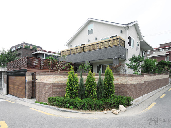 한 대지에 두 세대가 함께 사는 듀플렉스 하우스(Duplex house). 건축가 조성욱 씨와 친구 김재윤 씨의 판교 단독주택 ‘무이동’의 기본 컨셉도 바로 여기서부터 출발한다. 집짓고 살 생각이 전혀 없었던 건축가 조성욱 씨가 집을 짓게 된 것은 땅콩집을 방문하고 듀플렉스 하우스의 고질적인 문제들을 자신만의 건축적 해법으로 풀어갈 수 있으리라 확신한 후였다. 그렇게 해서 지어진 하나의 박스형 메스에 나란한 두 채의 건물이 닮은 듯 다른 듯 서있다. 마치 쌍둥이처럼 친구와의 땅 나눔이 기꺼운 듯, 그만의 세심한 설계로 공간 구석구석 적당한 가까움과 거리 두기의 요소들이 읽히고 또 읽힌다.취재 정사은 사진 변종석▲ 북측의 주출입구는 두 개 박스의 조합이다. 외관은 자정 작용을 가진외단열재 퀵믹스로 마감했다.- 건축가의 말 -사람은 집을 만들고, 집은 사람을 만든다고 한다. 건축가는 집을 만듦으로서 그 역할을 다하는 것이 아니라, 만들어 놓은 집이 다시 그 안에 거주하는 사람을 만들어 줄 수 있도록 삶의 바탕이 되는 그런 건축을 만들어 주어야 한다. 건축가가 ‘사람 = 대지 = 건축’이라는 삼위일체적 신념을 가진다면, 아름다운 건축, 아름다운 마을, 아름다운 도시는 남의 나라 이야기가 아닐 것이다.건축가의 향연이 펼쳐지는 이곳 판교의 단독주택 용지. 조성욱•김재윤 씨의 무이동(無二同) 주택은 그 한복판에 자리하고 있다. 대지 마련부터 건축 설계, 그리고 시공까지 모든 과정을 함께 한 두 사람이 반가운 얼굴로 손님을 맞는다. 서로에 대한 신뢰가 빚어 낸 세상에 단 하나뿐인 ‘맞춤형 집’에 대한 이야기가 시작된다.▲ 서쪽 조성욱 씨의 집에는 대나무가, 동쪽 김재윤 씨의 집에는 단풍나무가 식재되어 있다. 같은 듯 다른 공간은 이런 점에서 드러난다.집짓기, 그 여정의 시작미리 말해두자면, 모든 일은 건축가 조성욱 씨의 친구인 김재윤 씨로부터 시작됐다. 큰딸이 초등학교 4학년이 되기 전에‘내 집’을 짓고 싶어 했던 그는 고등학교 동창인 조성욱 씨에게 적절한 설계자나 시공회사를 소개받을 요량이었다. 그러나 막상 조성욱 씨는‘나도 같이 짓자’며 집짓기에 선뜻 동참했다.도시에서 나고 자란 아스팔트 키즈는 이해할 수 없을 지 모르지만, 어른들에게 흙과 자연에 대한 갈망은 항상 가슴 한켠을 차지하고 있다.‘아이들을 위해서 집을 짓는다’는 연유를 당사자인 아이들이 이해할 리 만무하지만, 더 이상 펜스가 둘러진 아파트 놀이터가 아닌, 내집 마당에서 뛰어노는 환경의 변화는 아이들의 인성과 자아 형성에 지대한 영향을 미침을 어른들은 잘 알고 있다.미션 _ 부족한 면적을 확보하라!함께 집을 짓기로 결정한 후 듀플렉스 타입으로 확정하기까지 치밀한 조사를 거쳤다. 두 사람 모두 서울을 기반으로 생활했기에 멀지 않은 판교의 단독주택지로 땅을 결정하는 것까지는 문제가 없었다. 하지만 넓지 않은 231㎡의 대지에 나란히 두 집을 올리려니 평면부터 수직 동선 설계와 시공과정까지, 쉬운 것은 단 하나도 없었다.▲ 옥상정원에는 잔디와 흙 사이 한 층, 그리고 골조면이 닿는 한 층의 두 층으로 방수층을 주어 물 빠짐에 신경 썼다. - 공용 계단실과 옥상정원의 이유 있는 변신 -옥상으로 향하는 계단부는 영화를 보거나 빨래를 너는 용도이며, 옥상정원은 바비큐 파티와 겨울날 눈썰매를 타는 데 활용될 공간이다. 다양하게 이용될 수 있도록 수목 식재 보다는 넓은 잔디와 데크 위주로 계획했다. 아파트에서는 누릴 수 없는 호사다. 가족사진을 찍자 하니 무이동 식구들이 총출동했다. 마실 온 옆집 식구들까지 한 자리에 모였다. 조성욱 씨의 건축가로서의 능력은 이러한 상황에서 빛을 발했다. 건축가는 제한된 조건 하에서 고수할 것과 버려야 할 것을 결정하고, 비용의 문제를 건축주와 논의하는 과정을 거쳐 설계를 완성한다. 이 집에서 건축가 조성욱 씨가 해결해야 할 가장 큰 문제는 면적의 확보였다. 두 집 모두 두 명의 자녀가 있고, 더구나 친구인 김재윤 씨는 어머님과 함께 2세대가 거주하길 원했다. 그러자면 각자 최소한 80~100㎡의 면적이 필요했다. 건축가가 내놓은 해결책은 지하실을 조성해 부족한 실내 공간을 확보하고, 두 가정이 언제든 사용할 수 있는 여분의 공용 공간을 내외부에 마련하는 것이었다. 또, 한창 뛰어 놀 나이의 자녀들을 위해 옥상에 또 하나의 프라이빗 정원을 만드는 방안을 제시했다. 온 가족의 토론 끝에 비용과 노력을 들여 이 공간을 마련해야 할 당위성이 확보되었고, 이로써 규모의 문제는 해결점을 찾았다. 이렇게 지어진 집은 지하실을 포함해 각 103㎡의 연면적을 갖는다. 약간의 차이로 국민주택 규모를 넘지만, 각종 세제 혜택의 문제와 면적의 확보를 두고 비교했을 때, 더 중요한 것을 얻었기에 양쪽 건축주 모두 크게 유념치 않았다. 지피지기(知彼知己)면 백전백승(百戰百勝)이라 했던가? 자신에게 필요한 것과 버려야 할 것이 무엇인지 아는 지혜가 이러한 중대 결정을 가능하게 했다. ◀ 양쪽 집에서 접근할 수 있는 이 공간은 스크린을 설치해 두 가족의 전용 영화관으로 활용될 계획 ▶ 흐린 날 빨래를 널거나 편히 
