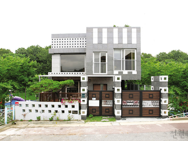 건축주는 오래전부터 전원주택을 짓고 사는 꿈을 꾸었다. 어머니가 농사를 짓던 토지를 미리 터로 준비하고 이것저것 공부하면서 작업할 업체를 찾던 중 ‘꿈꾸는목수’를 알게 되었다. 친환경적이며 단열에도 유리한 목조주택을 지으려던 생각이 처음부터 강해서 그 방면에 노하우와 꼼꼼함을 인정받은 작업자가 필요했다. 취재 편집부▲ 화초 가꾸기가 취미인 건축주를 위해 별도의 공간을 마련하였다. 맞벌이 부부에 아들 둘로 된 가족 구성원을 위한 공간은 넓은 거실과 주방, 별도의 2층 거실이었다. 그리고 흔하지 않은 집, 그림처럼 아름다운 집을 바랐다. 이 집의 자랑은 무엇보다 조망권이 좋다는 점이다. 대지 뒤쪽으로는 산이 있어 새들이 지저귀고, 따뜻한 햇살이 늘 비춰준다. 오후의 테라스에 앉아 차를 마시면 인적 없는 별장에서 휴식을 취한다는 느낌이 한껏 들 정도이다. 처음 설계를 진행할 때 중점을 둔 부분은 동선 확보였다. 건축주 가족의 라이프스타일을 최대한 맞추기 위해 수차례 미팅을 거쳤고, 각 공간의 동선이 자연스럽게 이어지도록 설계되었다. 넉 달에 걸친 논의 끝에 이 집을 완성하게 되었다. 전체적인 디자인은 기본적인 구조에 팔각으로 포인트 공간을 계획하여 외관에 안정감을 주는 동시에 2층공간의 효율성을 높였다. 건물의 외부는 자연을 사랑하고 화초 가꾸기가 취미인 건축주를 위해 실용적이고 견고한 데크를 계획하였다. 또한 내·외부 건축 자재와 마감재 하나까지 건축주가 꼼꼼하게 직접 고른 것이 특징이다. ◀ 8각으로 된 매스는 이 건물의 포인트가 된다. ▶ 전면으로 널찍한 데크를 둘렀다. ▲ 화려하게 꾸며진 주방 및 계단실 ▲ 벽난로와 인조석으로 치장한 거실.전면의 큰 창으로 충분한 채광이 이루어진다. ◀ 정원은 물론 집안 곳곳에 화초들이 가득하다.▶ 각 공간을 꾸민 내부 마감재 하나까지도 모두 건축주가 선택한 것들이다. ▲ 2층 가족실. 8각으로 꾸민 독특한 공간이다. HOUSE PLAN대지위치 : 전남 고흥군 대지면적 : 348㎡ 건물규모 : 지상 2층 건축면적 : 80.4㎡ 연면적 : 106.1㎡ 건폐율 : 23.10% 용적률 : 30.49% 공법 : 기초 - 매트기초, 지상 - 경량목구조 구조재 : S.P.F 경량목재 창호재 : PVC(융기) 단열재 : 화이바그라스(이소바) 외부마감재 : 이중그림자 싱글 30년산, 시멘트사이딩, 인조석 내부마감재 : 벽지, 인조석, 루버 설계·시공 : 꿈꾸는목수 1599-1723 www.woodenhouse.kr※ 월간 <전원속의 내집> www.uujj.co.kr 본 콘텐츠의 저작권은 (주)주택문화사에 있으며, 이를 무단 이용하는 경우 저작권법 등에 따라 법적책임을 질 수 있습니다.
