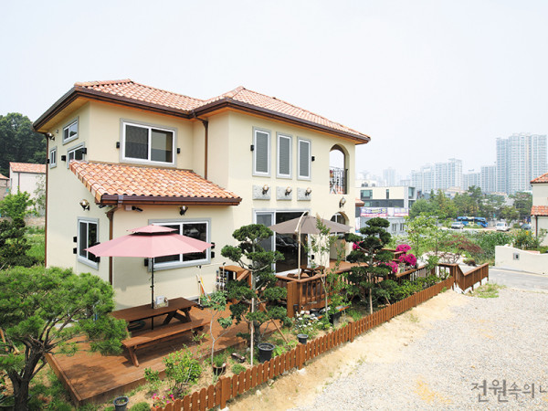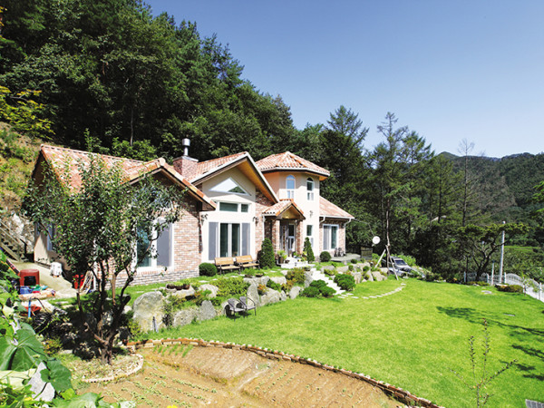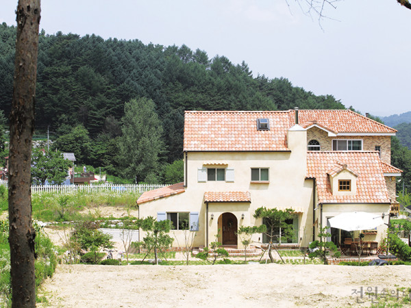 건축과 입주로 한창 부산한 강원도 원주 서곡리 전원마을에 프렌치 스타일의 목조주택 한 채가 지어졌다. 고벽돌과 점토기와, 앙증맞은 격자무늬 창호가 이국미를 더하는 주택의 실체를 찾아 안으로 발걸음을 옮겼다. 취재 전선하 사진 변종석 취재협조 베른하우스 정리정돈이 잘 된 집은 안주인의 인테리어 센스에서 또 한번 시선이 매료된다. 몸살까지 겪어가며 투혼 아닌 투혼을 벌여온 안주인 라숙경 씨는 취재팀이 도착한 후로도 이리저리 연신 분주하다. 전원생활을 하기에 꽤 이른 나이인 30대 초반의 부부가 한 치의 고민 없이 전원행을 택한 건, 바로 아이들 때문이었다. “딸아이, 아들 녀석이한창 뛰어 놀 나이에 아파트 12층에서 사는 게 만만치 않은 일이더라고요. 매번 노심초사하고 아이들 단속하기에 바빴죠. 그러다보니 아이들이 너무 안됐더라고요. 우리 부부 모두 시골을 좋아해 언젠가 전원생활을 하리라 생각해 왔었는데 아이들로 인해 그 계획이 좀 더 빨라졌어요.” 농사지으며 살 생각이 아니었기 때문에 귀촌인들로 형성된 전원주택 단지를 물색해오다 원주에서 물 맑고 공기 좋기로 소문난 백운산 용수골 서곡리의 전원마을을 보고선 결정을 내렸다. 한적하면서도 시내에서 얼마 떨어지지 않은 입지 조건이 무엇보다 마음에 들었다. 지난 4월을 시작으로 약 4개월간의 공정을 거친 후, 부부의 첫 전원주택 입성이 이뤄졌다. ◀ 다락방이 위치한 지붕 위로 뻐꾸기 창을 내어 아이들의 상상력을 자극한다. ▶ 주택 외벽에는 프렌치 느낌을 더하는 아담한 목재창호들이 곳곳에 자리한다. ◀ 데크는 외부 하단에 쓰인 고벽돌을 데크재로 사용해 통일감을 주었고, 주방과의 동선을 고려해 시공되었다. ▶ 아치형으로 디자인된 출입구는 프로방스 느낌이 물씬 풍긴다.▲ 거실의 모습. 벽난로부터 샹들리에, 의자, 앤틱 시계까지 안주인의 발품의 흔적이 곳곳에 묻어난다. 본토 디자인과 자재로 승부를 걸다프로방스 풍의 이국적인 집을 좋아해 주택 잡지를 보며 사례를 찾던 부부는 남프랑스의 건축디자인과 실내가구 모두를 핸드메이드로 제작하는 전문회사 베른하우스를 찾았다. 디자인을 담당한 이광열 건축가는 “아이들을 생각해 전원행을 택한 젊은 부부는 그 마음만큼이나 아기자기하고 사랑스런 주택 스타일을 원했다”며, “유럽의 목가적인 주택 스타일을 구현해 온 우리 기술력과 원하는 구조와 스타일을 확실히 설정해 전달한 건축주의 의견이 조화를 이뤄 즐겁게 작업한 사례였다”고 시공담을 전했다. 경량목구조로 이뤄진 주택은 점토기와를 얹은 삼각 지붕과 스터코로 외벽을 마감해 프랑스 농가주택을 그대로 재현했고, 여기에 붓으로 하나하나 음영을 넣는 그레이징 기법을 적용해 보다 은은한 외관미를 연출했다. 또한 일반적인 목재데크가 아닌 고벽돌을 바닥에 시공해, 담장과 조화를 이루는 빈티지한 감각까지 살렸다. 특히 주택 곳곳에 배치된 창호의 덧문과 몰딩은 적삼목과 오크목 등 자연소재로 제작된 핸드메이드 제품이다. 정원은 조경업을 하는 남편 이현상 씨가 직접 디자인한 것으로 관리가 어렵지 않도록 최소의 수목과 잔디를 활용한 것이 특징이다. 또한, 데크 한켠에 마련된 미완성 공간은 아이들의 상상력을 키워줄 놀이터로 주택의 모습을 똑같이 옮긴 미니하우스가 들어설 예정이다. ▲ 5m에 이르는 높은 층고를 둔 주방은 마치 카페에 온 듯한 느낌을 준다. 특히, 안주인은 어린 아이들을 생각해 싱크대 구조를 거실 쪽으로 둘 것을 주문했다. ◀ 거실 한 켠을 분리해 시네마룸을 만들었다. ▶ 이태원에서 직접 사온 프로방스 그릇장과 빈티지 의자로 주방에 포인트를 주었다. ▲ 햇살 가득한 침실은 부부가 나란히 작업도 할 수 있는 공간으로 만들었다. ◀ 딸아이 방은 파스텔 톤의 페인트로 화사하게 꾸며주었다.■ 욕실에 나란히 배치된 세면대가 위트 있다. ▶ 깔끔한 2층 복도실은 핸드메이드 목재 선반을 두어 아기자기한 느낌을 더했다. 가족의 라이프 스타일에 집중하다 내부는 주택 외관에서 풍겼던 프로방스 느낌이 더욱 빛을 발하는데, 층고를 높인 주방과 아담한 벽난로, 안주인이 직접 발품 팔아 수집한 아기자기한 인테리어 소품들이 집의 컨셉을 확실히 잡아준다. 여기에 아이들의 동선을 최우선으로 두어야하는 가족의 라이프 스타일을 고려해 내부 구조가 계획되었다. 1층은 현관문을 중심으로 좌측에 부부방과 드레스룸, 부부욕실, 수납공간을 두었고, 우측으로 거실과 시네마룸, 주방, 다용도실을 배치했다. 특히, 거실과 주방에는 가족의 취향이 고스란히 묻어나는데, 거실을 분리형으로 설계해 아담한 시네마룸을 함께 마련했고, 주방은 5m에 이르는 높은 층고와 ‘ㄷ’자형 아일랜드 테이블, 아담한 창호들을 곳곳에 두어 카페에 온 듯 한 느낌이다. 으레 벽면이나 창 쪽에 설치되는 싱크대는 거실을 바라보도록 시공되었는데 이 또한 안주인의 요청에 의한 것이다. “주방 일을 하면서 아이들을 돌볼 수 있고, 가족이나 지인들을 초대했을 때에도 소외되지 않고 대화에 참여할 수 있어요. 또 양면 모두를 쓸 수 있으니 마치 간이 세면대처럼 쓸 수