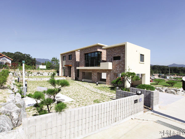 38년간의 직장 생활을 끝내고, 양평으로 귀촌한 건축주 부부. 서울에서 1시간 거리지만, 마을 깊숙이 들어와 앉은 주택 단지는 한가로운 시골풍경을 그대로 간직하고 있다. 집 안팎을 가꾸고, 5일장 다니는 재미에 푹 빠져 사는 이들의 전원생활을 엿본다. 취재 이세정 사진 변종석 ▲ 가로로 길게 이어진 동선 덕분에 전면폭이 21m에 달한다. 단층집이지만 규모 있는 저택같은 인상을 풍긴다.건축주 부부는 퇴직을 앞둔 5년 전, 전원생활을 위한 필지를 미리 마련해 두었다. 서울에서도 주택 생활을 했던 터라 더 넓은 마당을 가꾸고 싶었고, 나중에 자녀들에게 쉼터 역할도 할 수 있는 전원주택을 짓고자 했기 때문이다. 그 꿈을 이뤘다. 설계와 건축을 별 탈 없이 마무리하고 지금은 잔디와 텃밭을 꾸리고 강아지도 키우는, 본격적인 귀촌 생활을 만끽하고 있다. ▲ 정원 외에 앞마당에는 앵두, 매실 등의 유실수를 심고 텃밭도 멋지게 조성했다. ▲ 별채는 데크와 계단으로 이어진 넓은 테라스를 갖는다. 따로 오가는 출입문을 내어 독립성을 꾀했다. ◀ 부부의 침실은 단아한 서까래 장식과 벽지 사용으로 아늑하게 꾸몄다.▶ 벽난로가 있는 거실 풍경. 고라니나 멧돼지 출몰을 대비해 CCTV 모니터가 설치되어 있다. 암반이 많은 대지, 그 위에 지은 단층집 단지는 양평군에 속해 있지만, 강원도와 경계면에 위치해 산세가 좋고 호젓하다. 집터 뒤로 바로 육중한 돌산이 이어져 가끔 고라니나 멧돼지가 출몰할 정도다. 기초공사를 위해 터파기 작업을 하던 중에는 2m 아래 암반을 만나기도 했다. 더 이상 공사가 불가능해 성토를 하는 쪽으로 방향을 잡았다. 암반 높이에 맞춰 주택이 앉을 위치를 잡고 마당은 단차와 경사를 주어 조성했다. 부부가 단층집을 원했기 때문에 대신 계단과 데크를 부각시켜 집을 웅장하게 만들었다. 또한 단층집이라 다소 왜소해 보일 수 있어 동선을 최대한 가로로 배치하고, 외장재는 무게감 있는 재료로 선택했다. 지붕에 기와를 얹고, 외벽은 벽돌과 테라코타를 시공해 아늑하고 고풍스러운 분위기를 살렸다.부부의 주생활 공간과 자녀들을 위한 별채는 횡방향으로 연결되었다. 가로 동선 덕분에 전면의 폭이 21m에 달한다. 별채 가운데는 팔각이 돋보이는 2층을 살려 포인트를 주고 리드미컬한 지붕선을 만들었다. “직장 생활에 지친 자녀들이 찾아와 아무 방해받지 않고 편히 쉬다 갈 수 있는 공간을 만들고 싶었어요. 대를 이어 집을 이런 용도로 활용한다면 좋겠죠. 그런 생각으로 조금 더 오래가고, 더 친환경적인 자재를 사용하고자 했습니다.” 자녀를 생각하는 부모의 진한 마음이 주택 곳곳에 배었다. ◀비슷한 톤의 기와와 벽돌을 선택한 입면. 집을 에워싼 산세가 한눈에 들어온다.▶ 팔각의 2층방은 가끔 오는 자녀들을 위한 색깔있는 쉼터다. 이웃들과 함께 하는 즐거운 전원생활 실내는 거실이 비교적 높다보니 주방 위에 벽이 하나 생겼다. 정수옥 씨는 바닥재에서 아이디어를 얻어 포인트월을 만들어 심플하면서 목가적인 인테리어를 완성했다. 또한 침실은 부부의 연령에 맞추어 고풍스럽게 꾸미고 목재 서까래로 전원주택의 풍미를 한껏 살렸다.반면, 별채는 심플하고 안락하게 구성했다. 마치 펜션에 놀러온 듯, 거실과 주방을 개방감 있게 만들고 바깥 데크로 바로 이어지도록 동선을 계획했다. 팔각의 다락방은 독특한 천장으로 동화 속 나라에 온 듯한 풍경을 선사한다. 한겨울에는 벽난로의 운치를 즐기며, 난방비까지 절약하는 효과를 경험했다. “참나무 세 덩이만 넣으면 밤새 기름보일러가 작동하지 않을 정도로 훈훈해져요. 목조주택을 제대로 지어 단열성능을 보장받은 것 같아요. 각 단계마다 시공사와 함께 꼼꼼히 감리하고 체크한 결과 덕분이죠.” 부부는 이사를 와서 마을 사람들을 초대해 집들이를 했다. 동네에 띄엄띄엄 있는 집이지만, 한 자리에 모이니 그 수가 50여명에 달했다고. 이웃에게 선물 받은 솟대와 새집이, 마당에서 묵묵히 부부의 전원생활을 응원하고 있었다. 우리 집에만 있는 KEY POINT! 서울에서도 오랫동안 단독주택 생활을 해 온 부부. 그간 좁은 마당으로 늘 아쉬웠는데, 이곳에서는 집 안팎을 가꾸다보면 하루해가 다 간다. 마당 곳곳에 유실수와 야생화 등을 나누어 심고 정원 한켠에 텃밭을 일구는 데도 일가견이 있다. ◀ 고목에 매달린 빨간 우체통 주변에 벌채목이나 부러진 나무 둥치를 주어다 화분대나 울타리 등 적재적소에 활용한다. 집으로 들어가는 입구에는 빨간 우체통을 낮게 달고, 화분을 올려 손님을 맞는다. ■ 텃밭 경계석은 꽃잔디 벽돌 잔디 마당과 텃밭을 자연스러운 곡선으로 나누고, 경계는 집을 짓고 남은 벽돌을 쌓아 구획했다. 부부는 벽돌 구멍에 꽃잔디를 심어 텃밭과 정원을 한데 어우러지도록 했다. ▶ 벌개미취가 피어난 길 입구 집으로 오르는 마을길에는 우리나라에서만 자란다는 벌개미취를 심어 그 꽃이 한창이다. 내 집만 꾸미는 것이 아니라, 오가는 사람 모두 즐길 수 있도록 한 부부의 깊은 배려가 느껴진다. HOUSE PLAN 대지위치 : 경기도 양평군 대지면적 : 998㎡ 건물규모 : 지상 2층 건축면적 : 154.16㎡ 연면적 : 172.