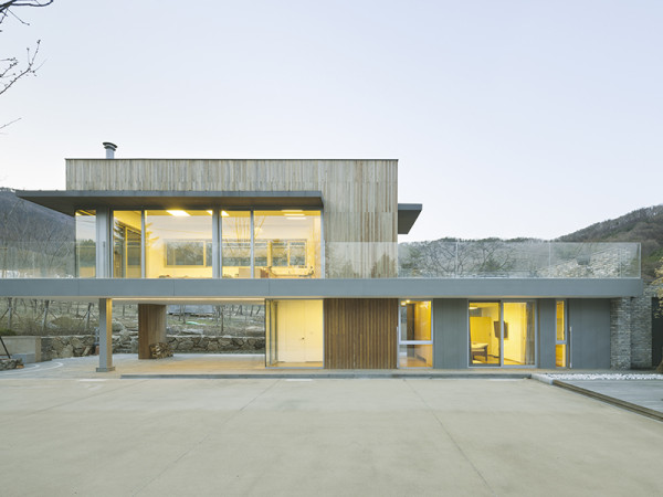 긴 담장 아래에 앉아 사색의 시간을 갖는다. 복잡하고 어수선한 마음을 내려놓으면 모든 일상에 여유가 생긴다. 은퇴 후 건축주의 삶을 고려해 설계된 주말주택. ‘담장’이라는 요소로 자연과의 소통을 조율한 건축가의 노력이 스며 있다. 취재 김연정 사진 남궁선 ▲ 경기도 포천의 깊은 골짜기 수목원에 주택이 자리하고 있다. ▲ 주택은 동서 방향으로 길게 놓아 남향집의 장점을 최대한 살렸다. 건축물의 법적인 정의에서 가장 핵심적인 부분은 지붕의 유무이다. 하지만 지붕을 올리는 법적인 건축 행위에 개념적으로 선행되는 과정이 바로 주어진 땅의 경계를 정의하고 그 안을 성격이 다른 여러 영역으로 구분하는 행위다. ‘담장’은 이를 위해 가장 효과적인 인공 요소이다. 담장을 세움으로써 비로소 안과 밖, 이쪽과 저쪽이 구분되고, 담장의 높이에 의해 이들 간의 다양하고 풍부한 관계가 설정된다. 그리고 담장에 난 개구부는 안팎, 피차의 시각적·물리적 소통을 미묘하게 조율하는 장치가 된다. HOUSE PLAN 대지위치 : 경기도 포천시 신읍동 용도 : 단독주택 대지면적 : 713.90㎡(215.95평) 건축면적 : 124.05㎡(37.53평) 연면적 : 148.18㎡(44.82평) 건폐율 : 17.38% 용적률 : 20.76% 규모 : 지상 2층 구조 : 철근콘크리트+철골조 외부마감 : 목재, 벽돌, 징크 시공 : 위빌시티 조경 : 김경원 설계담당 : 강동기, 신수정, 오은성, 김보람, 김선진 실시설계 : (주)더스틸건축사사무소(김정훈) 기본설계 : 이동훈(이화여자대학교 건축학부) 02-3277-6645 ▲ 주변 경관을 언제든 즐길 수 있도록 전이공간인 데크를 마련했다. ▲ 세 종류의 담장이 집의 경계를 나누며, 각기 다른 크기와 분위기의 마당을 연출하였다. 경기도 포천의 한 호젓한 골짜기. 그 깊숙이 자리한 수목원 내에 대지(垈地)가 위치한다. 50대인 건축주는 은퇴 후 전원생활을 위한 이른 준비의 일환으로 텃밭이 딸린 작은 주말주택을 원했다. 방은 그리 크지 않은 것으로 하나면 족하다고 했다. 방 하나와 더불어 거실, 식당, 부엌, 욕실로 이루어진 홑겹의 ‘일자(一字)집’, 그리고 여기에 직교(直交)하는 벽돌로 된 담장이 이 집 배치의 뼈대이다. 벽돌 담장은 앞마당의 동쪽 경계를 정의하며 진입도로로부터 앞마당의 프라이버시를 확보한다. 일자집은 동서 방향으로 길게 놓여 남향집의 장점을 최대한 취한다. 도로에서 대지로의 진입은 대지의 북동쪽 구석에서 이루어진다. 나무 담장이 대문과 현관문 사이의 진입마당을 둘러싸며, 그 서쪽 너머에는 돌담으로 경계지은 뒷마당이 생긴다. 이와 같이 일자집과 세 종류의 담장을 이용하여 각기 그 크기와 분위기가 다른 세 종류의 마당을 연출하였다. ▲ 거실, 식당, 부엌은 탁 트인 풍경을 감상할 수 있도록 2층에 배치했다.▲ 전면창을 통해 수목원이 한눈에 들어온다. 수목원 내 대지가 허락하는 탁 트인 주변 경관을 최대한 향유하기 위해 ‘거실+식당+부엌’ 덩어리를 2층으로 올리고, ‘침실+욕실’ 덩어리는 마당과의 친밀한 관계를 염두에 두며 1층으로 내렸다. 그리고 계단에 의해 연결된 이 두 개의 덩어리들을 서로 엇갈리게 만들어 또 다른 두 개의 외부 공간을 만들었다. 즉, ‘침실+욕실’ 덩어리의 상부에는 ‘햇빛 데크’를 마련하여 2층에서 바로 나와 먼 산의 경치와 햇볕을 즐길 수 있도록 하였다. 반면, ‘거실+식당+부엌’ 덩어리의 하부에는 ‘그늘 데크’를 마련하여 그늘 속 시원한 공기와 바람을 느끼며 앞·뒷마당을 즐길 수 있도록 하였다. 1층 덩어리의 외부 마감 재료는 연결된 동측 담장과 같은 벽돌로 했고, 떠 있는 2층 덩어리는 진입마당의 담장과 함께 나무로 마감하였다. 벽돌과 나무, 두 재료는 이 집에서 서로 직접 만나지 않으며 그 틈새에 금속으로 만든 대문과 현관문이 놓인다. 이 집에서 담장들은 건물만큼이나 중요하며, 건물 또한 다양한 외부공간을 산출하는 담장과도 같은 역할을 맡는다. 홑겹의 일자집은 일련의 담장들의 도움으로 땅과의 접촉면을 최대로 하며 대지를 ‘그러쥐고’ 있다. <글 _ 이동훈> ▲ 2층 데크로 가는 계단. 화이트 외벽과 계단의 유리난간이 조화롭다. ▲ 창을 통해보이는 산세와 키낮은 책장건축가 이동훈 서울대학교 건축학과와 동대학원, MIT 건축대학원을 졸업했다. 보스턴의 구디클랜시(Goody Clancy)에서 실무경험을 쌓았으며, 한국과 미국의 건축사 자격을 보유하고 있다. 2009년부터 현재까지 이화여자대학교 건축학부에서 건축설계 교수로 재직 중이다. 주요작품 : Open Innovation Jeju Institute Masterplan, 북부켄터키대학교 응용정보학센터 지명현상설계 당선안 외 다수 ※ 월간 <전원속의 내집> www.uujj.co.kr 본 콘텐츠의 저작권은 (주)주택문화사에 있으며, 이를 무단 이용하는 경우 저작권법 등에 따라 법적책임을 질 수 있습니다.