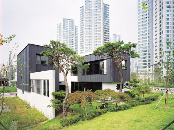 아파트로 둘러싸인 주택단지 초입에 모던한 외관의 집 한 채가 완공되었다. 통행량이 많은 주도로에 면해 있지만, 전면의 야트막한 둔덕 덕분에 아늑함을 풍기는 가족의 새로운 보금자리를 찾아가 본다. 취재 임수진 사진 변종석 ◀주차장에서 올려다본 안마당의 모습. 1, 2층 매스의 볼륨과 풍성하게 꾸며진 조경이 시선을 끈다. ▲▶ 안쪽 도로에서 바라본 주택 외관. 모노톤의 외장재를 사용해 깔끔함을 강조했다.▼▶ 주어진 대지의 크기에 비해 넓게 꾸며진 정원은 잔디마당을 중심으로 예쁜 수형의 나무들을 심었다. 가벽을 활용해 프라이버시 문제에 특히 신경쓴 모습이다. 시작 - 마당 대지는 북측의 도로와 좌우의 인접지, 남측으로는 녹지와 접해 있다. 계획의 출발은 남측에 접해 있는 둔덕(mounding)과의 관계맺음에서 시작된다. 택지지구 내의 택지가 그러하듯 외부공간을 적극적으로 구성하기에는 땅의 면적이 그리 넉넉하지 않다. 대지 내의 외부공간과 주변 경관녹지를 연계시켜, 보이는 공간과 느끼는 공간을 확장시킬 수 있는 방안으로 안마당을 도입하였다. 안마당은 평면의 기능과 볼륨을 자연스레 분할하여 북서측에 배치했다. 이는 남측의 채광을 유입하는 동시에 대지 내·외부간의 적절한 거리를 유지하는 소통의 역할도 한다. 건물 내 주차장은 그 본연의 기능으로만 한정시켜 폐쇄적으로 사용하기보다는 안마당과 연계하여 녹지와 연계된 열린 공간으로 사용해, 집안의 대소사 시 녹지공간을 적극적으로 사용하도록 했다. ▲ 차량 통행이 많은 주도로와 대지 사이에는 야트막한 둔덕이 있어 차폐의 기능을 극대화하는 동시에 시각적으로 마당이 연장되는 효과를 낸다. ▲ 1층 현관 홀에서 바라본 모습. 거실과 식당, 주방이 한눈에 들어온다. ▲ 지하에는 취미실을 마련해 두었다. 체력단련실 쪽으로 썬큰을 계획해 지하공간임에도 자연광의 밝은 조도를 유지하도록 했다. ▲ 주 공용공간으로 꾸며진 1층은 마당을 향해 전면창을 계획해 공간에 확장감을 더하고, 보다 생기있는 분위기를 완성하고 있다. 평면 계획 1, 2층은 부모세대, 3층은 성장한 자녀세대를 위해 구성하였다. 외아들이 결혼 후 부모와 같이 생활할 때 서로 불편을 최소화할 수 있는 방안을 모색했다. 그 결과, 현관에서 각자의 침실로 연결된 계단까지의 동선은 공유하되, 층 내부에서는 각자의 프라이버시를 확보할 수 있도록 거실과 주방 및 사이마당, 테라스 등 외부공간을 별도로 구성하였다.3층으로 이어진 계단 상층부 한쪽에 위치한 사이마당은 수직적 계단동선과 수평의 외부조경공간을 접목시키는 역할로 분위기를 보다 밝고 따뜻하게 만들어낸다. ◀ 3층과 옥상으로 바로 연결되는 계단실. 2층의 부모공간과 별도로 계획되어 결혼 후 생활하게 될 자녀와의 프라이버시 문제에 적극적으로 대비했다. ▶ 3층의 침실로 연결되는 홀 공간. 양쪽으로 안마당과 현관을 내려다볼 수 있는 테라스가 마련되어 있다. ◀ 3층 거실 한쪽에 마련된 홈바. 블랙 앤 화이트를 기본 컬러로 모던하게 꾸몄다. ▲▼▶ 3층 침실. 바닥 레벨에 차이를 주고 유리가벽으로 공간을 구획했다. 조형 계획 안마당을 중심으로 분절된 2개의 볼륨 중 긴 볼륨은 공용공간, 짧은 볼륨은 침실 등의 사적공간이 위치한다. 볼륨 중간의 동선을 연결하는 복도와 그 복도에서 연장되는 2층만의 외부공간이 양측에 놓여진다. 안마당에 면한 노출콘크리트 가벽은 인접지 간의 프라이버시를 보호하는 동시에, 아늑한 안마당을 활용할 수 있게 하는 중요한 설계 포인트가 된다. < 글·정승이 > HOUSE PLAN 대지위치 : 인천광역시 남동구 지역지구 : 제1종 일반주거지역 / 제1종 지구단위계획구역 대지면적 : 348.3㎡ 건물규모 : 지하 1층, 지상 3층 건축면적 : 168.27㎡ 연면적 : 339.18㎡ 건폐율 : 48.31% 용적률 : 73.63% 주차대수 : 2대 구조 : 철근콘크리트구조 외부마감 : 외단열공법 + 스터코, 컬러강판 설계 : 유한건축사사무소 1544-9801, www.u-haus.co.kr시공 : 삼신종합건설(주) 032-888-5051건축사 정승이 유한건축사사무소 대표. (주)쌍용건설, (주)내외건축사사무소 등에서 실무를 쌓았다. 건축주들과의 끊임없는 소통을 최우선으로, 주어진 이야기에 부합되는 아름다운 건축물을 만들기 위해 공간과 디자인에 대해 항상 고민 중이다. 대표작으로는 희영재, Water House, 로에샤마임, Cubic House 등이 있으며 주거브랜드인 ‘U-HAUS’를 통해 아름다운 도시 건설에 일조하기를 꿈꾸고 있다.※ 월간 <전원속의 내집> www.uujj.co.kr 본 콘텐츠의 저작권은 (주)주택문화사에 있으며, 이를 무단 이용하는 경우 저작권법 등에 따라 법적책임을 질 수 있습니다.