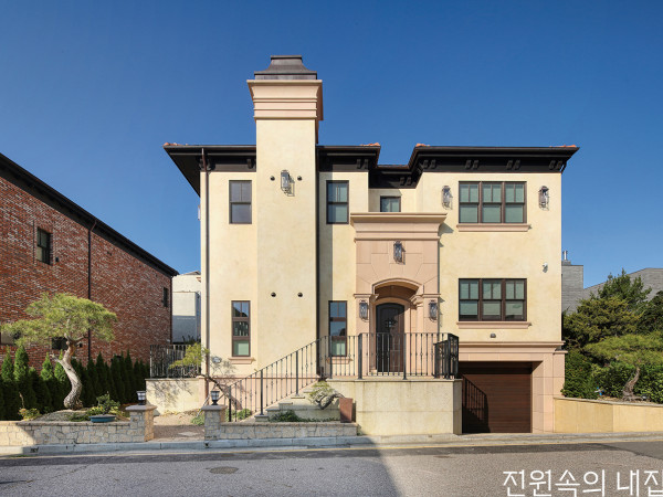THE CLASSICAL MANSION미국 유명 고전 저택을 보는 듯한 품위가 느껴지는 집.보이는 모습 뿐만 아니라 내실까지사는 이의 자긍심을 담아냈다.둥글게 입체감 있는 전면은 유럽의 성채와 같은 든든함을 느끼게 한다.1층 홀의 모습. 왼쪽 서측에는 식당과 주방이, 오른쪽 동측에는 응접실이 자리한다.고급주택들이 즐비한 판교, 그중에서도 여유로운 곳으로 통하는 분당 운중동에서도 돋보이는 주택을 만났다. 보는 이를 압도하는 클래식한 주택은 두 필지를 합한 대지에 들어선 만큼 면적이 넉넉했다. 대지는 단지 내에서 제일 높은 레벨이어서 전망도 좋고, 도로가 전면으로 뻗어 시야에 막힘이 없다. 건축주 부부는 자녀들과 편안한 생활을 할 수 있는 지중해풍 클래식 스타일의 주택을 원했다. 또한 넓은 대지를 충분히 활용해 미국 대저택의 느낌을 누릴 수 있기를 희망했다. 이를 제대로 구현하기 위해 모양만이 아닌 오리지널 자재를 해외에서 수급하다 보니 공기가 예상보다 늘어졌다.HOUSE PLAN대지위치 ≫ 경기도 성남시 분당구대지면적 ≫ 461.20㎡(139.51평)건축면적 ≫ 219.44㎡(66.38평)연면적 ≫ 327.78㎡(99.15평)건폐율 ≫ 48.03%용적률 ≫ 71.07%주차대수 ≫ 2대최고높이 ≫ 12.99m구조 ≫ 기초 –철근콘크리트조 / 지상 – 경량목구조 2×6 구조목재(미국산 더글러스, 아이조이스트, 공학목재 빔, 미국 CDX 천연합판)단열재 ≫ 미국산 에코단열재(벽-R19 / 지붕-R37)외부마감재 ≫ 외벽 –미국식 시멘트 스터코 베리언스 마감, 수입라임스톤 / 외단열 –스카이텍(미국 CDX 천연합판) / 지붕 – 스페니쉬 유형기와 5단 쌓기담장재 ≫ 에메랄드그린창호재 ≫ 미국 앤더슨 창호철물하드웨어 ≫ 심슨스트롱 타이, 탐린, 메가타이열회수환기장치 ≫ 미국산 열교환장치에너지원 ≫ 도시가스, 태양광 패널조경석 ≫ 사비석설계 ≫ 네이처스페이스 010-2022-5209 https://naturespace2022.com벽을 따라 둥글게 올라가는 계단, 그 중심에 자리한 샹들리에가 우아함을 뽐낸다.미국식 친환경 주택을 기본 콘셉트로 삼았고, 단열 성능이 좋은 북미 창호를 사용하였다. 해당 주택은 그 외관만으로도 마치 지중해에서 그대로 옮겨온 듯한 느낌이다. 외장은 스터코플렉스를 사용하였고, 지붕에 지중해풍 기와가 겹겹이 쌓여 중후한 느낌이다. 현관에 설치된 커다란 라임스톤 기둥은 흡사 미국의 대저택 입구를 연상케하며 안정감을 선사한다. 현관으로 이어지는 아치형 계단은 사비석 판재로 마감하였고, 양측으로 라임스톤 기둥이 방문객의 동선을 안내한다.현관에서 실내로 들어올 때 맞아주는 기둥들은 실외와 실내의 분위기를 부드럽게 전환해준다.식당 반대편에 위치한 응접실. 한켠에 자리한 벽난로가 아늑한 대화를 돕는다.가족 모두의 라이프스타일을 녹여낼 수 있는 여유가족 구성원에게는 개별적으로 각자의 침실이 배치되었는데, 그에 딸린 화장실과 거실이 각각 존재한다. 자녀의 프라이버시와 라이프스타일을 존중하고, 개인별 생활에 집중할 수 있도록 배려한 설계 의도가 반영되었다. 1층에는 게스트룸과 화장실, 그리고 커다란 거실과 다이닝룸을 두었다. 현관으로 들어오자마자 맞이하는 큰 기둥 8개로 인해 이국적인 분위기가 물씬 풍긴다. 입구에서 정면으로 보이는 아치형 계단은 2층에서 당장이라도 어느 왕국의 공주가 걸어 내려올 듯하다. 널찍한 거실은 큰 파티를 열어도 무리가 없을 정도로 여유롭다. 현관과 거실, 주방까지 하나의 동선상에 막힘없이 이어지는 공간은 일체감이 느껴진다. 헤링본 스타일의 원목 마루와 따뜻한 느낌을 전하는 실내의 아이보리 페인팅, 그리고 이를 비추는 조명이 어우러져 실내가 한결 고급스럽다.마스터룸과 아이방 앞에 자리한 홀에서는 간단한 대화나 쉼이 이어진다.마스터룸은 취침을 위한 침대공간과 일상을 보내는 전실로 구분되었다.럭셔리한 공간과 품격있는 일상거실에는 멋들어진 벽난로와 사방을 감싸고 있는 커다란 창호들이 인상적이다. 덕분에 채광이 좋고 환기 역시 손쉽다. 대리석으로 마감된 벽난로는 매립하여 공간 활용도를 높였고, 벽난로 위 멋진 거울과 크리스털 장식들이 럭셔리하게 보인다. 추운 겨울 벽난로에 모닥불을 피워놓고 가족들과 도톰한 카펫 위에서 담소도 나누며 소위 ‘불멍’을 즐긴다면 먼 외국까지 갈 필요가 있을까 싶다. 메인 주방은 시공사에서 디자인하고 제작 발주한 가구들로 클래식하게 꾸며졌다. 메인 주방 바로 옆으로 보조주방을 배치하여 각종 수납이 편리하고 여유롭다. 세탁기나 건조기를 별도로 배치하지 않고 보조주방 테이블에 매립하여 실내 공간의 낭비를 줄였다.건축가의 설계가 반영된 오더메이드 가구와 브라질산 심해석 상판이 인상적인 주방.욕실과 바로 이어지는 드레스룸 겸 파우더룸. 욕실 가구와 컬러 톤을 맞춰 연속성을 부여했다.건식으로 활용하는 2층 메인 욕실. 세면대에는 볼을 두 개 설치해 분주한 아침에도 공간만큼 여유롭다.INTERIOR SOURCE내부마감재 ≫ 내부 전체 –미국산 던 에드워드 천연페인트 / 바닥 –수입 티크 원목마루(헤링본) / 타일 – 이탈리아 타일욕실 및 주방 타일 ≫ 이태리 타일수전 등 욕실기기 ≫ 수전 - 미국, 이탈