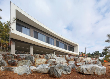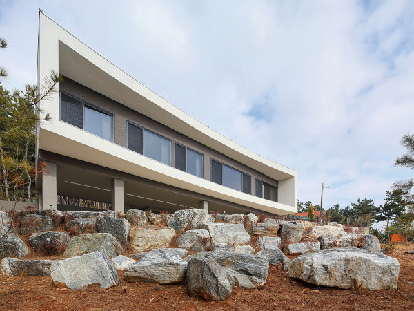 일생일대의 결정과 고민의 결정체, 집짓기.설계부터 준공까지 파란만장한 과정과 건축가의 고민을 만나본다.그 첫 번째는 다섯 식구의 소통을 담아낸 바닷가 숲속 집이다.다섯 식구가 머리를 맞대고 쌓아 올린 보금자리지금으로부터 대략 1년 전의 일이었다. 이혈룡·박현경 씨 부부에게 가장 큰 고민은 ‘가족의 회복’이었다. 세 자녀에게 어느 시기가 중요하지 않을까마는, 사춘기와 성장, 학업이라는 인생의 폭풍과 혼란을 맞이하고 있는 지금의 아이들에게 부부는 쉬며 힐링하는 공간을 만들어주고 싶었다. 무언가 동기를 부여해 주고 싶었고, 때론 시원하게 머리를 식힐 공간을 주고 싶었다. 부부는 집짓기라는 답을 냈고, 다섯 식구는 머리를 맞댔다.1층은 필로티 공간으로 구성된 주택의 모습. 덕분에 주차는 물론, 비 오는 날에도 다용도 공간으로 사용이 편리하다.(위, 아래) 2층 파사드를 감싸고 있는 곡선이 자칫 단조로울 수 있는 주택에 생동감을 준다.주택 현관문에 이르는 외부계단.부부는 설계와 시공의 많은 과정에서 자녀들이 배제되지 않도록 세심히 정보를 공유했다. 중요한 공정은 공학적 기반이 있는 부부가 도면을 보며 체크했지만, 외관의 결정부터 인테리어 컬러나 조명, 가구 배치에 이르기까지 자녀들은 태블릿 PC에 도면을 직접 그려보며 적극적으로 참여했다. 가족은 현장도 수없이 드나들며 청소부터 보조에 이르기까지 시공 전반을 함께했다. 현장은 순탄하게만 돌아가진 않았지만, 입주에 이르는 과정에서 가족들은 더욱 끈끈해지고 단단해졌다. “중요 공정 때마다 휴가를 내 참여하는 바람에 내년 휴가까지 모조리 당겨 썼다”며 멋쩍어하는 부부. 부부가 보여주는, 현장에 녹아든 가족들의 사진들에서 휴가 이상의 행복이 느껴진다.SECTION① 현관 ② 거실 ③ 주방 ④ 안방 ⑤ 방 ⑥ 욕실 ⑦ 복도 ⑧ 다용도실 ⑨ 창고 ⑩ 필로티 주차장 ⑪ 앞마당 ⑫ 뒷마당거실에서 바라본 모습. 가족과 마주하고 소통하고 싶어했던 아내의 주문으로 독특한 아일랜드 배치가 이뤄졌다. 냉장고는 유지관리와 청소를 우선해 따로 장을 두지 않았다.와이드한 뷰를 잡아내기 위해 큰 틀의 창호가 필요했다. 이를 위해 금속 보강재를 심은 창호 프레임을 제작해 적용했다.안방과 자녀 침실에 별도의 드레스룸을 두는 대신 현관 공간을 활용해 집합수납을 위한 장을 두었다.자녀침실 앞 복도를 길게 활용해 수납장과 세면대를 배치했다.안방에서 시작해 거실까지 시야가 이어지는 발코니창. 일출부터 일몰까지 집 안에서 감상이 가능하다.PLAN라이프사이클에 맞춰 변하는 ‘대를 잇는 집’설계 의뢰를 받은 스타일랩 종합건축사사무소의 안응준 소장은 땅이 가진 특성, 건축주에게 ‘세 자녀를 위한 각방’과 ‘가족의 미래’라는 화두의 큰 틀에서 방향을 잡아나갔다. “흙에서부터 주변 여건, 숲까지 정말 탐나는 필지였다”고 첫인상을 전한 안 소장. 외관에서는 바다에 인접하며 언덕 위에 놓인 대지가 가진 풍부한 뷰를 담아내면서, 에지 있고 단정한 스타일을 추구한 결과 필로티 위에 얹어진 커브 형상을 갖게 되었다.드럼을 좋아하는 아들은 새집에서 마음껏 에너지를 발산한다. 목공벽이지만, 방음도 고려해 시공했다. 창으로는 금속 난간 대신 강화유리 난간을 둬 시야 방해를 최소화했다.자녀들 방과 복도를 나누는 벽 위에는 창을 두어 자연스러운 채광을 확보하는 동시에 간단한 선반 역할을 한다.자녀방이 모여 있는 서측 복도. 끝에는 바닥부터 천장까지 닿는 창을 둬 시각적 갑갑함을 최소화했다.HOUSE PLAN대지위치 ≫인천광역시 옹진군 대지면적 ≫938㎡(238.74평) 건물규모 ≫지상 2층 거주인원 ≫5명(부부 + 자녀 3) 건축면적 ≫200.71㎡(60.71평) 연면적 ≫157.44㎡(47.62평) 건폐율 ≫21.40% 용적률 ≫16.78% 주차대수 ≫4대 최고높이 ≫7.67m 구조 ≫기초 - 철근콘크리트 매트기초 / 지상 - 벽 : 철근콘크리트, 지붕 : 무근콘크리트 단열재 ≫준불연 비드법단열재 외부마감재 ≫외벽 – 미장스톤 / 지붕 –구조체 위 무근콘크리트 + 에폭시 마감 창호재 ≫KCC 에너지원 ≫기름보일러 조경석 ≫자연석 쌓기 구조설계 ≫㈜씨온구조 민정규 대표 전기·기계·소방설계 ≫지혁이엔지 오주명 소장 내부마감재 ≫벽 – 개나리벽지 / 바닥 –PVC 바닥재 욕실 및 주방 타일 ≫용타일 수전 등 욕실기기 ≫아메리칸스탠다드 주방 가구 ≫한샘 거실 가구 ≫수니겔러리 조명 ≫한샘 현관문 ≫백산도어 FD9039 중문 ≫초슬림 3연동 시티뷰 자동중문 방문 ≫영림도어 시공 ≫건축주 직영 설계 ≫스타일랩 종합건축사사무소(설계 담당 : 노재현, 이주헌)주택 뒷마당에는 농구대와 야외조명을 설치했다. 학업으로 인해 오후 느즈막히 와도 가볍게 몸을 풀 수 있다.소나무 숲이 아늑하게 감싸주는 주택.‘각방과 미래’라는 화두에서 안 소장이 도출해낸 개념은 ‘대를 잇는 집’이었다. 기둥과 슬래브로 큰 구조를 두고, 그 안에서 가족들의 라이프사이클에 맞춰 변화를 주고자 한 것. 자녀들 공간은 구조체가 아닌 목공으로 벽을 형성하고, 자녀들이 독립하거나 결혼해 손주들이 생길 때 줄이고 또 늘리며 거실에 다양한 역할을 부여할 수 있