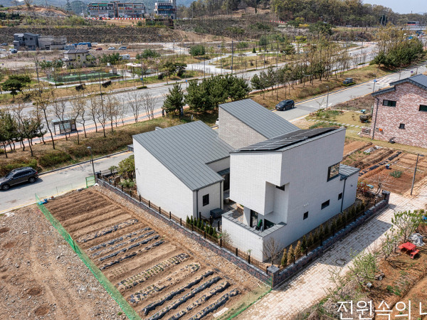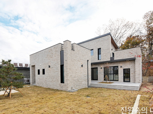 경기도 세종시 <이수네 집>은퇴 후 돌아온 고향.손자의 이름을 따 삼대가 누릴 커다란 행복을 담는 집을 지었다.필로티 형식의 연장 포치는 날씨에 상관없이 여러 활동을 할 수 있다는 장점이 있다.여러 매스가 저마다의 각도를 가진 채 서로 연결되는 주택의 모습. 건축주가 고심해서 고른 조경과 펜스가 돋보인다.사업체를 운영하던 건축주 김원기 씨는 은퇴 후 부인과 함께 고향인 세종시로 돌아왔다. 오래전부터 세워뒀던 은퇴 계획에는 전원주택이 빠진 적이 없었다. 마당이 있는 삶을 누리면서도, 주변의 풍경을 느긋하고 여유롭게 즐길 수 있는 집. 동시에 먼 미래에는 아들에게, 또 손주에게 물려줄 수 있을 정도로 내실 있는 집을 원했다. 수소문 끝에 집 짓기를 도와줄 호림건축사사무소와 전문 시공사인 호멘토를 만났고, 현재를 즐기면서 미래를 담을 수 있는 집의 윤곽이 잡혀나갔다. 삼대가 누릴, 세 개의 마당이 있는 집. 손자의 이름을 딴 ‘이수네 집’이다.거실은 앞 뒤로 두개의 마당과 연결되는 이 집의 핵심 공간이다. 천장 부분은 지붕의 일조사선을 따라 일부 오픈되면서도, 끝 부분에서는 곡면 처리와 간접 조명을 통해 독특한 공간감이 연출되었다.HOUSE PLAN대지위치 ≫ 세종특별자치시 고운동대지면적 ≫ 446.1㎡(134.94평)건물규모 ≫ 지상2층거주인원 ≫ 2명(부부)건축면적 ≫ 172.40㎡(52.15평)연면적 ≫ 236.65㎡(71.60평)건폐율 ≫ 38.65%(법정 40%)용적률 ≫ 53.05%(법정 80%)주차대수 ≫ 2대최고높이 ≫ 8.99m구조 ≫ 기초 - 철근콘크리트 줄기초 / 지상 – 철근콘크리트단열재 ≫ 지붕 – THK220 비드법단열재 가등급 + THK50 경질우레탄폼 / 외벽 - THK145 비드법단열재 가등급 / 기초바닥-THK190 압출법보온판 가등급 / 층간- THK50 압출법 보온판외부마감재 ≫ 외벽 – 컬러시멘트 모노타일 / 지붕 - THK0.5 포맥스 컬러강판 돌출이음 / 처마 - 뉴테크우드코리아 캐슬형 WIDE사이딩창호재 ≫ 이건창호-AL(43mm 3중유리 양면로이 아르곤)열회수환기장치 ≫ 독일 Zehnder Comfoair Q 600, ERV에너지원 ≫ 도시가스, 태양광 조경 ≫ 건축주 직영, 에덴소나무전기·기계 ≫ SMENG 그린 전기설비 ≫ 홍익설비시공 ≫ 호멘토(HOMENTO) www.homento.co.kr설계·감리 ≫ 호림건축사사무소 044-998-6551 https://blog.naver.com/jlett거실 부분에서 보이는 남측 마당은 조경을 통해 외부로부터의 프라이버시를 보호하며 풍경을 만든다.간살과 창을 통해 다채롭게 꾸민 복도.필지는 남측으로 진입 도로와 접해 있어 조망권이 보장되는 조건이었다. 이런 풍경을 충분히 누리고, 동시에 주변으로부터의 시선을 차단하는 것이 설계의 관건이었다. 이를 위해 평면상으로 움직임이 많고 적은 두 영역을 설정해 각각 필지의 남측과 북측으로 나누어 배치했다. 이 과정에서 남측 정원과 진입 마당, 그리고 건축 공간 사이로 형성된 중정까지 세 개의 외부 공간을 계획했다. 동시에 1층을 지반 레벨보다 1.5m 정도 높게 계획해 인접 도로로부터의 시선을 차단했다. 집의 첫인상이 되는 진입 마당은 단순히 천창 등의 요소로 포치에서 그치지 않고 다양한 시각적 재미를 주는 공간이다. 현관으로 들어서면 다용도실을 통해 바로 주방으로 연결되는데 생활의 편의를 위해 동선을 고려한 의도로 보인다. 남측 마당에 펜스와 함께 형성된 조경은 외부 시선으로부터 집을 보호하는 수단이자 건축주가 전원주택의 재미를 가장 많이 느끼고 있는 요소이기도 하다. 프라이버시가 보장되어야 하는 침실과 욕실 등은 필지의 북쪽에 배치했다. 거실에서 북쪽으로 뻗어 안방과 연결되는 중정은 두 공간을 유기적으로 연결하면서도 외부에서의 시선 걱정 없이 야외 활동이 가능하도록 만들어주며 채광을 확보하는 역할을 한다.중정과 마주보는 방향으로 와이드창을 둔 1층 침실.2층 계단실에는 커팅한 유리 난간이 개방감을 더한다.거실과 비슷한 색상의 커튼으로 연출해 통일감을 준 2층 가족실. 아들 부부와 손자가 놀러오면 함께 시간을 보내는 곳이다.INTERIOR SOURCE내부마감재 ≫ 벽 - 벤자민무어 친환경도장, 실크벽지 / 바닥 - Teak광폭원목마루, 강마루욕실 및 주방 타일 ≫ 윤현상재 수입타일수전 등 욕실기기 ≫ 아메리칸스탠다드주방 가구 ≫ 미소디자인거실 가구 ≫ 건축주 소장조명 ≫ 12Lighting led아이방 가구 ≫ 건축주 소장계단재·난간 ≫ 계단재 - 합판집성 36T + OAK무늬목 + 착색도장 / 난간 – 강화유리현관문 ≫ ㈜커널시스텍중문 ≫ 와이우드홈즈 양방향 스윙도어방문 ≫ 우드원코리아 우드제작도어 + 우레탄도장붙박이장 ≫ 미소디자인데크재 ≫ 뉴테크우드코리아 울트라쉴드2층 남측으로 올라서면 제2의 거실인 가족실과 테라스 공간이 나타난다. 건축주 부부의 공간인 1층과 별도로 아들 부부와 손자가 오면 머무는 2층은 바닥재부터 1층과는 또 다른 용도와 분위기를 갖는 공간이 된다. 은퇴 후 전원주택을 꿈꾸는 이들에게 건축주는 조언한다. 아낌없는 투자와 가족간에 많은 소통을 하라고. 잠깐 머물 집이 아닌 앞으로의 미래와 대를 이을 집을 꿈꾸는 주택이라면 더욱 중요하다는 의미에서다. 가족을 향한 내리사랑과 은퇴 후의 즐거움은, 집안에 들어차는 햇살과 함께 더욱 따스해지고 