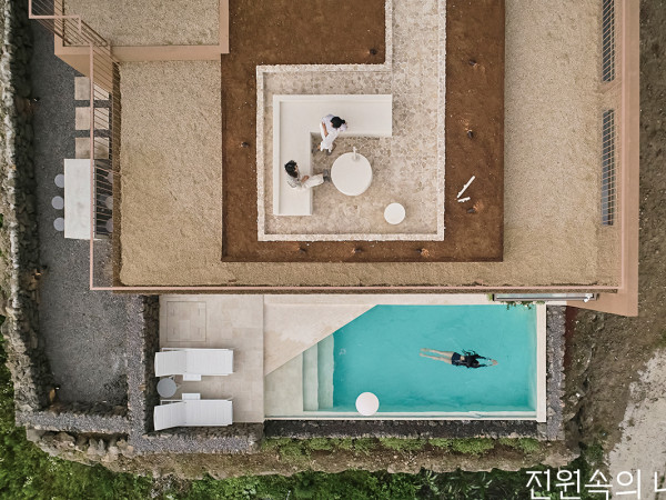 공유하고픈 제주 풍경의 모든 것.가까이에서 그리고 멀리에서, 제주의 자연을 온전히 받아들인다.해 질 녘, 측면에서 바라본 멀리제주. 동일한 형태를 지닌 두 개의 매스가 엇갈린 구조다. 숲과 돌담 사이에 흙의 색채를 띄는 건물이 자연적이면서도 이색적인 분위기를 풍긴다.WHERE제주특별자치도 제주시 애월읍 납읍남로3길 23010-8663-3636| 인스타meolli_jeju2층에서 이어지는 루프탑과 1층의 야외 수영장이 한눈에 보인다. 스페인 시체스 앞 별장에 머무르는 듯한 이국적인 인테리어로 여행의 묘미를 선사하고 싶었다고.PICK낙조가 떨어지면 고개를 들어 멀리 있는 제주 바다를 바라봅니다. 바다에 비친 붉은 노을이 스테이 공간 전체를 물들이며 진풍경이 펼쳐지죠. 매직글래스에 가장 좋아하는 영화나 음악을 비추고 찰랑이는 야외 수영장에서 노을 맛집을 만끽해보세요.따로 문을 두지 않고 외부에서 실내 수영장으로 바로 이어지는 입구 공간. 벤치가 있어 휴식을 취할 수도 있다. 포치 아래 공간에서는 비 오는 날 색다른 감성을 느낄 수 있다.ENJOY숙소에서 10분 거리에 있는 납읍난대림지대와 금산공원은 방문할 가치가 있는 장소입니다. 상록활엽수림이 우거진 자연림의 원형을 보존하고 있으며, 표본지역으로 학술적 가치도 높아 천연기념물로 지정된 곳입니다.숙소의 대표적인 아이템 중 하나인 매직글래스. 야외 수영장과 다이닝 공간 사이에 슬라이딩 도어처럼 설치해 실외 수영장의 물 속에서도 영화나 원하는 영상을 볼 수 있다.가장 제주스럽고, 동시에 이국적인 여행. 차경(借景) 담은 이층집제주를 구석구석 돌아보는 기쁨을 만끽하며 살던 중, 유독 발길이 잦았던 곳. 그곳에서 우연히 오랜 시간 방치된 듯 보이는 ‘언덕 위의 집’을 만났다. 푸른 난대림지대를 등에 업고, 멀리 제주의 바다를 바라다보니 온갖 호사를 누리는 기분이 들었다. 그렇게 일여 년의 시간이 흐른 뒤 좋은 기회로 집을 구입하게 된 건축주. 처음부터 스테이를 계획한 것은 아니었다. 풍광에 매료된 지인들의 권유로 숙박업에 관심을 갖게 되었고, 제주의 자연을 끌어안는 동시에 여행의 갈증을 해소해 줄 수 있는 이국적인 공간을 만들고 싶었다.PLAN1층 야외 수영장에서는 높은 지대에서 멀리 보이는 제주 바다의 풍경을 만끽할 수 있다. 다이닝 공간, 그리고 내부 수영장과 바로 연결된다.현관에서 바라본 실내 수영장과 그 너머의 풍경. 기다랗게 두 개의 천창을 내 햇빛이 비출 때 은은한 분위기를 연출한다.현관 옆 유리블록으로 세워진 벽. 외부와 내부의 연결을 자연스럽게 이어준다.프로젝트는 기존 건축물의 구조를 수용하면서 대지가 가진 장점을 최대한 발휘할 수 있는 방법을 찾는 것에 집중했다. 증축 허가를 받아 2층 구조의 건축물을 완성하고, 바다 방향의 남은 대지를 건축에 포함해 파내기 방식으로 1층 내부와 레벨이 같은 야외 수영장을 만들었다. 그렇게 2층에서 이어지는 루프탑과 야외 수영장이 탄생했고, 외부의 자연 풍경을 내부로 한껏 들여오는 스테이의 핵심 공간이 되었다.SECTION1층의 침실. 원목으로 제작한 침대 헤드가 천연 미장의 컬러와 조화롭게 어우러진다.아래쪽만 타일로 마감해 포인트를 준 화장실. 샤워실을 구분하는 벽도 중간까지만 올려 답답하지 않다.제주의 지역성을 반영하는 것도 프로젝트의 중요한 방향성이었다. 증축한 2층의 외장재로 탄화 코르크를 사용해 제주 흙의 성질과 1층 건축물과의 시간적 간극을 표현했다. 1층의 인테리어는 제한적인 기존 골조의 평면에 맞춰 세련된 제작 가구를 배치하고, 외관과 자연의 감상을 자연스럽게 들여오기 위해 미장 재료의 색채와 질감을 직접 테스팅해 멀리제주만의 특별한 분위기를 연출해냈다.HOUSE PLAN대지위치 ≫제주특별자치도 제주시 대지면적 ≫440㎡(133.1평) 건물규모 ≫지상 2층 건축면적 ≫107.2㎡(32.43평) 연면적 ≫141.49㎡(42.80평) 건폐율 ≫24.36% 용적률 ≫32.16% 주차대수 ≫1대 외부마감재 ≫탄화코르크보드 외 내부마감재 ≫천연미장 숨토, 인디무드 미장페인트 욕실 ·수영장 타일 ≫REGNO 모자이크타일 수전 · 욕실기기 ≫티온바스, 아메리칸스탠다드 주방 가구 ≫메라톤, 제작가구 조명 ≫메가룩스, 코제 외 내부자동문 ≫TOPP_KOREA 수영장 폴드업도어 ≫제일아시트 원목 마루 ≫선일글로벌 증축 인허가 ≫강진구건축사사무소 시공 ≫㈜아프로건설 디자인설계 · PM ≫JamesBlues Design LAB010-9070-9685 www.instagram.com/jamesblues_design_labSTAY POINT A개방감이 느껴지는 실내 수영장앞쪽으로 폴드업 도어를 설치해 개방감을 극대화한 실내 수영장. 다이닝 공간과의 구분은 유리 자동문으로 구성해 실내이면서 외부 공간 같은 느낌을 느낄 수 있다. 창틀에 걸터 앉아 실외 수영장과 아름다운 전경을 감상해보자.STAY POINT B천연소재 미장으로 마감한 내부내부 벽은 원하는 질감과 색채를 내기 위해 건축주와 건축가가 직접 테스팅한 후 터치감을 살려 천연소재 미장으로 마감했다. 외장재에서부터 연결되는 천장 마감과 자체 제작한 가구와의 조화가 이국적인 분위기를 자아낸다.STAY POINT C통창으로 꾸민 가족실1층에 마련된 가족실은 한 면을 넓은 통창으로 꾸몄다. 창