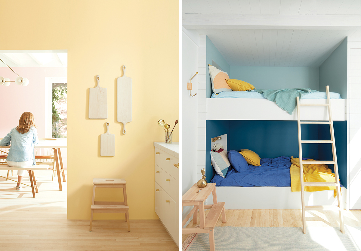 학용품이나 장난감 등에 원색이 많이 사용되므로, 벽은 오래 보아도 싫증나지 않는 베이지, 웜그레이 등 뉴트럴하고 따뜻한 컬러를 바탕으로 칠하길 권한다. 솜사탕처럼 부드러운 파스텔 계열의 컬러 역시 소품과 자연스럽게 매치돼 아이방에 꾸준히 인기가 높다. 아이의 흥미를 끌 수 있는 요소로 벽면을 분할하여 두 가지 이상의 컬러를 쓰는 것도 좋은 방법이다. 보색을 활용하면 큰 장치 없이 생동감 넘치고 유니크한 공간을 꾸밀 수 있고, 문이나 옷장에 컬러 칠판 페인트로 재미를 더하기도 한다. 무엇보다 중요한 것은 친환경 기준이다. 아토피나 천식을 유발하는 휘발성유기화합물 성분 (VOCs)이 함유되지 않은 제품, 환경표지인증을 받은 제품인지 꼼꼼히 따지도록 한다. 한국벤자민무어페인트㈜ 이해든 이사