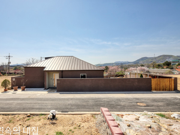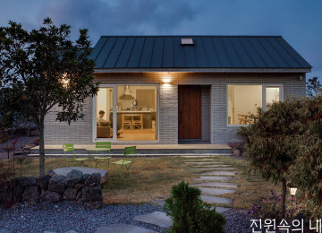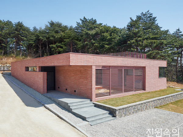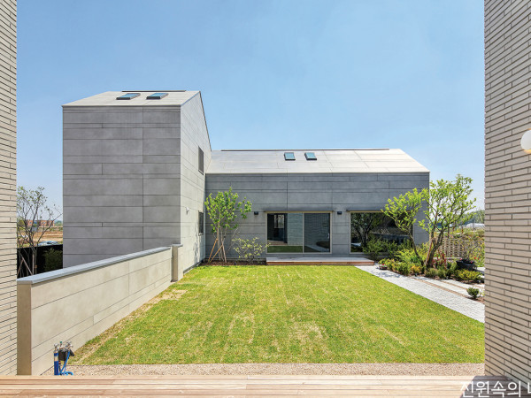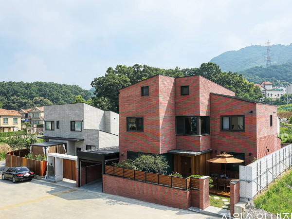 MiumMium Roof-Zip절제된 선, 인디핑크빛 벽돌과 줄눈이 어우러진 외관이 시선을 사로잡는다. 아버지를 위한 가족의 선물. 네모진 앞마당과 뒷마당을 가진 독특한 구조의 단층집이다.어느새 장성하여 각자의 인생을 꾸린 자식들을 보며, 부모는 일생의 과업을 하나 마친 기분이었으리라. 건축주의 부모님은 늦게나마 자신의 삶을 살고자 일찍이 졸혼을 결심했고, 이 집은 강원도 고성에 살고 계신 아버지의 집이다.이 땅을 처음 만난 건 2년 전. 아버지께서 노후를 보내기 적당한 곳이라 판단한 네 명의 자식들은 자금을 모아 집을 지어드리기로 했다. 아버지는 후일에 집을 가족 별장으로 쓰면 좋겠다는 뜻을 내비쳤고, 자식들 역시 가족의 잦은 왕래를 반영한 설계가 필요하다는 데 동의했다.“경북 안동에 계신 어머니 집을 먼저 지어드렸어요. 비용을 꽤 들였는데도 터무니없는 하자가 줄줄이 나왔죠. 그래서 이번엔 설계와 시공, 사후관리까지 책임질 수 있는 탄탄한 회사를 찾는 걸 최우선으로 삼았습니다.”미니멀한 매스에 직선이 강조된 주택 외관. 벽돌과 줄눈, 가로간살문, 외부 계단과 펜스까지 모두 같은 톤의 컬러로 통일했다. 심플하지만 단조롭지 않은 집이다.남향 볕이 따스한 앞마당에선 아버지와 반려견이 함께 시간을 보내곤 한다.SECTION ① 현관 ② 거실 ③ 주방 ④ 다용도실 ⑤ 안방 ⑥ 욕실 ⑦ 드레스룸 ⑧ 침실 ⑨ 화장실 ⑩ 앞마당 ⑪ 뒷마당HOUSE PLAN대지위치≫ 강원도 고성군대지면적≫ 668m2(202.07평)건물규모≫ 지상 1층거주인원≫ 1인(가족들 자주 왕래)건축면적≫ 131.15m2(39.67평)연면적≫ 131.15m2(39.67평)건폐율≫ 19.63% |용적률≫ 19.63%주차대수≫ 3대 최고높이≫ 6.08m구조≫ 기초 - 철근콘크리트 매트기초 / 지상 –철근콘크리트 구조단열재≫ THK155 나등급 단열재외부마감재≫ 외벽 – 롱브릭 타일, 금속 도장 / 루프탑 : 데크 마감창호재≫ 살라만더 82mm 3중 시스템창호에너지원≫ LPG설계·시공≫ ㈜하눌주택 1522-7003, www.hanulhouse.com설계 담당≫ 권정열, 박주석, 조병호앞마당은 아버지가 지내는 안방과도 출입문을 통해 바로 연결된다.손주들이 캠핑을 즐길 수 있는 뒷마당. 다용도실, 거실과 연결되며 옥상으로 오르는 외부 계단이 있다.설계와 시공이 유기적으로 이루어져야 한다고 판단한 건축주는 여러 업체를 검토한 끝에 ㈜하눌주택을 만나게 되었다. 그렇게 시작된 집짓기는 모든 것을 믿고 맡겨도 안심일 만큼 투명하고 원활하게 진행되었다. 토목공사를 시작하고 완공되기까지 건축주가 현장에 방문한 건, 업체가 요청한 4~5번 정도. 매일 진행 상황에 대한 설명이 사진과 함께 상세히 전달되었고, 마음에 드는 자재를 두고 예산 초과로 걱정할 때마다 항상 질 좋은 대체 자재를 구해다 주었다.두 개의 마당을 품은 ㅁㅁ지붕집은 연로하신 아버지를 위하여 계단을 최소화한 단층집이 되었다. 방에 들어가면 온전히 개인적인 시간을, 거실로 나오면 다 같이 즐거운 시간을 보내길 원했던 가족의 희망 사항 또한 고스란히 담겼다. 거실과 주방을 중심으로 2개의 방을 대척점에 배치하고 각 방에는 단독 욕실과 드레스룸을 두었다. 언제나 화장실이 방의 개수보다 1개 더 많아야 한다는 것은 건축주의 특별 요청이기도 했다.거실은 모든 공간과 연결되는 집의 중심이다. 앞뒤의 마당으로 열려 있어 시원한 개방감을 느낄 수 있다.널찍한 현관 공간. 맞은편 벽 상부에 낸 가로창을 통해 햇볕이 깊숙이 든다.외관 디자인과의 연계를 고려해 가로간살 중문을 설치했다.INTERIOR SOURCE내부마감재≫ 벽 – LG하우시스 베스티 실크벽지 / 바닥 - 동화 자연마루 강마루(네스티 브라운 오크)욕실 및 주방 타일≫ 수입타일수전 등 욕실기기≫ 대림주방가구·붙박이장≫ 한샘조명≫ 비츠조명, 조명나라, 공간조명, 소노조명현관문≫ 성우스타게이트 LSFD 모노타임중문≫ 예림도어 YSL-214(가로 간살)방문≫ 예림도어 YA-001(민자 / 예림 135 오크딥)데크재≫ 방킬라이 데크재외부계단 및 난간≫ 금속 제작 후 도장거실에서 바라본 ㄷ자형 주방. 안쪽에 안방과 다용도실이 자리한다.거실 소파에 앉으면 보이는 앞마당의 모습. 가로간살문은 외부 시선을 적절히 가려주는 동시에 채광을 확보하는 역할을 한다.PLAN ① 현관 ② 거실 ③ 주방 ④ 다용도실 ⑤ 안방 ⑥ 욕실 ⑦ 드레스룸 ⑧ 침실 ⑨ 화장실 ⑩ 앞마당 ⑪ 뒷마당(위, 아래) 3면에 창을 낸 안방에서는 동쪽의 소나무 숲과 서쪽의 앞마당 풍경을 모두 누릴 수 있다.트레이드마크가 된 인디핑크빛 외관은 어두운색을 배제한 붉은 벽돌집을 원했던 아버지의 의견이 반영된 것. 다크그레이 외장재를 염두에 두었던 터라 고심하던 건축주에게 하눌주택은 붉은 벽돌과 비슷한 색의 줄눈을 제안했다. 전형성을 벗어난 신선한 조합이 오히려 더욱 모던하고 아이코닉한 디자인의 집을 완성해 가족 모두가 아주 만족스러워한다는 후문이다.따스한 불빛이 새어 나오는 주택의 야경. 이웃 간 간격이 넓지 않은 주택 단지에서 안으로 들인 2개의 마당은 자유롭고 프라이빗한 야외 공간이 되어준다. 도로에 접한 현관은 벽체와 지붕을 길게 내어 외부 시선을 적절히 가렸다.“앞마당과 뒷마당은 이 