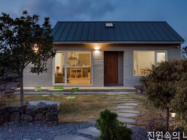 어른이 되면 알게 된다. 평범하게 사는 게 가장 어렵다는 것을. 어쩌면 집도 그렇다. 겉보기에 무난해 보여도, 직접 겪어보면 ‘보통’이라는 말의 의미가 새삼 대단해진다. 나지막한 제주 풍경 속 자리한 단층집 한 채. 15평 면적에 부부의 삶을 꽉 채운, 작지만 알찬 집이다.‘조근게 요망진 법.’드넓은 제주 땅 위에 지은작고 맨도롱한 집두 사람의 따스한 인상을 닮은 어느 봄. 오래된 돌집을 직접 고쳐 살던 젊은 30대 부부는 집을 짓기로 결심했다. 대지는 제주 중간산 지역에 새로 생긴 넓은 도로 곁, 작은 골목을 따라 올라가면 만나게 되는 넓은 땅이었다. 200평이 넘는 대지임에도 가는 길이 좁아 정작 건축 가능한 면적은 15평 남짓. 하지만, 재택근무를 주로 하는 부부에게 큰 문제는 아니었다. 삶에 꼭 맞는 작은 집이면 충분했고, 다만 밝고 시원하면서도 무섭지 않은 집이었으면 했다.넓은 땅에 지어질 작은 집이 너무 왜소해 보이지 않도록 계획하는 것이 관건이었다. 주택은 단순한 일자형의 매스 2개를 살짝 엇갈려 배치한 겹집의 형태로, 방과 거실, 주방과 욕실 등 각각의 공간에서 만나는 크고 작은 마당을 만든다. 집으로 들어오는 길에는 돌담을 쌓고 나무를 심어 고즈넉한 분위기의 진입로가 이어진다. 내부로 들어가면 거실과 주방을 하나의 볼륨으로 계획하고 천장과 바닥에 높이차를 주어 표면적이 넓어지도록 설계한 덕분에 답답함이 없다. 욕실에는 욕조 옆 바깥 풍경을 즐길 수 있는 환기창을 내고, 습도가 높은 제주 기후를 고려하여 사계절 내내 고른 빛이 들어오는 천창을 배치했다. 욕실 곁에는 넉넉한 수납의 드레스룸이 자리한다.현관 앞에는 처마를 깊게 내어 비 오는 날에도 불편하지 않도록 했다.주방과 연결된 거실은 마당을 향해 큰 창을 내었다. 앞마당과 진입 마당 사이 2개의 돌담이 있어 외부 시선에서도 자유롭다.평면도집 안으로 들어와 복도에서 바라본 주방의 모습.HOUSE PLAN대지위치≫ 제주특별자치도 제주시 |대지면적≫ 704m2(212.96평)건물규모≫ 지상 1층거주인원≫ 2명(부부)건축면적≫ 56.62m2(17.13평) | 연면적≫ 49.36m2(14.93평)건폐율≫ 8.04% | 용적률≫ 7.01%주차대수≫ 1대최고높이≫ 5.14m구조≫ 기초 - 철근콘크리트 매트기초 / 지상 –경량목구조(외벽 2×6 구조목 + 내벽 S.P.F 구조목) / 지붕 - 2×10 구조목단열재≫ 그라스울 R-11 15˝, R-21 15˝, R-30 16˝, R-40 24˝, 비드법단열재 2종3호 100mm외부마감재≫ 외벽 – 윙보더 타일 / 지붕 –컬러강판담장재≫ 제주 자연석창호재≫ KCC 시스템창호(복층 유리)철물하드웨어≫ 심슨스트롱타이, 메가타이 | 에너지원≫ LPG내부마감재≫ 벽 – LG지인 벽지 / 바닥 –한솔 강마루 / 천장 : LG지인 벽지, 미송루버욕실 및 주방 타일≫ 윤현상재 수입타일수전 등 욕실기기≫ 아메리칸스탠다드 | 주방가구≫ 한샘 유로조명≫ 제주 평화조명, 수입조명 직구(akari A45, flos, Muuto 등)현관문≫ YKK 현관문 | 중문·방문≫ 영림 3연동 도어조경석≫ 제주판석 |조경≫ 향원조경 | 전기·기계≫ 천일 ENC구조설계≫ 현구조 엔지니어링 | 시공≫ 테바건축설계·감리≫ 에이루트 건축사사무소 이창규, 강정윤, 양다은 064-721-1210 www.arootarchitecture.com거실 한편의 공간은 원래 서재로 계획됐으나, 지금은 안방과 용도를 바꾸어 침실로 사용한다.주방은 단을 높여 거실과 공간을 분리했다. 바닥과 천장의 다양한 높낮이 차이가 단순한 공간에 재미를 준다.복도에서 바라본 욕실. 긴 복도를 따라 각 공간이 자리하고 가장 내밀한 곳에 욕실을 두었다.배치도측면에서 바라본 주택의 밤 풍경. 길게 낸 처마와 겹집 형태의 매스 디자인이 한눈에 들어온다.제주에서보통의 집을 짓는 일서울에서 집을 짓듯 제주에 집을 지었다가는 섬 지역 특유의 거친 풍토로 인해 몇 년만 지나도 하자가 발생하기 쉽다. 솜씨 좋은 인력을 구하기도 녹록지 않아, 섬세한 마감을 기대하기 어렵거나 비용이 많이 들게 된다. 하가리 주택은 보편적인 디테일과 유지관리를 고려하여 합리적이면서도 고유성을 지닌 집을 실현하기 위해 고심한 곳이다. 비와 바람이 많은 제주도 환경을 견딜 수 있도록 현관 앞 깊은 처마를 두었고, 외벽은 회색의 롱 타일로 마감해 오염에 대비했다. 내부도 보편적인 시공법인 몰딩과 걸레받이를 시공했는데, 천장에 사용한 미송루버를 지정한 사이즈에 맞게 켜서 사용해 따뜻한 느낌을 준다.계획과 달리 지금은 서재 겸 거실로 쓴다는 안방. 방은 아늑한 평천장으로 구성하여 거실, 주방과 다른 느낌을 준다.욕실에는 욕조 옆과 천장에 창을 내어 제주의 자연을 만끽할 수 있다.거실은 목재로 마감한 천장과 작은 목재 창을 두어 따뜻한 느낌이다. 두 개의 박공지붕이 만나는 부분이 단조로움을 덜어내고 건축적 공간감을 풍부하게 한다.시간을 머금어무르익어가는 집자신들의 삶이 오롯이 담긴 집이, 부부는 살수록 더 좋다. 최근 코로나 상황이 계속되자 온라인으로 업무를 보는 일이 더욱 많아졌다. 그러자 집 안의 풍경도 처음과는 조금 달라졌다. 마당이 보이는 안방 창가에 테이블을 놓아 서재 겸 거실로 쓰고, 거실 한편에 침대를 두어 침실을 겸한다. 박공지붕의 선을 그대로 드러낸 