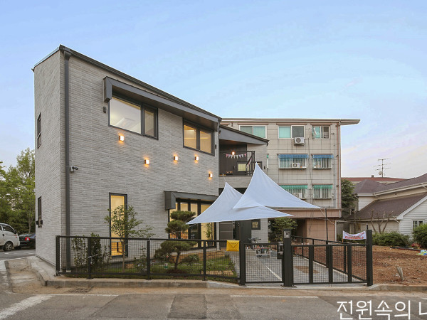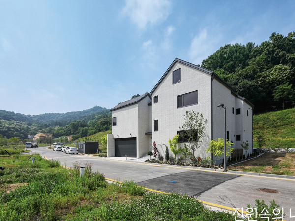 건축설계는 계획설계, 기본설계, 실시설계로 이어진다. 대지 여건을 고려한 배치부터 공간의 풍성함을 결정짓는 단면, 세대수와 가족의 취향을 반영하는 평면 계획 단계에서 건축가의 다양한 아이디어를 엿보는 기회를 가져본다.HOUSE PLAN대지위치≫ 경기도 화성시 동탄 지역지구≫ 제1종일반주거지역, 제1종 지구단위계획구역 대지면적≫ 223.9m2(67.73평) | 건물규모≫ 지상 2층 건축면적≫ 77.86m2(23.55평) 연면적≫ 148.43m2(44.90평 / 1층 77.86m2, 2층 70.57m2) 건폐율≫ 34.77%(법정 60%) | 용적률≫ 66.30%(법정 150%) 주차대수≫ 총 2대 최고높이≫ 7.5m 구조≫ 기초 - 철근콘크리트 매트기초 / 지상 - 경량목구조 외부마감재≫ 치장벽돌, 테라코 지붕마감재≫ 컬러강판SITE & DIAGRAM대지는 기반 시설이 고루 잘 갖추어진 택지개 발지구의 양호한 환경을 갖췄다. 북측 보행로와 2면 도로가 맞닿은 코너에 위치한다. 도로로 노출되어 있는 파사드는 영롱 쌓기, 가로로 긴 창과 같은 건축적 요소들을 통해 개방감과 프라이버시를 동시에 확보하는 역할을 하도록 했다.FAMILY건축주는 5인 가족이 부족함 없이 지낼 공간과 프라이버시가 보장 되면서도 오픈된 공간 구조를 원했다. 늘 그렇듯 빠듯한 예산으로 시작했다. 100년을 바라보고 짓는 집이니만큼 한정된 예산에서 어느 정도의 효과를 구현할 것인가와 건축주의 삶에 맞춘 편한 공간을 얼마나 구현할 것인가에 대해 고민했다.INTERIOR하나의 공간으로 통합된 거실과 주방.공간의 확장 |어느 순간부터 사람들은 아파트와 같이 내부로만 이루어진 공간 구조를 편한 것으로 인식하고 있다. 이 주택은 1층의 거실과 복도의 커다란 창을 통해 마당으로 공간을 확장하고 내외부의 소통이 가능하도록 했다. 마당에서 가족들은 다양한 활동을 하며 소통의 시간을 갖게 될 것이다. 더불어 이웃과의 관계를 위한 공간으로도 활용되기를 기대한다.거실의 커다란 창을 통해 외부로 공간의 확장이 가능하다.적절한 배치 |건축주의 라이프스타일, 대지 여건, 주변 환경 등을 고려하여 적절한 구획을 결정했다. 정사각형 대지의 코너에 현관을 두어 진·출입의 편의성을 높이고 건축주의 요구 조건에 의해 나열된 프로그램들은 자연스럽게 수평 수직으로 나누어 배치했다. 1층은 거실과 주방 및 팬트리 마스터룸과 드레스룸으로 구성하였고, 2층은 자녀방으로 구성했다.마당과 남쪽으로 낸 창은 실내로 풍경과 빛을 들인다.심플한 디자인 |주변과 어우러지기 위해 건물의 매스는 심플하며 단일된 톤을 추구하였다. 내부는 화이트로 심플하고 차분한 느낌을 주고, 목재로 친근감과 따뜻함을 더하였다. 경사지붕으로 외관에 포인트를 주고 건물고의 변화에 따른 공간감을 제공하였다. ‘ㄱ’자형 배치를 통해 남향을 극대화하고 집의 모든 시선과 채광은 남쪽의 마당을 향하도록 계획하였다.경사 지붕 형태는 아이들에게 동심과 창의력을 키우는 공간이 된다.PLAN완만한 경사지붕의 끝에 꺾임을 주어 다양한 건물고의 공간감을 제공한다.건축가이재승_공유공간건축사사무소경기대학교 건축전문대학원을 졸업하고 설계와 시공에서 실무 경험을 쌓았다. 공유공간은 개인의 삶에서 일어날 수 있는 공유 경험들을 프로파일 연관성 시퀀스를 통해 다양한 관계 설정을 시도하고 나 외에 타인, 인간과 자연이 모두 건강한 환경의 건축을 더 많은 사람들이 누릴 수 있는 건축문화를 지향한다. 다수의 주택 설계를 통하여 삶을 설계하는 일에 주목하고 있다.031-302-8951|www.sharespace20.com구성_편집부ⓒ월간 전원속의 내집/ Vol.269www.uujj.co.kr월간 <전원속의 내집>의 기사 저작권은 (주)주택문화사에 있습니다. 무단전재, 복사, 배포는 저작권법에 위배되오니 자제해주시기 바랍니다.