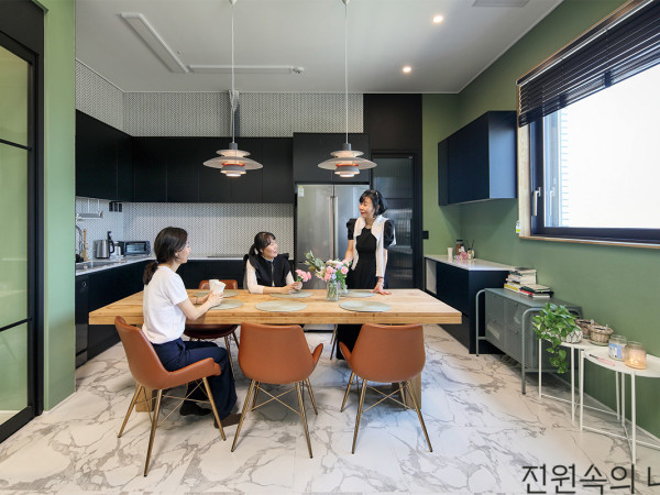 코로나19로 인해 집에 대한 가치가 새롭게 정의되고 있다. 안전함 속에서 삶의 주체가 ‘나와 가족’으로 더 분명해진 삶. 불특정 다수와 접하는 공동주택을 벗어나 가족끼리 모여 사는 집을 지은 이유다.충북 청주의 복합산업단지 테크노폴리스에는 주거와 상가를 위한 일반 택지가 함께 자리한다. 주택과 근린생활시설이 차곡차곡 들어선 동네를 걷다보면 유독 눈에 띄는 건물들이 있다. 일관성 있는 디자인으로 마을 풍경을 이끄는 10채가 넘는 집들. 이 ‘스튜디오 시리즈’를 기획ㆍ시공한 곳은 청주를 기반으로 활동하는 디자인큐브종합건설이다.건설사의 김성미 대표 역시 2년 전, 테크노폴리스의 대로변 필지를 구입해 집을 지었다. 많은 이의 보금자리를 만드는 일을 하는 그녀도 정작 아파트에 살았던 터다. 오래 품었던 꿈을 현실로 옮기고자 마음 먹고, 제일 먼저 인근 아파트에 살던 여동생 가족들을 불러모았다.“천편일률적으로 지어진 아파트를 벗어나 층을 나누어 같이 살자고 했죠. 무리한 대출이자, 불필요한 관리비, 괴로운 층간소음 등 모든 것을 피해 소소한 행복을 찾아보자는 심정으로 세 자매가 뭉쳤습니다. 물론, 각자의 사생활은 서로 존중한다는 조건으로요.”4층 언니 집에 모인 세 자매. 바쁜 일상에도 짬을 내 얼굴을 마주할 수 있어서 가족간 사이는 더 돈독해졌다.아이보리색 벽돌에 줄눈 그대로의 색을 매치해 견고해 보이는 주택 외관. 오래 보아도 질리지 않는 스튜디오 시리즈의 일관성 있는 디자인이다.필로티 구조지만 가림벽을 세워 차폐와 안정감을 높이는 효과를 냈다.SECTION ① 홀 ② 보조주방 ③ 거실 ④ 화장실 ⑤ 방 ⑥ 안방 ⑦ 드레스룸 ⑧ 현관 ⑨ 주방 ⑩ 발코니 ⑪ 세탁실 ⑫ 창고 ⑬ 침실 ⑭ 테라스 ⑮ 파우더룸 주차장김성미 대표의 스튜디오 역시 단지 내 다른 시리즈 건물처럼 1층은 주차장과 출입구로 구성되고 2층부터 4층까지 세대를 나눈 다세대주택이다. 다른 점은 전 층을 가족끼리만 공유한다는 것. 코로나19 시대, 엘리베이터도 가족끼리 쓰기 때문에 불안한 마음이 덜 하고, 층간소음으로 인한 걱정도 없다. 세대별 완벽한 분리로 사생활은 보호되지만, 가족 간 애정은 날로 두터워진다.HOUSE PLAN대지위치≫ 충청북도 청주시 흥덕구대지면적≫ 265m2(80.16평)건물규모≫ 지상 4층건축면적≫ 158.88m2(48.06평) | 연면적≫ 410.55m2(124.19평)건폐율≫ 59.95%(법정 60%) | 용적률≫ 154.92%(법정 200%)주차대수≫ 5대최고높이≫ 17.3m구조≫ 철근콘크리트조단열재≫ 비드법단열재 가등급 2종3호 125mm, 175mm, 220mm외부마감재≫ 외벽 –점토벽돌, 스터코플렉스 / 지붕 – 컬러강판창호재≫ LG하우시스 시스템창호에너지원≫ 도시가스 | 조경≫ 충청조경전기·기계≫ 오션전기 | 설비≫ 대원이엔지설계≫ ㈜나우건축사사무소시공≫ 디자인큐브종합건설㈜ 043-283-7715www.design-cube.co.kr각 세대 현관은 유리 중문 너머 중정을 향해 발코니창을 내어 시선의 막힘이 없다.따뜻한 분위기로 식구들을 맞는 1층 공용 로비. / 생활 편의를 위한 엘리베이터.높은 층고에 상부창이 돋보이는 4층 거실. 원하는 만큼 창을 내어 주택에 사는 특별한 기쁨을 누리고 있다.“양파 있는 사람 누구? 오늘 떡볶이 하는데 먹을 사람? 이런 내용으로 단톡을 해요. 다들 맞벌이라 바쁜 일상 속에서 급한 일이 생기면 서로 아이도 맡길 수 있으니 너무 좋죠.”4층 언니 집에 모인 자매들이 입을 모아 말한다. 이미 오랜 세월 따로 살아왔고 각자의 생활 방식도 다르지만, 이토록 즐거움만 나눌 수 있는 비결은 특화된 설계 덕분이다. 각 세대는 독립적인 출입구를 갖고 모든 층은 ㄷ자형 중정으로 차별 없이 햇빛을 들인다. 보통의 수익형 부동산은 건축비용을 최소화하기 위해 층고가 대부분 2.4m를 넘지 않지만, 이들의 집은 2.7~3.3m까지 층고를 높여 쾌적한 실내 공간을 이뤘다.각 세대 실내 구조는 동일하지만, 인테리어 스타일은 제각각이다. 성인 자녀를 둔 4층 큰 언니집은 블랙을 강조한 실내 마감으로, 3층 둘째 네는 화초가 많은 내추럴한 인테리어, 2층 막내집은 어린 자녀의 취향에 맞춰 화사하고 밝게 꾸몄다. 반면에 세대 모두 정리와 수납을 위한 철저한 공간 기획은 동일하다. 조리대가 따로 있는 보조 주방과 복도에 감춰진 세탁실, 미니멀한 침실에 딸린 널찍한 드레스룸 등 살림의 편의를 높이는 기본 계획이 뚜렷하게 돋보인다.다락은 유리난간으로 개방감을 더했다. 주방 뒤편 수납의 역할을 담당하는 보조주방이 딸려 있다.ㄷ자 형태의 매스는 같은 면적의 인접 대지에 비해 건축물의 볼륨이 커 보이는 효과가 있다.음악을 좋아하는 아들을 위한 작업실.“여자로서 보는 집은 아무래도 접근이 달라요. 보여주는 집보다는 살면서 본인이 행복한 집을 찾아야 해요. 디자인 의뢰를 받을 때도 무조건 현재 살고 계신 집을 찾아가 라이프스타일을 직접 파악하는 것이 먼저예요. 그래야 생활 패턴을 파악하고 새 집에 반영할 수 있지요.”김 대표가 10여 년 넘게 건물을 지어오면서 깨달은 철학이다.4층 세대는 높은 층고의 거실과 오픈된 대면형 주방으로 실제 면적보다 훨씬 넓어 보인다. 다락방은 구획을 나누어 수납 공간과 음