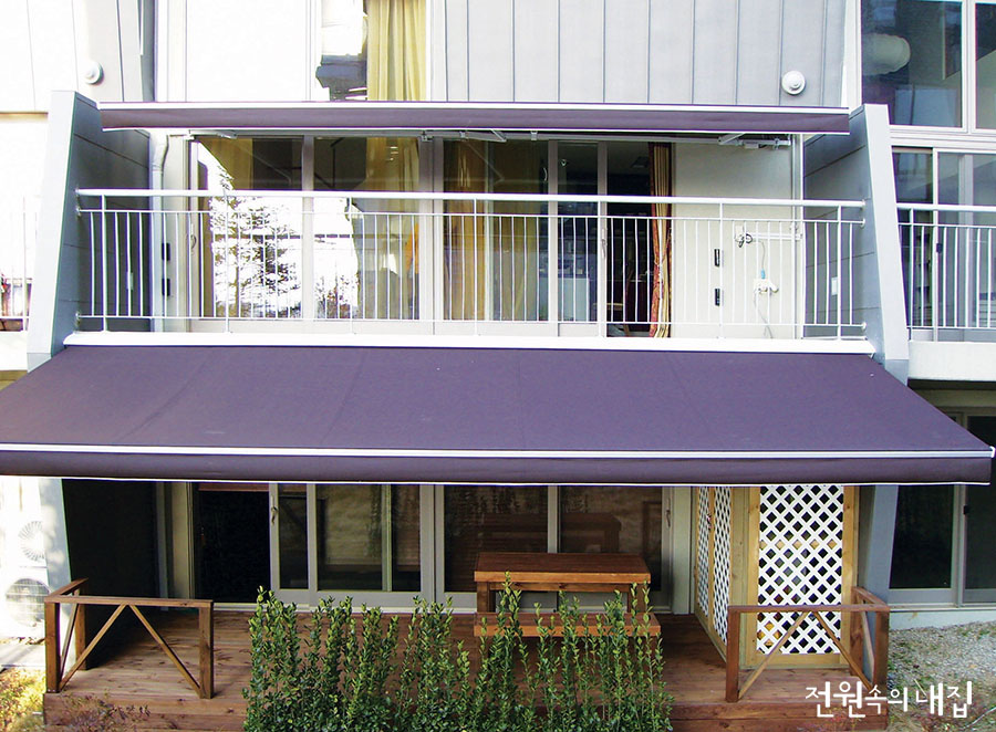 노천 문화가 발달한 유럽에서 어닝은 일반 주택에서도 애용하는 아이템이다. 우리나라 말로는 ‘차양막’인데, 이름 그대로 햇빛을 가려주는 용도로 쓰인다. 최근에는 방수, 발수 기능까지 더해져 날씨 변화와 관계없이 건물 실내에서 야외로 활동 범위를 넓히는 목적뿐 아니라, 건축물에 미적 감각을 더하는 요소로도 주목받고 있다. 국내에서는 그 역사가 오래되지 않았지만, 전원생활의 기쁨을 온전히 누리기 위해 어닝을 찾는 이들이 점차 늘어나는 추세다. 향긋한 봄바람이 코끝을 간질이는 계절, 올해는 우리 집 마당에서 한가로이 여유를 만끽해보자.