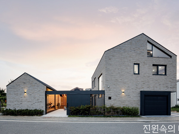 동일한 주택을 병렬로 구성한, 일명 땅콩집이 즐비하게 지어진 마을에 조금 특별한 집 한 채가 들어섰다. 단독주택에서의 일상과 여행지에서의 휴식이 자연스럽게 조화를 이룬 곳. 평소 꿈꿔왔던 모든 것이 다섯 식구의 눈앞에 나타나 주었다.‘자연’을 마음껏 즐길 수 있는 우리만의 집을 짓자!아이가 없던 신혼 때부터 캠핑과 낚시를 다니며 자연을 만끽하는 삶을 즐겨왔다는 권재현, 박지혜 씨 부부. 시간이 흘러 부모가 된 순간부턴 아웃도어 라이프는 그저 남의 집 이야기로 추억하고 동경할 뿐, 아들 셋을 데리고 집 밖으로 나갈 엄두는 내지도 못하는 상황이었다. 그러다 문득 ‘우리가 그토록 좋아하던 자연을 삶 가까이에 두고 살면 얼마나 좋을까’란 생각이 들었다고 한다.1,2,4 - 담장 설치가 불가능한 지구단위 계획구역의 지침을 해결하고자 본채와 별채를 각각 부지 양 끝에 배치하고, 그 사이를 회랑과 벽체로 연결해 마당의 프라이버시를 확보했다.그동안 집에만 콕 박혀 지낸 아이들에게 더 늦기 전 흙과 잔디를 밟으며 계절을 느끼고 마음껏 뛰놀 수 있게 해주고 싶었다. 그렇게 두 사람은 은퇴 후 전원에 집 짓고 살자 했던 계획을 10년 이상 앞당기기로 했다. 당장은 경제적인 부담이 있겠지만, 지금이 아니면 다시는 기회가 오지 않을 것만 같았다.3 - 별채 바로 앞에는 데크 공간을 두어 날씨가 좋은 날이면 캠핑용품을 꺼내놓고 마당을 바라보며 홈캠핑을 즐긴다. 비가 내려도 지붕이 있어 빗소리를 들으며 운치 있는 저녁 시간을 가질 수 있다.| PLAN |1 현관 2 차고 3 거실 4 식당 5 주방 6 다용도실 7 욕실 8 주차장 9 데크 10 중앙마당 11 회랑 12 별채(캐빈) 13 침실 14 놀이방 15 드레스룸 16 세탁실 17 서재 18 다락1F - 149.33㎡2F - 85.94㎡ ATTIC- 75.93㎡| HOUSE PLAN |대지위치경기도 김포시 |대지면적326.30㎡(98.70평)건물규모지상 2층 + 다락 |거주인원5명(부부 + 자녀 3)건축면적153.51㎡(46.43평) |연면적235.27㎡(71.16평)건폐율49.05% |용적률66.24% |주차대수3대 |최고높이9.11m구조기초 – 철근콘크리트 / 지상 – 경량목구조 외벽 2×6 구조목 / 지붕 2×10 구조목단열재본채 – T50, T100 가등급 단열재(기초), 그라스울 T140(주건축물) / 별채 – T235 KNAUP, RSI 6.5외부마감재본채 – 백고벽돌, 스터코, T0.7 컬러강판, T39 로이삼중유리 / 별채 – 백고벽돌담장재아연도강판 |창호재이플러스 창호(하단 1면 자작 합판 마감)에너지원도시가스 |전기·기계·설비코담기술단 |구조설계(내진)금나구조내부마감재벽 – LG하우시스 벽지, 제일벽지 / 바닥 – 지복득마루, 노바강마루욕실 및 주방 타일STARON |수전 등 욕실기기㈜바스디포주방 가구·붙박이장우림퍼니처 제작 가구조명피노 펜던트, 스톤 펜던트, 무슈 LED 매입등 10W계단재·난간자작 합판 마감 + 유리 난간 / 다락 – 철제 계단 + 환봉 난간현관문성우스타게이트 |중문위드지스 도어 |방문자작 합판 도어데크재방킬라이, 포천석 |배선기구진흥전기 V시리즈 베리우스시공㈜시스홈종합건설설계㈜유타건축사사무소 김창균, 최병용, 정재이 02-556-6903 www.utaa.co.kr총공사비4억3천만원5 - 현관에서 바라본 식당과 마당 모습6 - 내부는 세 개 레벨의 공용 공간을 가진다. 스킵플로어 개념이 적용된 반쯤 떠 있는 거실은 1층 주방·식당과 소통하며, 2층 서가와도 자연스럽게 이어진다.결심이 선 이후엔 다른 건축주들처럼 살 곳을 찾아 열심히 발품을 팔았고, ‘땅은 만나는 것’이라는 누군가의 말처럼 오랜 기다림 끝에 가족이 원하는 조건과 상황에 딱 맞는 땅을 마주하게 되었다. 물론 이게 끝은 아니었다. 몇 군데 건축사사무소와의 미팅을 통해 들은 실제 집을 짓는 데 들어가는 예산, 그로 인해 포기해야 하는 것들에 관한 많은 이야기는 현실이란 높은 벽을 실감하게 했다.“그래도 어딘가에는 우리 꿈을 최대한 반영해줄 건축가가 있지 않을까 하는 희망이 있었는데, 그때 유타건축사사무소 김창균 소장님을 만났어요. 나름의 로망을 마구 펼쳐놓는 무모한 예비 건축주의 바람을 온전히 다 들어주시고 어떻게 해야 할지 방향도 잘 잡아주셨죠.”7 - 짙은 컬러의 붙박이장과 아일랜드로 꾸민 주방. 회랑을 거쳐 별채로 바로 통할 수 있게 동선을 계획해주었다. 이처럼 내부는 자연스럽게 마당과 관계 맺으며 공간이 확장되는 효과를 가진다.8,9 - 2층 침실은 아직 아이들이 어린 점을 감안하여 여럿이 넓게 사용하면서 다양한 활동을 담을 수 있도록 가변형 벽체를 설치했다. 대부분의 문은 포켓 도어로 깔끔하게 마감해 불필요하게 시선이 갈 만한 요소를 배제하고, 문을 여닫기 위해 남겨두어야 하는 공간도 최소화했다.건축비 마련을 위해 서울의 34평 아파트를 처분하고 경기도 외곽에서 1년을 전세로 살았지만, 한창 에너지 넘치는 아들들이 눈치 보지 않고 뛰노는 모습을 상상하는 것만으로도 완공을 기다리는 내내 행복했다는 부부다.10 - 박공의 지붕선이 그대로 드러나는 아늑하고 넓은 다락집은 비교적 여유 있는 부지에 건물을 짓고, 그사이 자연스럽게 남겨진 넓은 마당을 아웃도어 활동을 위한 곳 등으로 활용하면서 내·외부 공간의 연계를 높였다. 특히 마당을 감싸는 벽체는 루버 형식으로 처리하