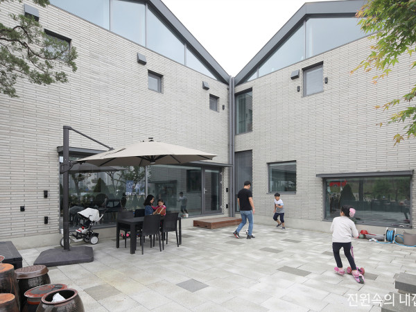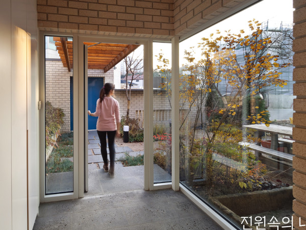덩치 큰 판교의 집들 속에서 파란 대문의 소소원은 작지만 당당한 존재감을 드러낸다. 담장 너머 펼쳐진 넓은 마당은 꽃과 나무로 풍성하게 채웠다.남쪽으로 마당을 두고, 그 앞에 대문과 창고, 화단이 있는 ‘건축화된 담장’을 두어 생활의 모습이 밖으로 드러나지 않게 하였다소소원의 전경. 집 앞의 넓은 마당과 2층 작은 마당, 돌출된 조형이 조화롭다.파란 대문을 들어서면 마당을 가로지르는 파고라와 나무그늘이 눈길을 끈다.HOUSE PLAN대지위치 : 경기도 성남시 분당구 판교로 | 대지면적 : 227.8㎡(68.90평) 건물규모 : 지상 2층, 다락 | 건축면적 : 107.15㎡(32.41평) 연면적 : 175.04㎡(52.94평) | 건폐율 : 47.03% / 용적률 : 76.83% 주차대수 : 2대 / 최고높이 : 8.7m 공법 : 기초 - 철근콘크리트 매트기초, 지상 – 경량목구조 구조재 : 벽 - 2×6 구조목 / 지붕 - 2×10 구조목 지붕마감재 : 컬러강판 | 단열재 : 그라스울 24K 240, 140, 90㎜ 외벽마감재 : 치장벽돌 | 창호재 : PVC 시스템창(융기창호) 설계 : ㈜구가도시건축 건축사사무소 시공 : ㈜스튜가목조건축연구소2층에 누마루를 두고, 그 앞에 걸터앉아 마당을 볼 수 있는 자리를 마련했다. 그 위로 다락이 보인다.네모난 모양의 1층은 마당과 1:1로 ‘크게’ 만난다. 단순한 느낌의 실내공간은 거실에서 식당과 주방, 2층으로 올라가는 계단이 공간이 흐르듯 자연스럽게 연결되도록 하였다. 잘 보면 그 흐름 속에 ‘두 개의 박스’가 있음을 알 수 있다. 하나는 작업실로, 입식의 책상과 좌식의 마루가 같이 있는 하얀 방이다. 거실을 거쳐 마당을 느낄 수 있도록 한지 창을 열고 닫을 수 있게 계획했다.다른 하나는 마당으로 돌출한 현관이다. 계획을 하면서 현관을 안으로 집어넣으면 외관이 정리되는 반면, 내부는 복잡해져서 지금과 같은 여유롭고 흐르는 듯한 공간감을 얻기 어려웠다. 오히려 ‘열린 현관’을 생각하며 투명한 현관을 마당에 내밀어, 마당을 보며 드나들게 하였다.여기에 위로 2층 누마루를 두어, 누마루는 누마루대로 주변을 둘러볼 수 있게 계획했다. 판교에 지어지는 집들은 대체로 덩치가 크다. 지하층을 가능한 지면 위로 올리고, 지을 수 있는 최대한으로 지은 것이 많다. 그에 비하면 소소원은 1층은 대지의 반인 35평, 2층은 20평을 짓고 남쪽으로 넓은 마당을 둔 까닭에 밖에서 보면 주변의 집보다 작아 보인다.단순한 느낌으로 설계한 내부공간. 거실에서 식당과 주방, 2층으로 가는 계단은 공간이 흐르듯, 자연스럽게 이어지게 계획했다.목재로 마감한 천장이 멋스럽게 다가온다.INTERIOR SOURCE내벽 마감재 : 친환경 수성페인트 | 바닥재 : 신명원목마루 욕실 및 주방 타일 : 윤현상재, 상아타일 | 수전 등 욕실기기 : 아메리칸스탠다드, 대림, 로얄토토 주방 가구 : 리첸 | 조명 : 스칸디나비안디자인센터, 을지로조명 계단재 : ASH 집성판 | 현관문 : 이건 시스템창호 방문 : 도장도어 | 붙박이장 : 리첸집은 작지만 마당과 같이 경험하는 공간은 작지 않고 오히려 풍성하다. 파란 대문을 들어서면 나무 그늘이 덮인 마당을 가로질러 목재 파고라가 나타난다. 파고라는 밖에서 활동할 때 쉘터로 역할한다. 거실과 마당 사이에도 처마를 두어 계절에 따라 햇빛을 조절한다. 단순하지만 이러한 ‘장치들’이 마당을 즐기는 삶의 바탕이 되리라 보았다. 2층은 네모난 바탕에 한쪽으로 작은 마당을 두고 ‘ㄱ’자로 배치해 부부침실, 복도, 누마루에서 보거나 나갈 수 있게 했다. 1층 큰 마당과 2층 작은 마당도 시각적으로 연결되어 식구들끼리 위, 아래 따로 있어도 서로 소통하도록 했다.2층 위쪽에 있는 다락. 다른 한쪽엔 창고도 있어, 여분의 공간으로 수납, 여가, 환기 등 다양한 역할을 한다.작업실에서 바라본 마당. 3짝의 한지창을 완전히 열거나 닫아 기분에 맞게 빛과 풍경을 조절할 수 있다.소소원을 설계하면서 ‘한눈에 띄는 독특함’보다 동네에 어울리는 ‘집다운 집’을 지으려 했다. 개성이 강한 동네 속에서 튀지 않게, 조형과 구성에서 좋은 틀을 갖추어 다양한 삶의 요구를 담아내는 그런 집을 생각했다. 그런데 결과적으론 차분함과 평범함이 오히려 더 달라 보이는 아이러니한 풍경을 낳게 됐다. 개성과 욕망이 얽혀 있는 복잡한 상황 속에서 보편적인 집의 해답을 찾으려는 것이 얼마나 의미 있는 일인지 좀 더 지켜봐야 할 것 같다.마당으로 돌출된 ‘열려진 현관’. 투명하게 외피를 둘러 마당을 느끼며 자연스럽게 드나들 수 있다.요즘 소소원 안주인은 틈을 내어 가드닝 스쿨에 다닌다고 했다. ‘마당이 있는 삶’에서 나아가 ‘정원을 가꾸는 삶’을 살고 있다. 이름도 모르던 꽃과 나무들이 소소원 마당에 심어져 이름을 알리고 새로운 활기를 불어넣고 있다. 집이 사람의 삶을 바꿀 수 있다는 걸 소소원을 통해 배운다. 고맙고 다행한 일이다. <글 · 조정구>건축가_ 조정구1966년 서울에서 태어나 서울대 건축학과 및 동대학원을 졸업하고, 일본 동경대학교 박사과정 수료 후 2000년부터 구가도시건축을 설립하여 꾸준히 작업을 진행하고 있다. ‘우리 삶과 가까운 보편적인 건축’에 주제를 두고 개인주택부터 작업실, 갤러리, 근린생활 시설, 병원, 호텔 등 우리 생활에