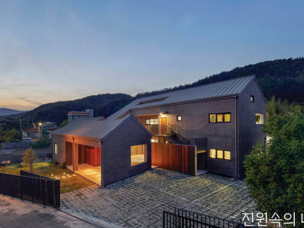 부산 기장 단독주택일곱 식구 대가족이 한 지붕 아래 모였다. 사소한 것도 함께 나눌 수 있는 지금, 가족들의 웃음소리는 매일 담장 밖으로 피어오른다.1 해가 진 후 주택의 전경. 입구 쪽 가벽과 중정으로 인해 공간마다 다른 분위기를 느낄 수 있다.2 산세를 닮은 집의 형태와 브라운 계열의 롱브릭 타일 외장재가 집의 배경이 되는 마을과 잘 어우러진다.“엄마, 뛰어도 돼?”‘뛰지 마라’, ‘살살 걸어라’ 평소 무심하게 뱉었던 말이 아이에게는 아무렇지 않은 게 아니었나 보다. 주택에 사시는 할머니 댁에 갈 때마다 눈치 보며 뛰어도 되는지 묻고, 허락과 동시에 너무 신나 하는 아이를 보며 언젠가 꼭 집을 지어야겠다 확신이 섰다는 건축주.“아파트에서만 거주해서 늘 주택에 대한 로망이 있었어요. 그리고 이종사촌인 동갑내기 두 아이를 위해 동생 가족과 함께 살면 더 좋겠다는 생각도 했고요.”머릿속 상상을 어떻게 풀어갈지조차 막막하던 그때, ‘주말마다 가는 할머니 집 자리에 새로 집을 짓고, 할머니와 동생네까지 다 같이 모여 살면 어떻겠냐’는 친정아버지의 제안은 꿈에 그리던 집짓기 프로젝트를 가능케 했다.3 할머니와 두 손녀 가족이 사는 만큼 각 가정의 프라이버시도 신경 써 평면을 계획했다. 사진상 공용 공간인 중정을 중심으로 좌측은 할머니가, 우측엔 손녀 가족이 머문다.HOUSE PLAN대지위치▶ 부산광역시 기장군│대지면적▶ 674.00㎡(203.88평)건물규모▶ 지상 2층 + 다락거주인원▶ 7명(할머니 + 큰 손녀 부부(자녀 1) + 작은 손녀 부부(자녀 1))건축면적▶ 201.80㎡(61.04평)│연면적▶ 296.78㎡(89.77평)건폐율▶ 35.58%(법정 60% 이하)│용적률▶ 50.03%(법정 180% 이하)주차대수▶ 4대 │최고높이▶ 9.34m구조▶ 기초 – 철근콘크리트 줄기초 / 지상 – 경량목구조 외벽 2×6 구조목 + 내벽 S.P.F 구조목 / 지붕 – 2×10 구조목단열재▶ 그라스울, 비드법단열재 가등급외부마감재▶ 벽 – 롱브릭 타일(브라운 색상), 방킬라이 목재 / 지붕 – 0.7T 알루징크창호재▶ 게알란 3중 시스템창호 (Sepia Brown)철물하드웨어▶ 심슨스트롱타이, 탐린, 메가타이설계담당▶ 권정열, 박주석│설계▶ ㈜하눌주택시공▶ ㈜하눌주택 / ㈜하눌종합건설INTERIOR SOURCE내부마감재▶ 벽 – LG하우시스 지아패브릭 벽지 / 바닥 – 구정마루 강마루 오크(1층), 구정마루 천연온돌마루 티크스카치(2층)욕실 및 주방 타일▶ 수입 타일(포세린, 테라조)수전 등 욕실기기▶ 대림바스 │주방 가구·붙박이장▶ 한샘조명▶ 르위켄, 비츠조명, 루체테│계단재·난간▶ 멀바우 + 평철 난간현관문▶ AEVO 에이보 패시브 현관문│중문▶ 제작 목재 중문방문▶ 예림도어 ABS 벨로체 L-600M│데크재▶ 화강석PLANATTIC - 13.01㎡1F – 170.73㎡ / 2F – 113.04㎡① 현관 ② 거실 ③ 주방 ④ 전실 ⑤ 욕실 ⑥ 안방 ⑦ 자녀방 ⑧ 다용도실 ⑨ 할머니방 ⑩ 중정 ⑪ 드레스룸 ⑫ 다락인터넷을 꼼꼼히 검색하며 선별한 지역 업체 몇 군데를 찾아 견적을 받았지만, 가격과 디자인까지 만족할 업체를 만나기란 좀처럼 쉽지 않았다. 그러다 시야를 조금 넓혀 서울·경기권 업체를 물색해보았고, 그중 동생과 동시에 마음에 든 업체가 바로 ‘하눌주택’이었다.“이 지역 기반이 아니라는 위험을 감수하고도 선택할 만큼 그동안 설계·시공한 주택 사례들이 정말 좋았어요. 전화 한 통에 서울에서 부산까지 한걸음에 달려와 주셨고, 준비하신 프로젝트를 살펴보니 더욱 신뢰가 가더라고요.”4 불편함이 없도록 깔끔하게 꾸민 할머니의 공간5 우드와 화이트 톤으로 인테리어한 큰 손녀네. 집에서 가장 넓게 구성한 거실은 가족들의 모임의 장소가 되어준다.한 집에 할머니와 두 손녀딸 가족이라는 흔치 않은 구성원. 한정된 대지 위에 세 가정 모두 만족할 수 있는 집이 세워지기 위해선 구조적·디자인적으로 많은 아이디어가 요구되었다. 또한, 각자의 프라이버시도 중요했지만, 이 집에서 놓치지 말아야 할 ‘함께’라는 부분 역시 간과할 수 없었다.6 주방 옆에는 마당으로 나갈 수 있는 별도의 문을 두어 동선의 편의를 배려했다.기존 구옥의 철거를 시작으로, 가족의 요구사항을 하나씩 반영하여 쌓아 올린 집이 5개월 후 그 모습을 드러냈다. 할머니와 어린 자녀가 있는 집이라 큰 고민 없이 결정한 친환경적인 2층 목조주택. 특히 브라운 계열의 롱브릭으로 마감한 외벽은 주변 경치와의 어울림 및 추후 유지 관리의 편리함까지 배려한 설계자의 의도가 엿보이는 부분이다.DIAGRAMSPACE POINTPOINT 1 윈도우시트마당이 보이는 큰 창 앞으로 책을 수납할 수 있는 윈도우시트를 놓았다. 집안일 후 기대앉아 풍경을 즐기기에도 그만이다.POINT 2 외부 세면대밖에서 뛰놀다 들어온 아이들의 사용을 고려해 세면대를 욕실 외부로 분리하여 건식으로 만들었다.POINT 3 아늑한 다락경사지붕 아래 공간을 활용하여 다락을 배치했다. 아이들을 위해 설계 초기부터 요청했던 공간이다.7 상부장을 없애고 선반만으로 단정하게 완성한 큰 손녀네 주방. 왼쪽 다용도실을 통해 할머니 공간과 한 집처럼 이어진다.이 주택만의 특징을 꼽자면 집 앞뒤로 놓인 ‘마당’이다. 아이들이 안전하게 뛰놀 수 있는 곳과 어른들이