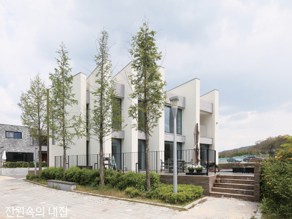 두 산이 내려다보는 고즈넉하고 아늑한 마을, 일곱 채의 스틸하우스가 평온한 일상을 담아낸다.‘종교를 바탕으로 한 자유로운 친목 관계’로 본인들을 소개한 건축주 이해진, 최정숙, 이귀순 씨. 그들을 포함해 어울린 타운하우스의 일곱 세대는 함께 뜻을 모아 집을 짓고 얼마 전 서로 이웃이 되었다.손주가 뛰어놀 수 있는 공간을 만들어주기 위해, 마음의 쉼을 얻기 위해, 전원생활의 꿈을 이루기 위해 각자 희망은 다양했지만, 집이라는 목표는 같았다. 삼인산과 병풍산이 배경을 이루는 이 담양 농촌에 그들은 땅을 구입하고 모임을 가지면서 천천히 생각을 구체화해 나갔다.2 포치를 넓게 빼 비나 눈이 오는 날에도 출입이 편리하다.HOUSE PLAN대지위치 ▶ 전라남도 담양군 | 대지면적 ▶ 658.0㎡(199.04평) 건물규모 ▶ 지상 2층 | 거주인원 ▶ 3명(부부 + 아들) 건축면적 ▶ 105.17㎡( 31.81평) | 연면적 ▶ 152.75㎡(46.20평) 건폐율 ▶ 15.98% | 용적률 ▶ 23.21% | 주차대수 ▶ 1대 | 최고높이 ▶ 7.10m 구조 ▶ 기초 – 철근콘크리트 매트기초 / 지상 –스틸스터드 140SL10(벽), 90TC10(지붕) 단열재 ▶ 그라스울 R19, 압출법보온판100mm, 경질우레탄폼, 네오폴 50mm 외부마감재 ▶ 외벽 - 스터코, 세라믹사이딩, 청고벽돌, 강화유리난간(2층) / 지붕 - 포스맥 창호재 ▶ 이건창호 27.25mm 진공 3중 유리(에너지효율 1등급) 에너지원 ▶ LPG(경동 나비엔 콘덴싱 가스보일러) | 조경 ▶ 건축주 직영 전기·기계 ▶ 태성전기 | 구조설계(내진) ▶ 프레임캐드 설계 ▶ 최부용갤러리하우스 시공 ▶ 그린홈예진 1833-4956 www.yejinhouse.comINTERIOR SOURCE내부마감재 ▶ 벽 - KCC 친환경 수성 페인트 / 바닥 - 동화자연마루 나투스 진 욕실 및 주방 타일 ▶ 동서 타일 | 수전 등 욕실기기 ▶ 동서 이누스 주방 가구 및 붙박이장 ▶ 한샘 | 계단재·난간 ▶ 애쉬 집성판 + 강화유리 현관문 ▶ 코렐시스템 도어 | 중문 ▶ 영림 3연동 도어 | 방문 ▶ 영림 ABS도어 데크재 ▶ 고흥석 30T4 천장을 오픈한 주방과 거실집을 짓기 전, 회원들은 여러 공법의 주택을 공부하고 때론 직접 다녀보며 비교했다. 해진 씨는 “전통한옥부터 목구조, 철근콘크리트 등 다양한 집과 시공사를 다녀봤고 여러 논의 끝에 내진성능과 단열 등에서 만족스러웠던 스틸하우스라는 결론에 도달했다”고 소회했다. 그 결과로 스틸하우스를 전문으로 하는 그린홈예진과 손을 잡았고 1년 전, ‘어울린’이라는 이름을 얻은 이 마을에 무사히 입주를 마쳤다.SECTION① 현관 ② 거실 ③ 주방·식당 ④ 부부침실 ⑤ 욕실 ⑥ 드레스룸 ⑦ 침실 ⑧ 가족실 ⑨ 복도 ⑩ 발코니 ⑪ 다용도실 ⑫ 보일러실PLAN1F – 96.86㎡ 2F – 55.8㎡5,6 화려한 무늬의 타일이 돋보이는 현관과 욕실은 모두 부정형이지만 동선에 불편함은 없다.주택은 너른 대지 위에 일곱 채가 놓였다. 바둑판같은 단조로운 단지 구성을 피하고 채광과 뷰를 극대화하기 위해 부드러운둔각이 진 긴 매스를 가졌다. 외관은 하얀 스터코 및 세라믹사이딩을 바탕으로 검은 세라믹사이딩을 적용해 블랙&화이트의 대비감 있는 포인트를 줬다. 각자 개성도 상황도 다른 일곱 가족이지만, 주택의 외관은 일곱 채가 거의 동일하다. 정숙 씨는 “일생에 한 번 있을 집짓기이기에 망설임도 많았다”면서도 “같은 구조와 외관을 갖춰 경제적인 시공성과 마을의 통일성을 갖추려 했다”는 설명을 덧붙였다. 그 대신 내부 인테리어와 정원에서는 각 가족의 개성이 더욱 두드러졌다고.7 코너창을 통해 넓게 정원을 조망할 수 있는 안방8 계단실 중간에 거실 방향으로 개구부를 내고 루버를 적용해 개방감을 줬다.주택 실내는 해진 씨의 안내를 받아 그녀의 집을 살펴볼 수 있었다. 꺾이는 부분에 자연스럽게 형성된 포치를 지나 실내로 들어서면 왼편으로 오픈된 천장의 주방과 거실을 만나게 된다. 처음 설계를 만날 때는 2층 활용 면적이 줄어들지 않을까 걱정했지만, 주택을 답사하면서 긍정적으로 선회했다. 해진 씨는 “사진으로 보는 것과 실제 주택에 들어가 보는 건 정말 큰 차이였다”면서 답사의 중요성을 강조했다.9 2층 가족실. 복도 끝과 중간에 테라스가 연결된 자녀 방이 놓였다.10 테라스와 연결되어있는 자녀방 창으로는 마을 텃밭 풍경이 가득 펼쳐진다.거실 반대편에는 프라이빗한 공간을 두었다. 1층에는 안방 및 욕실이, 2층에는 가족실과 두 아이들의 침실이 놓였다. 그중 한 방은 테라스와 연결되어 종종 티타임을 갖곤 한다.단열 성능은 마을 사람들이 핵심 가치로 둔만큼 크게 신경 썼다. 중단열과 외단열은 기본이고, 열교에 취약한 개구부 안에도 각각 단열을 보강했다. 그래서인지 산에서 내려오는 찬바람 때문에 겨울에는 꽤 춥다는 지역이지만, 지난겨울은 적어도 집에서는 전혀 추위를 모르고 살았다. 해진 씨는 “겨울에 LPG로 난방을 하는데도, 도시가스를 썼던 아파트보다 훨씬 비용이 쌌다”고 설명했다.PROCESS높은 구조 성능으로 알려진 스틸하우스도, 기초부터 방수, 단열까지 정확한 시공이 바탕이 되어야 그 성능을 발휘할 수 있다.A 버림 콘크리트 및 기초보 기초단열을 위한 단열재와 골조 하중을 감당하기 위한 기초보를 두고 기초 시공했다. B L앵커, 골조 체결