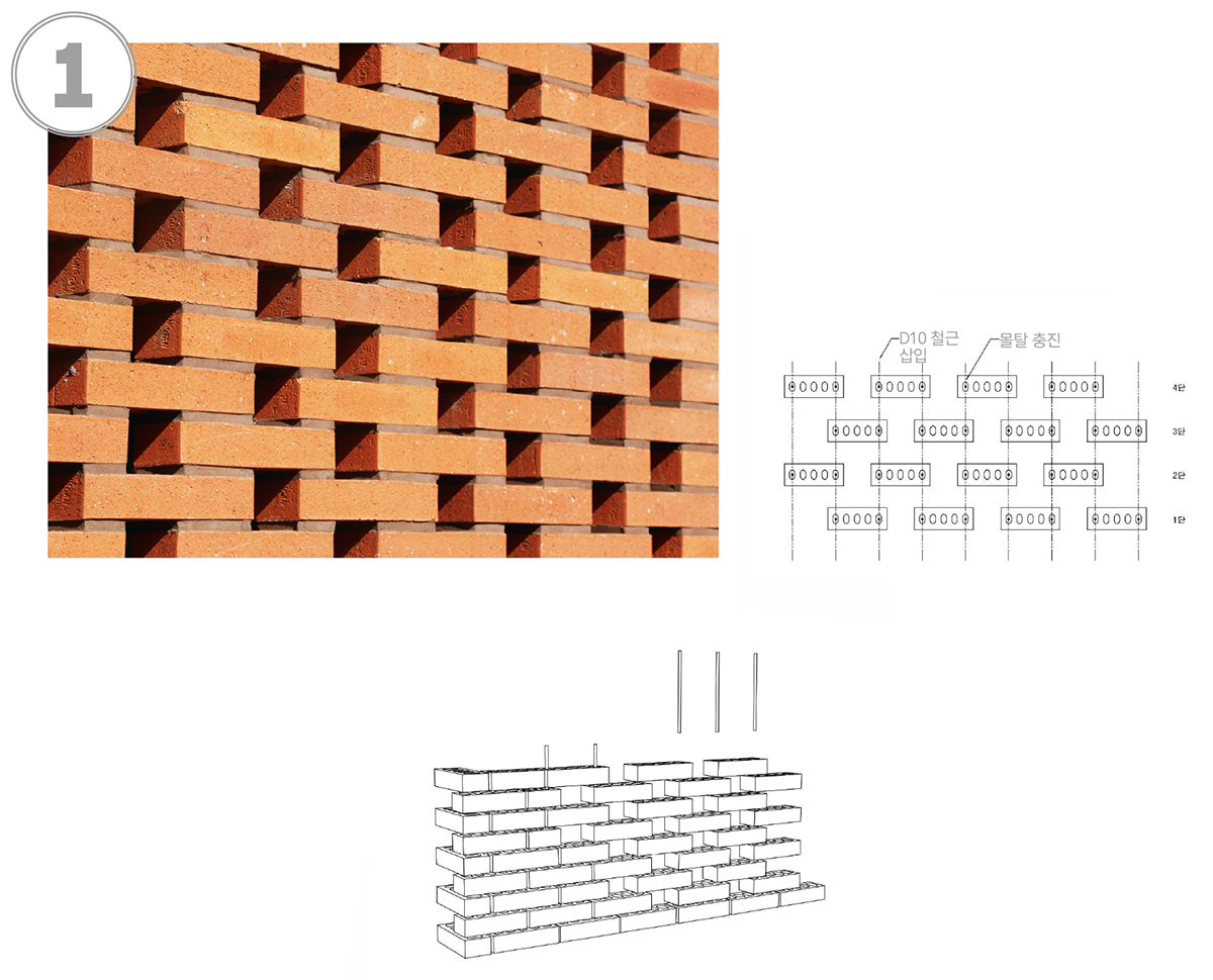 조적조의 근본적인 하자 요인인 수분을 조절하는 중요한 요소다. 벽 내부의 통기성을 높이고, 수분을 배출하는 역할을 해 외부로는 백화 현상을 줄이고, 내부로 우수가 침투하는 것을 막는다. 아래쪽 통풍구로 유입된 공기가 건물 벽체와 벽돌 조적 사이의 틈을 통해 상승해 상부 통풍구로 빠져나가는 순환 원리다. 이외에 조적 내부로 쌓이는 모르타르를 막아주는 스크린, 방수 처리를 위한 3중 방수지 등이 있다.