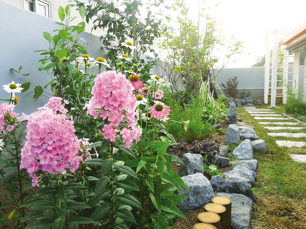 청정한 자연 환경이 건강에 도움을 준다는 상식을 직접 경험해본 사람은 드물다. 복잡한 도시생활 속에서 모두가 여유를 꿈꾸지만 실천에 옮기기는 쉽지 않은 까닭이다. 여기 건강을 위해 전원생활을 실현한 조용권 씨의 마당을 들여다보자. 취재 임수진 사진 변종석 ▲ 길게 뻗은 진입로를 지나면 하얀 대문 위에 자연스런 곡선형의 부드러우면서도 경쾌한 소나무가 손님을 맞이한다. 나무와 잔디가 잘 어우러진 마당에 나란히 디딤석을 깔아 동선을 유도하였다. ▲ 현관 좌우에 소정원을 만들어 계절마다 색색의 꽃을 보는 즐거움을 만끽하도록 했다. GARDEN PLAN 대지위치 : 경기도 가평군 가평읍 대지면적 : 925.68㎡(280평)조경면적 : 826.50㎡(250평)조경설계 : ㈜조경프라자 02-3679-4082 www.cmland.kr 식재 수목 교목류 -에메랄드그린, 반송, 공작단풍(청, 홍), 가브리소나무, 덜꿩나무, 선주목, 둥근주목, 눈주목 등관목류 - 목수국, 불도화, 산철쭉, 줄장미, 수양매화, 노랑조팝나무 등과실수 -매실나무, 자두나무, 앵두나무, 블루베리, 꽃사과, 배나무, 청매실 등지피초화 - 자란, 머위, 참두릅, 꽃잔디, 흰붓꽃, 배풍등, 애기범부채, 구절초, 분홍바늘꽃, 서양양귀비, 인쑥, 거미바위솔, 매발톱, 바이올렛 등 평범한 사람들처럼 서울 시내에서 바쁘게 생활하던 조용권 씨는 건강상의 이유로 가평의 한 요양원에서 넉 달 정도 휴식기를 갖게 되었다. 기대 이상으로 건강이 호전되자 공기 좋은 가평에 거주하기로 결심하였고, 용추계곡 인근에 부지를 구해 바로 겨울공사를 시작했다. 태어나 처음으로 지은 집이었지만 건축공사는 지인을 통해 무리 없이 진행되었다. 주변의 집들과 어우러지는 소담스런 주택이 완공되자 정원을 꾸미는 일이 남았다. 구청 등지에서 여러 업체를 소개받아 이야기를 나누고 견적도 받아보던 중, 풍성하고 깔끔한 디자인으로 소문난 조경프라자와 인연이 닿게 되었다. ▲ 한쪽 소정원 뒤쪽으로는 작은 텃밭을 꾸며 수확이 주는 기쁨을 더한다. ◀ 진입로 좌측에는 앵두, 매실, 자두 등의 유실수를 심어 봄에는 꽃을, 여름에는 과실이 자라는 정원을 만들고자 하였다. ▶ 컨트리 매너 블록과 자연석을 함께 시공해 화단마감 겸 의자로 사용한다. 수간 폭이 넓은 소나무가 넉넉한 그늘을 만들어준다. 마당의 가장 큰 특징은 컨트리 매너(Country Manor) 블록을 사용해 잔디마당을 감싸는 화단을 조성한 것이다. 이 블록은 거친 자연석 같은 질감의 고강도 콘크리트로 제작되어 주변의 분위기에 이질감 없이 녹아 든다. 길게 뻗은 진입부를 제외하면 정방형에 가까운 네모 반듯한 대지에 유선형 화단을 두고 꽃과 나무를 심어 자연스러움을 한껏 살린 것이다. 중앙의 잔디밭을 기준으로 대문과 벤치가 놓인 양 옆으로는 동선을 따라 디딤석을 길게 배치했다. 집 뒤쪽으로는 텃밭을 꾸려 하루에 두 번씩 물을 주는 게 정원주의 중요한 일과가 되었다. 계절마다 색색의 꽃을 피우기 위해 조경작업이 완료된 이후로도 5일장이나 인근의 화원을 꾸준히 방문하며 새로 심고 가꾸느라 그의 하루는 오늘도 분주하다. ※ 월간 <전원속의 내집> www.uujj.co.kr 본 콘텐츠의 저작권은 (주)주택문화사에 있으며, 이를 무단 이용하는 경우 저작권법 등에 따라 법적책임을 질 수 있습니다.
