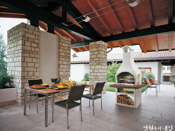 유난히 따뜻한 햇살이 내리쬐는 봄날, 아늑한 가족만의 정원 속에서 확실한 존재감을 드러낼 정통 이탈리안 바비큐 그릴과 화덕을 소개한다.구성 김연정 ▲ Cancun[칸쿤]어떤 제품이 출시되어 있을까?제품은 3가지로 분류된다. 그릴 제품, 그릴과 오븐이 결합된 제품, 그릴과 화덕이 결합된 제품 등이다. 먼저 그릴 제품은 그릴 판에 장작을 피우고 숯 또는 재를 만들어 조리하는 방식으로 가장 기본적이다. 그릴과 오븐이 합쳐진 제품은 아래쪽엔 바비큐 그릴이 있고 위쪽으로 스테인리스 스틸로 만들어진 오븐이 설치된 것으로, 그릴의 열기로 위쪽 오븐을 데워 음식을 조리한다. 마지막으로 소개할 그릴과 화덕이 결합된 제품은 오븐과 달리 화덕 내부에 직접 불을 피우거나 숯을 넣어 음식을 조리하는 방식이다. 아이들이 좋아할 피자, 리조토 등 다양한 조리가 가능하다. 각각 제품의 성능을 비교해보고 용도에 맞춰 선택토록 한다. 제품 설치는 어디에 어떻게 할까?바비큐 그릴이나 화덕은 항상 불을 통해 조리하는 제품이므로 사용 시 특별히 주의가 필요하다. 가능한 환기가 잘 되는 곳에 설치하는 것을 권장하며, 제품 사용 중에는 오랫동안 자리를 비우는 일이 없도록 한다. 바람이 많이 부는 날에는 가급적 조리를 자제하고, 제품 주위에는 인화성물질을 보관하지 않는다. 그리고 제품 근처에는 반드시 가정용 소화기를 비치해 화재에 대비한다. 대부분 화덕은 무겁고 높이가 꽤 높은 편이다. 따라서 설치장소의 바닥은 평평하고 어느 정도 무게를 버틸 수 있어야 한다. 만약 그렇지 않은 상태라면 설치 전 바닥공사를 하는 것이 좋다.GRIL + OVEN아래쪽에는 장작불을 피우거나 숯 등으로 바비큐 요리를 할 수 있는 그릴이 설치되어 있고 위에는 오븐이 위치한다. 오븐은 화덕과 달리 내부에 불을 피우는 방식이 아닌 그릴 쪽의 장작불의 열기로 요리를 할 수 있는 형태이다. 오븐의 내부는 스테인리스 스틸로 이루어져 있고 바닥판은 화산석으로 제작되었다. 강제공기순환 기능을 위해 특별히 설계된 애쉬박스는 화력 향상과 불이 꺼졌을 때 청소를 쉽게 해준다.▲ Capri[카프리] / Made in Italy / 186×95×265(㎝) / 1,120㎏GRILL + FIRE POT그릴과 화덕이 합쳐진 제품. 화덕에는 500℃까지 온도를 잴 수 있는 온도계가 포함된 덮개를 가지고 있다. 4단으로 그릴을 설치할 수 있으며, 화덕 외부에 별도의 보온재가 충진되어 있어 열손실을 최대한 줄일 수 있다. 내부에는 직접 장작불을 피우거나 숯을 넣어 요리가 가능하도록 설치되어 있다. 내열성이 큰 대리석 가루로 만들어진 마모테크 기술로 페인팅이 필요치 않을 만큼 마감이 깔끔하다.▲ Grado[그라도] / Made in Italy / 184×78×246(㎝) / 850㎏GRILL바비큐 그릴만 장착된 제품으로, 3단으로 그릴의 높낮이를 조절할 수 있다. 뒤쪽에 장작홀더를 이용해 장작불을 피울 수 있고, 앞쪽에는 숯을 놓아 맛있는 요리를 즐길 수 있다. 연기와 열로부터 후드를 보호하는 강화된 금속 후드를 내부에 장착하고 있다. ▲ Cicladi[치클라디] / Made in Italy / 118×92×250(㎝) / 650㎏제품 선택 시 유의사항제품 특성상 외부에 두고 고열로 음식을 조리하는 만큼, 제품을 제작할 때 사용되는 재료는 상당히 중요하다. 일부 시멘트·콘크리트로 마감한 제품이나 색을 입힌 제품의 경우, 높은 열이 가해지면 내열성이 떨어져 제품에 균열이 가고 인체에 해로한 성분이 나올 수도 있다. 따라서 자연석으로 가공한 제품을 선택하는 것을 추천한다. 이러한 제품은 내·외부를 쉽게 물청소할 수 있고 야외에 그냥 두어도 문제되지 않는다. 또한 시간이 지남에 따라 자연적으로 색바램 현상 등이 일어날 수 있지만 성능에도 지장이 없다. 이탈리아나 유럽지역에서는 제품에 따라 실내에 설치하여 사용하는 곳도 있는데, 이럴 때는 별도의 연통공사가 반드시 필요하다.취재협조 ㈜제이씨에스호텔, 레스토랑 등 상업시설을 위한 고품격 장비를 수입·제조 유통하는 회사로, 지난 15년간 정통 유로피안 푸드시스템의 국내 보급을 주 사업으로 지속적인 성장을 거듭해왔다. PALAZZETTI GIARDINO는 제이씨에스에서 소개하는 60년 전통 팔라제티그룹의 가든라인으로, 이탈리안 정원용품브랜드이며 품격 있는 유로피안 클래식 아웃도어 키친을 지향한다. 02-867-1308, www.palazzetti.co.kr※ 월간 <전원속의 내집> www.uujj.co.kr 본 콘텐츠의 저작권은 (주)주택문화사에 있으며, 이를 무단 이용하는 경우 저작권법 등에 따라 법적책임을 질 수 있습니다.