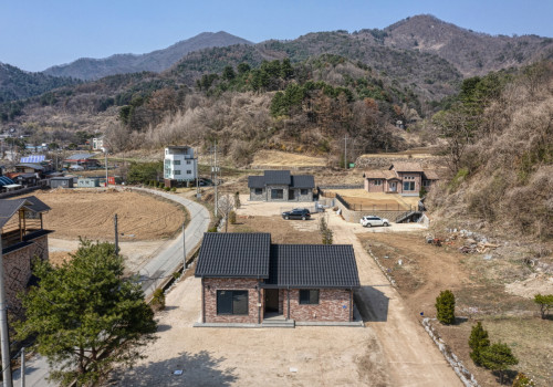 가평 용추폭포별장 작은땅에 작은 주택 캠핑가듯 편안히 쉴수있는 캠핑별장,캠핑주택 11세대 분양합니다. 1. 주소 : 경기도 가평군 가평읍 승안리 163-30 분양 토지 드론 사진 현재 4채가 준공되어 한채는 입주 3채는 분양중