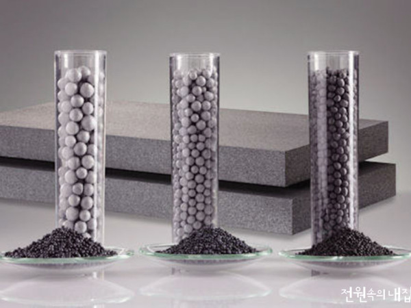단열성능기준 강화로 수요가 급증하고 있는 비드법단열재, 우리가 흔히 ‘흰색 스티로폼’이라 칭하는 것이 바로 이 제품이다. 최근에는 흑연을 섞어 단열성을 높인 종류도 쓰이고 있는데, 올바른 시공을 위해 비드법단열재에 대해 구체적으로 알아보자.구성 이세정[그림1] 비드의 발포크기별 비교스티로폼과 다른 건가요? _ 비드법단열재는 우리가 보통 ‘스티로폼’이라고 부르는 단열재로, 스티로폼은 특정 브랜드 이름이 보통 명사처럼 자리 잡은 경우다. 정확한 명칭은 비드법단열재가 맞다. 이 단열재는 현장에서 상황에 맞게 잘라 쓰기 쉽고, 시공방법에 따라 단열성능의 차이가 크지 않다는 장점 때문에 많이 쓰이고 있다. ‘비드’라고 하는 작은 알갱이를 수증기로 발포시켜 만드는데, 발포 크기와 밀도에 따라 1호에서 4호로 등급을 나눈다. 작게 발포할수록 밀도가 높고 열전도율이 좋아지는데, 통상 30kg/㎥이 가장 단단하고 열전도 특성이 뛰어나다고 알려져 있다. 흰색과 회색의 차이는 뭔가요? _ 비드법단열재는 크게 2가지 종류, 직관적으로 본다면 흰색과 회색 제품으로 나뉜다. 흰색은 이전부터 써 오던 비드법1종단열재, 회색은 최근 많이 볼 수 있는 비드법2종단열재이다. 비드법2종단열재의 정확한 명칭은 비드법2종보온판으로 ‘네오폴’, ‘에너포르’, ‘제로폴’ 등 브랜드로 출시되고 있다.비드법2종단열재는 흰색 비드에 탄소를 함유한 합성물질인 흑연을 첨가하여 제조한다. 이론적으로는 복사열에 대한 축열성을 보강하여 흰색 1종 제품보다 단열성을 높인 제품이다.비드법단열재, 제대로 알고 시공하자!물 혹은 습기와 철저히 분리한다비드법단열재는 보통의 유기질단열재들과 비교해 수분 흡수율이 높기 때문에 단열재가 물을 흡수하면 단열성능이 약 30%까지 감소될 수 있다. 게다가 습기에 더욱 취약해서 습기가 흡수되면 70%까지 단열성능이 저하될 수 있다. [그림2]에서 보듯이 비드법단열재는 오픈셀 구조이기 때문에 물과 습기가 알갱이 속으로 침투하기 쉽기 때문이다.[그림2] 비드법보온판의 셀구조 - 비드법1종과 2종은 동일한 구조임 - 출처 : Basf.com따라서 비드법단열재는 물이 닿는 곳은 절대로 피해야 하고, 습기를 막아야 하며, 흡습된 습기가 쉽게 배출될 수 있도록 시공되어야 한다. 특히 지면과 닿는 부위에는 절대 사용하면 안 된다. 이곳은 반드시 국내에선 거의 유일하게 흡수율과 흡습율이 없는 압출법단열재(일명 아이소핑크라고 많이 알려져 있다)만을 써야 한다. 또한 지붕슬래브를 외단열로 할 경우도 마찬가지인데, 여기는 조금 더 주의를 요한다. 첫째, 빗물의 침투를 막기 위해서 단열재 상부에 당연히 방수층을 고려해야 한다. 둘째, 콘크리트 구체가 마르면서 습기가 발생하기 때문에 이를 비드법단열재가 빨아들이지 못하도록 콘크리트 슬라브와 단열재 사이에도 방습층을 설치해야 한다.그리고 벽체 외단열 시공 시에는 단열재로의 흡습을 차단하기 위해 구체를 충분히 말린 후 작업에 들어가야 하며, 단열재 외부 측의 마감 도료는 일단 흡습된 습기가 제거될 수 있도록 투습이 원활한 제품을 사용해야 한다. 콘크리트벽체는 사용 중에도 오랜 기간 말려야 하기 때문에 실내에 면하는 콘크리트면은 투습성이 좋지 않은 PVC 벽지(실크 벽지) 대신 투습성이 좋은 합지벽지나 도료 등을 사용하는 것이 좋다.또한 단열재 외측에 공간을 두고 벽돌이나 석재 혹은 판재로 마감을 할 경우는 빗물이 마감재 틈을 통해 단열재까지 흘러 들어올 수 있으므로 침입한 빗물이 잘 마를 수 있도록 통기를 원활하게 해 주는 디테일이 필요하다. 아울러 고층의 벽체로서 외풍압의 영향을 많이 받는 경우는 방수층을 설치하도록 한다.화재에 취약하니 실내 시공은 피한다거의 대부분의 유기질단열재는 불에 약하다. 비드법단열재도 예외는 아니어서 불에 잘 타며, 유독가스를 발생시키기 때문에 실내에 사용하는 것은 무척 위험하다. 우리나라 법 기준이 이러한 단열재를 내측에 사용할 경우 일정 두께의 석고보드를 설치하도록 하고 있지만, 이것은 단지 몇 분의 피난시간을 벌어주는 최소한의 기준일 뿐이다. 약 1년 전 발생한 부산의 한 아파트 화재 사건에서 어머니와 아이들이 안타깝게 사망한 것은 내단열재가 타면서 발생한 유독가스에 의한 것이다. 만약 실내에 불연단열재를 사용토록 의무화했다면 이런 참사는 발생치 않았을 것이다. 모든 것을 돈의 잣대로 판단하는 사회가 낳은 비극이다.외단열 미장마감 시 변형에 유의한다보통 비드법단열재는 외단열 미장마감 시에 단열재로 주로 사용되는데 이때 주의할 점을 몇 가지 알아보자.첫째, 국내에서는 외단열 미장마감 시에는 비드법 3호나 4호를 써야만 한다. 1호나 2호는 알갱이가 조밀하여 부착력이 확보되지 않으므로 주의해야 한다. 특히 단열성능이 더 좋다며 압출법단열재를 취부하는 경우도 있는데, 압출법단열재는 표면이 매끄러워 접착력확보가 극히 어렵기에 특별한 경우가 아니라면 사용하지 말아야 한다.둘째, 단열재에 접착제를 바르는 방법이다. [그림3]과 같이 테두리를 두르고 가운데는 점점이 접착제를 발라 
