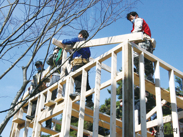 내가 원하는 대로, 더 저렴하게 집을 지을 수 있는 직영공사. 하지만 준비도 없이 무턱대고 뛰어들었다가는 오히려 낭패를 보기 십상이다. 직영공사를 앞둔 건축주가 기본적으로 알아두면 도움이 될 내용을 정리했다.글 임종빈 목조건축지원센터 원장최근엔 시공회사와 계약하지 않고 건축주가 직영으로 집을 짓는 경우를 종종 볼 수 있다. 그들 중에는 내 손으로 내 가족이 살 집을 짓는다는 것에 대한 로망을 품어온 이도 있을 것이고, 남의 손에 맡기는 것보다 믿을 만하다는 이도 있을 것이다. 하지만 뭐니 뭐니 해도 직영공사의 가장 큰 장점은 ‘건축비 절감’이다. 공사 비용을 아낄 수 있음은 물론, 건축 공정 기간 관리나 건축자재 선택 등이 훨씬 자유로운 것도 장점이다.하지만 직영공사를 하기에는 지식의 한계, 실패에 대한 심리적 부담감, 생업에 따른 시간적 제약 등의 현실적 이유로 갖가지 어려움이 따를 때가 많다. 특히 건축 경험과 지식이 부족해 어떤 시공방법과 자재가 좋은지 판단하기 힘들고, 인력 조달에 대한 정보가 부족해 적절한 시기에 인력을 투입하고 효율적으로 공정을 관리하는 것이 버거울 수 있다. 설계, 시공 등 건축 과정 전체에 대한 명확한 이해 없이 무작정 도전했다가는 오히려 돈은 돈대로 들고 결과물도 엉망인 사태가 벌어지게 되는 것이다.이러한 위험요소를 최소화하기 위해서는 관련 강좌를 통해 목조건축에 대한 지식을 충분히 쌓고, 자재전시장을 찾아 직접 눈으로 보며 건축자재의 기능을 파악하는 등 ‘공부‘가 필요하다. 전체 공정을 이해할 정도가 되면 각 시공방법의 장단점을 파악하여 자신감 있게 직영공사를 진행할 수 있게 된다. 시행착오를 줄이기 위해서 직영건축 지원프로그램을 통해 건축 인력의 확보, 외주공사의 적절한 투입 시점, 설계 시 주의점 등의 정보를 얻는 것도 방법이다.집짓기 공정의 특성을 단계별로 간략하게 정리하면 다음과 같다.설계 : 토목, 건축 설계 (건축사는 인허가 등 건축 관련 행정업무까지 대행한다.) 토목공사 : 건축을 위해 땅을 고르고 다지는 작업. 지형에 따라 공사 규모에 차이가 있다. 상수도공사 : 지역 공공 상수 연결, 지하수 개발(상수의 안정성 및 경제성을 고려) 하수도공사 : 지역의 환경적 제약(수자원 보호지역 등)에 따라 정화조 규격 및 설치비용이 차이가 난다. 전기공사 : 전력 수급 상황에 따라 외부전기 공사의 규모와 금액 차이가 난다. (전기 인입거리 고려)건축공사 : 건축공정 순서에 따른 분류 -기초공사 : 줄기초, 매트기초로 나눌 수 있다.-골조공사 : 단열을 고려하여 벽체 및 지붕의 골조 규격, 시공방식을 결정하여야 한다. -지붕마감 : 경제성과 미관을 고려하여 결정, 시공한다. -외벽마감 : 단열, 경제성 및 미관을 고려하여 결정, 시공한다. -내부전기공사 : 내부 공간의 사용 목적 및 편의성을 고려한다. -내부설비공사 : 난방, 위생, 온·냉수, 공조 등. 편의성, 에너지 효율성, 경제성을 고려한다. -창호공사 : 단열 및 채광, 경제성을 고려한다.(건물의 향, 창호의 크기, 수량 등) -단열공사 : 지역의 기후, 건물의 에너지 효율에 대한 수준을 고려하여 규격과 시공법을 정한다. -내부마감 : 타일, 도배, 장판, 전등, 주방가구 등. 관리 편의성, 건강상 요인, 미관, 경제성 등을 고려하여 종류, 범위를 정한 후 시공한다.데크 공사 : 동선의 편의성, 효율성을 검토, 규모와 형태를 정한다.조경 : 경제성, 관리의 편의성 등을 고려하여 규모 및 종류를 정한다.내 집을 짓기에 앞서 가장 먼저 할 일은 ‘사용목적을 명확히 하는 것’이다. 구성원에 따른 면적, 공간의 합리적 구성과 배치, 주변 환경과 기후를 고려한 건물의 기능적 요구 수준 등이 적절한지 고민해보는 과정이 우선이다. 이때, 건축업자나 주변인의 시선이 아니라 건축 주체인 ‘나’와 ‘내 가족’이 중심이 되는 것이 중요하다.다음으로 건축 예산의 규모를 정해야 한다. 만약 건축 시기가 은퇴시점이라면 자금 여력과 앞으로의 생활을 고려해 당초 계획한 예산의 70% 정도 선에서 지을 수 있는 규모를 계획하는 것이 좋다. 다음은 연면적 97.2㎡의 2층 경량목구조 주택을 지을 때 예상할 수 있는 직영공사 건축비 내역이다. 이는 단순한 참고용으로 작성되어 실제 금액과는 차이가 있을 수 있으며, 실제 설계도를 기반으로 하지 않았음을 염두에 두고 보길 권한다.예상 공사비 내역표의 ‘목공사 도급 시 공사이익금 20%’ 부분은 단순 예시로 시공업체마다 다르다. 이는 업체를 통하지 않고 건축주가 직접 목수를 고용하면 절감할 수 있는 비용이므로 직영공사 시 총계에서 제외하면 된다. 기반공사 예상 비용표는 건축 환경에 따라 변동이 있을 수 있는 항목들로, 실제 금액과는 차이가 크게 날 수 있어 따로 표시하였다. 제시된 내용 외에도 경계복원측량, 인허가 접수, 착공신고, 사용승인 및 채권매입, 고용산재보험 등의 부가적 비용이 추가될 수 있으며, 이는 해당 지자체 건축과와 상담하여 확인하는 것이 정확하다. 따라서 위의 표는 건축비의 규모나 비용목록을 대략적으로 가늠하고 검토하는 데 사용하는 것이 좋다.일단 도전해보는 것이 중요하다고 생