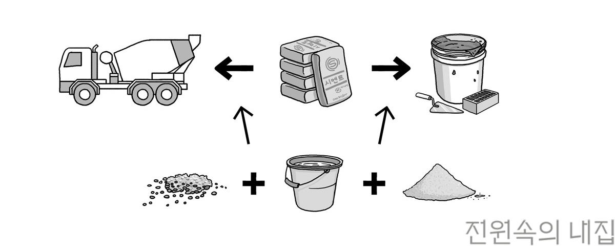 시멘트, 모르타르, 콘크리트, 차이점이 뭔가요?
